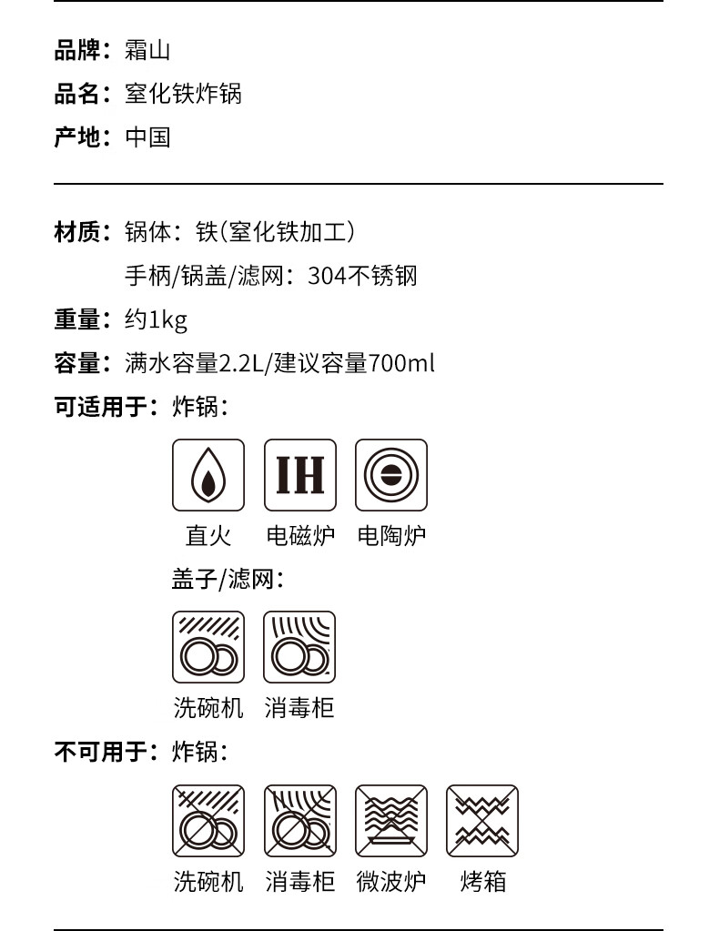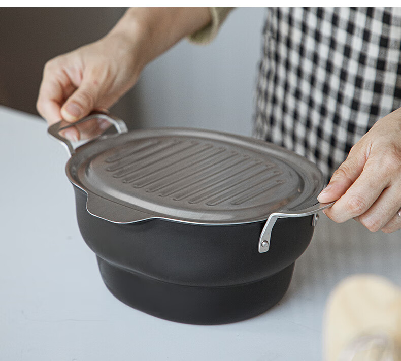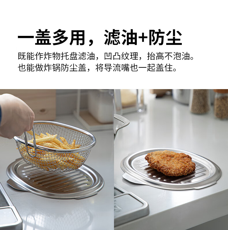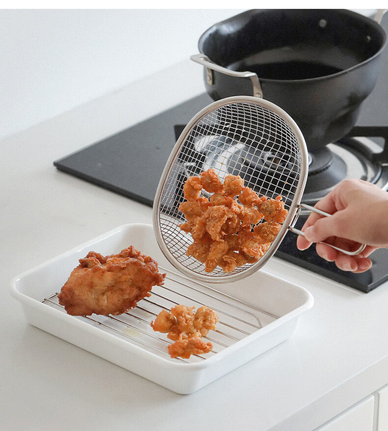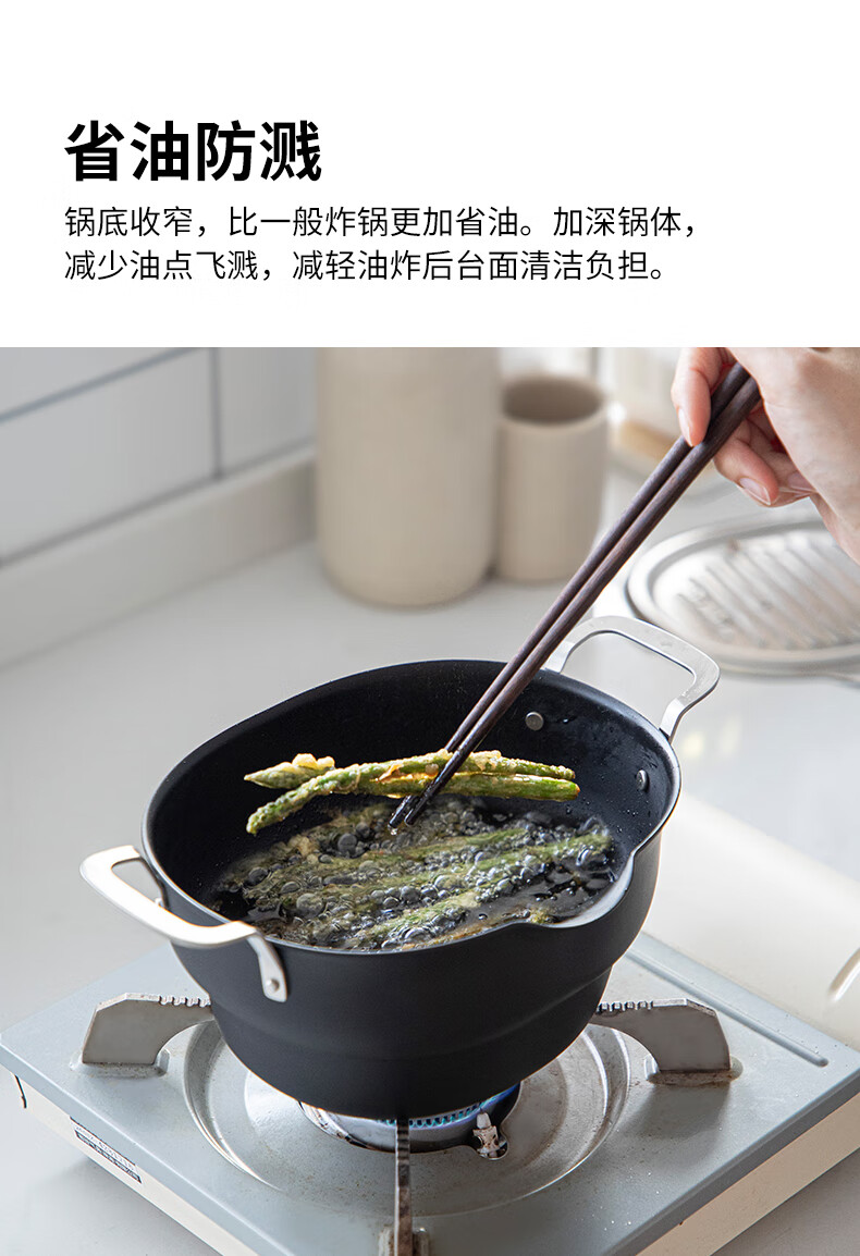 Shuangshan Oval Fryer Smothered Iron Fryer with Cover Deep Fryer Oil-Saving Anti-stick Tempura Small Fryer Anti-splash Oil Three-piece Set Smothered Iron Fryer + Lid + Strainer 21.5cm