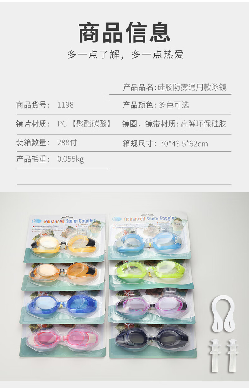 Transparent swimming goggles with nose clip earplugs HD anti-fog adult and children's swimming goggles universal set diving glasses sky blue (including protective film that can be peeled off)