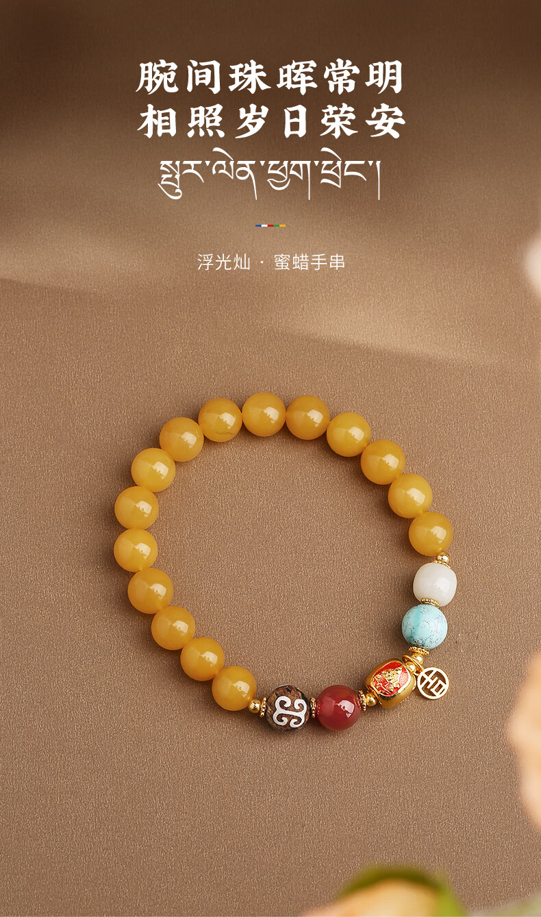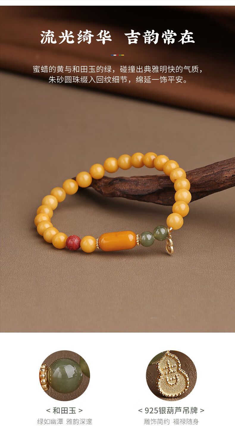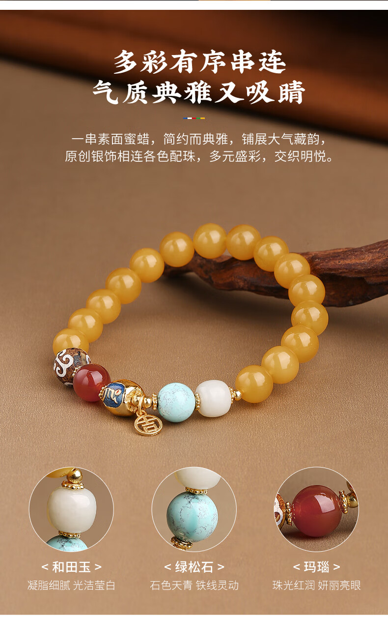 Potala Palace Beeswax Bracelet 925 Silver Transfer Beads Women's Bracelet Plate Playing Buddha Beads Small Tag Beads Birthday Gift Xiang Chenhuan Beeswax Bracelet