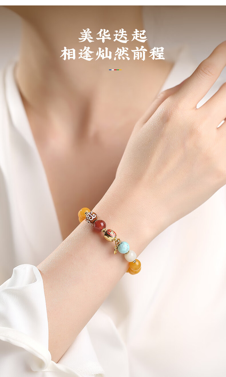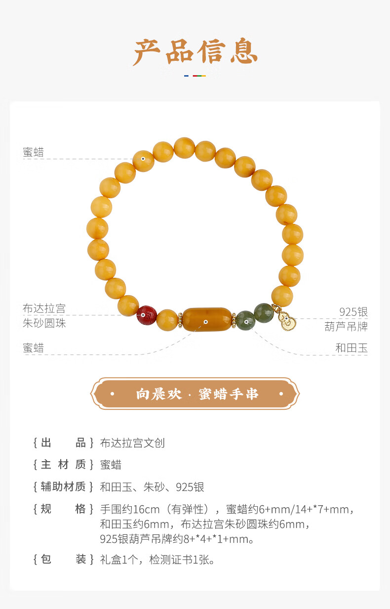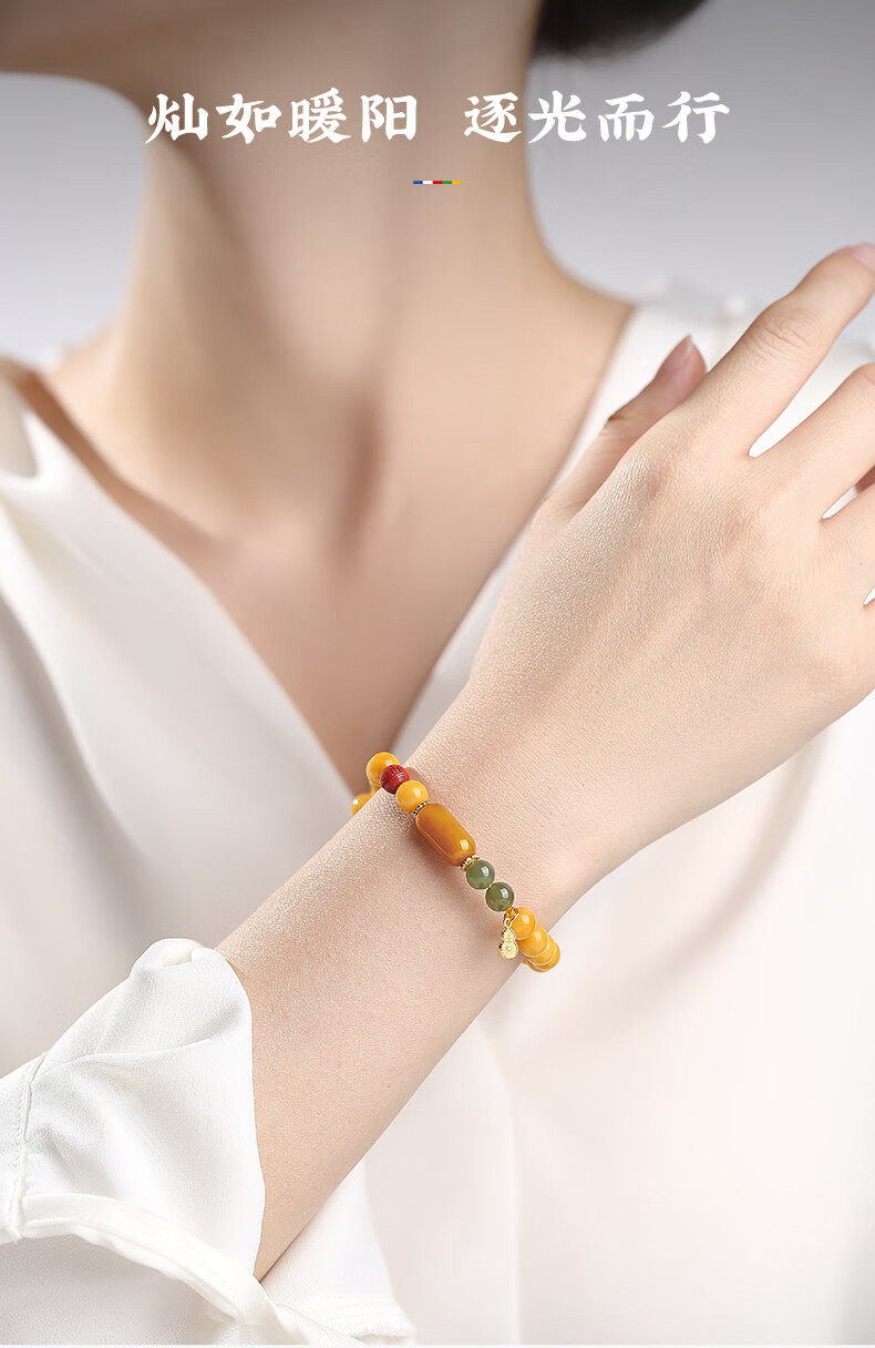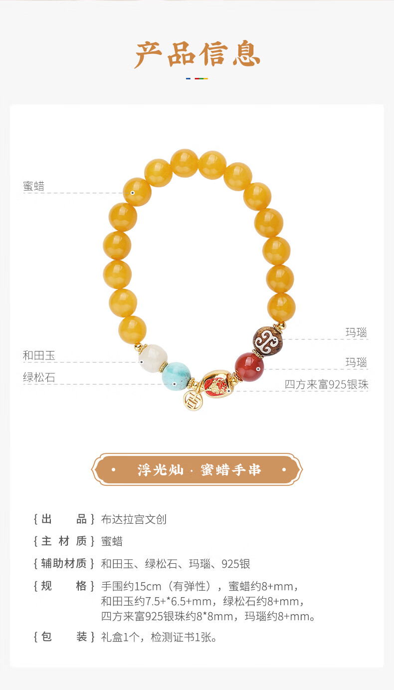 Potala Palace Beeswax Bracelet 925 Silver Transfer Beads Women's Bracelet Plate Playing Buddha Beads Small Tag Beads Birthday Gift Xiang Chenhuan Beeswax Bracelet