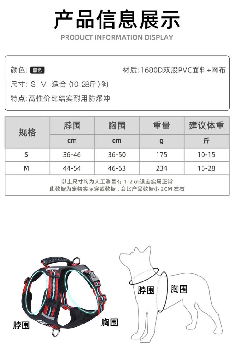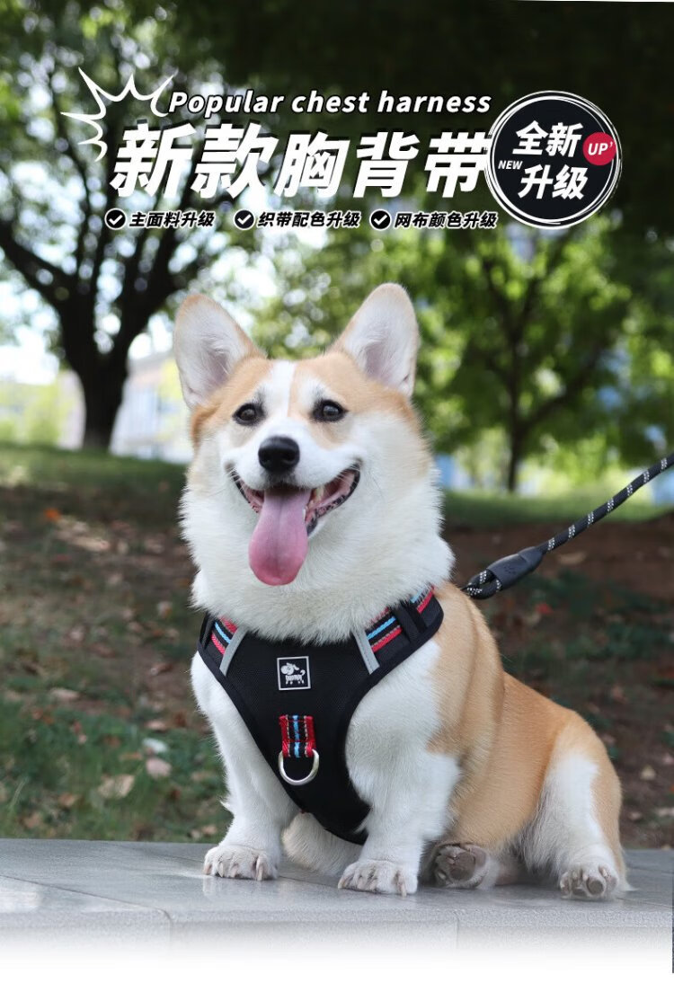Jiahuide Dog Leash Vest Style Dog Walking Rope Shiba Inu Corgi Explosion-proof Harness Harness Small and Medium Dog Chain Colorful Black Harness + 2 Meter Reflective Dog Rope M Size Recommended 15-30 Jin Jin equals 0.5 kg for dogs