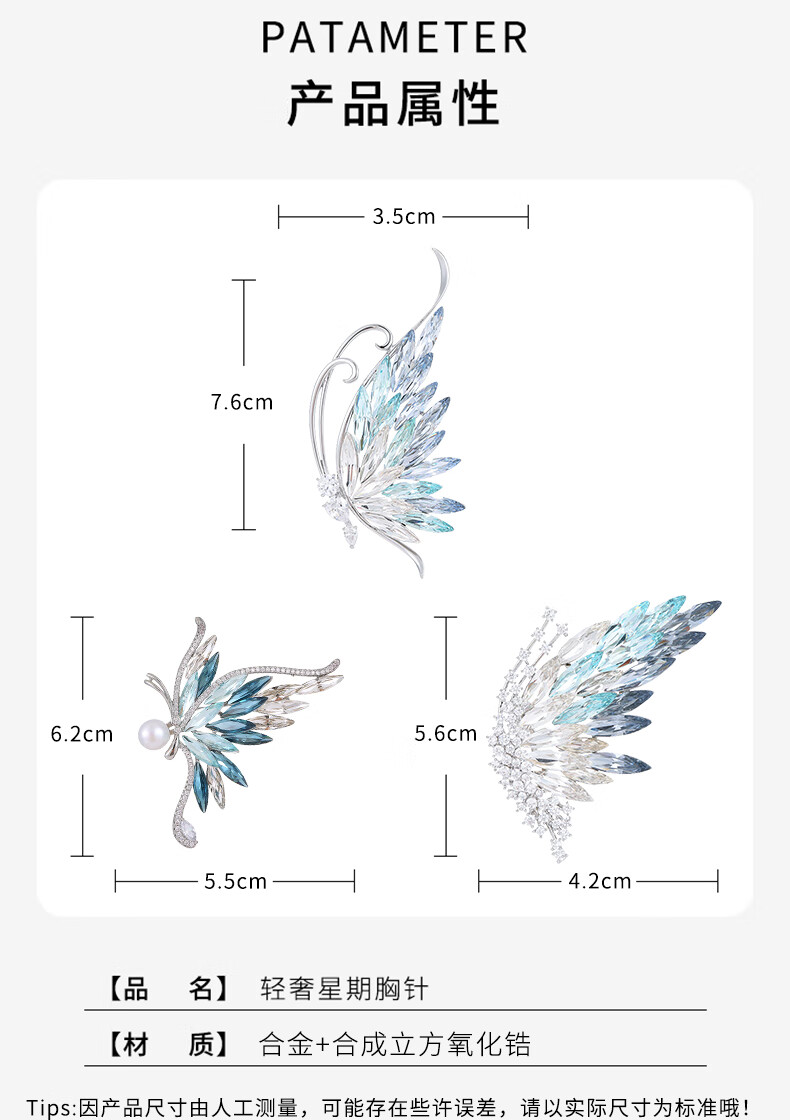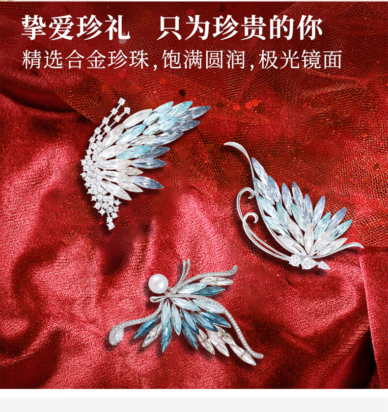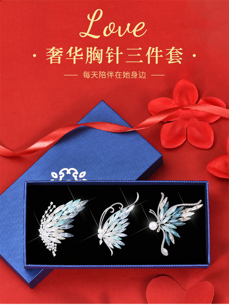 Crystal brooch, high-end ladies light luxury birthday gift for girls to give to their girlfriends, high-end, exquisite and practical temperament gift box TS508 butterfly brooch 3-piece set