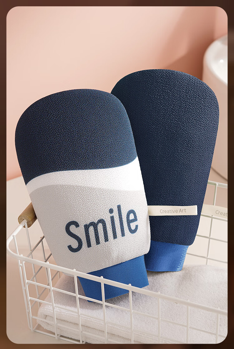 Creative art bath towel for men, women and children, special strong bath mud back, coarse sand glove type bath towel, double-sided thickened coarse and fine sand, blue