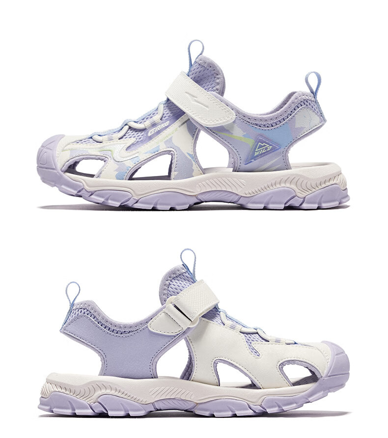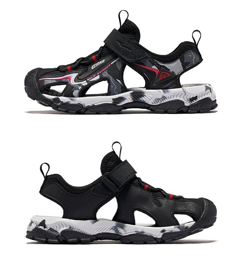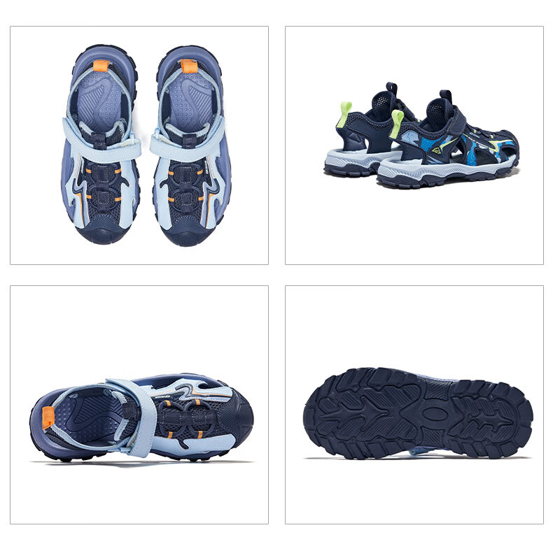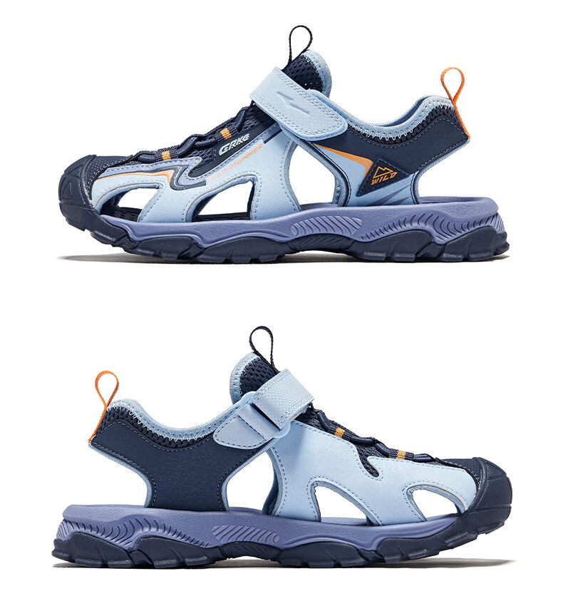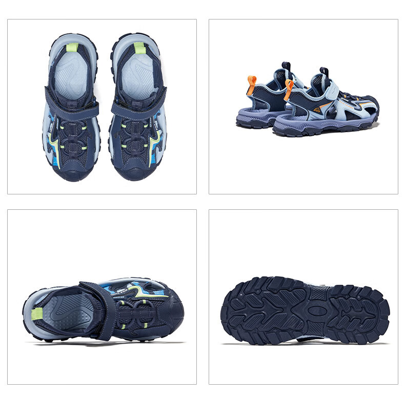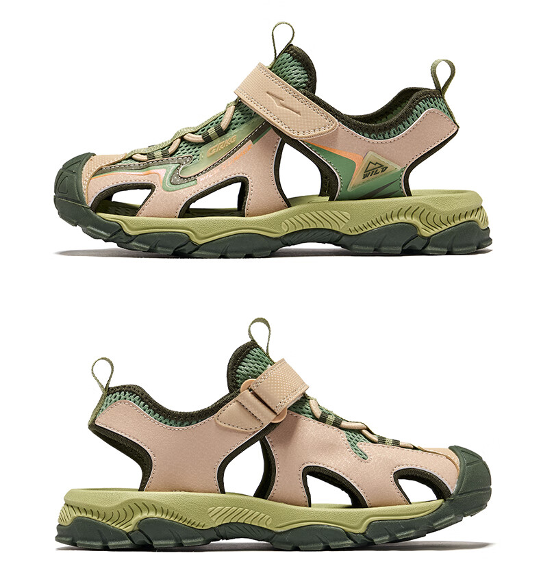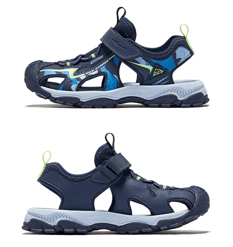 Hongxing Erke Children's Shoes Sandals Summer Girls Shoes Boys Middle and Large Children Baotou Anti-collision Beach Shoes Sports Shoes Ink Blue/Fluorescent Bud Green 34