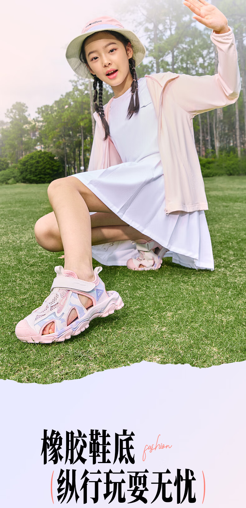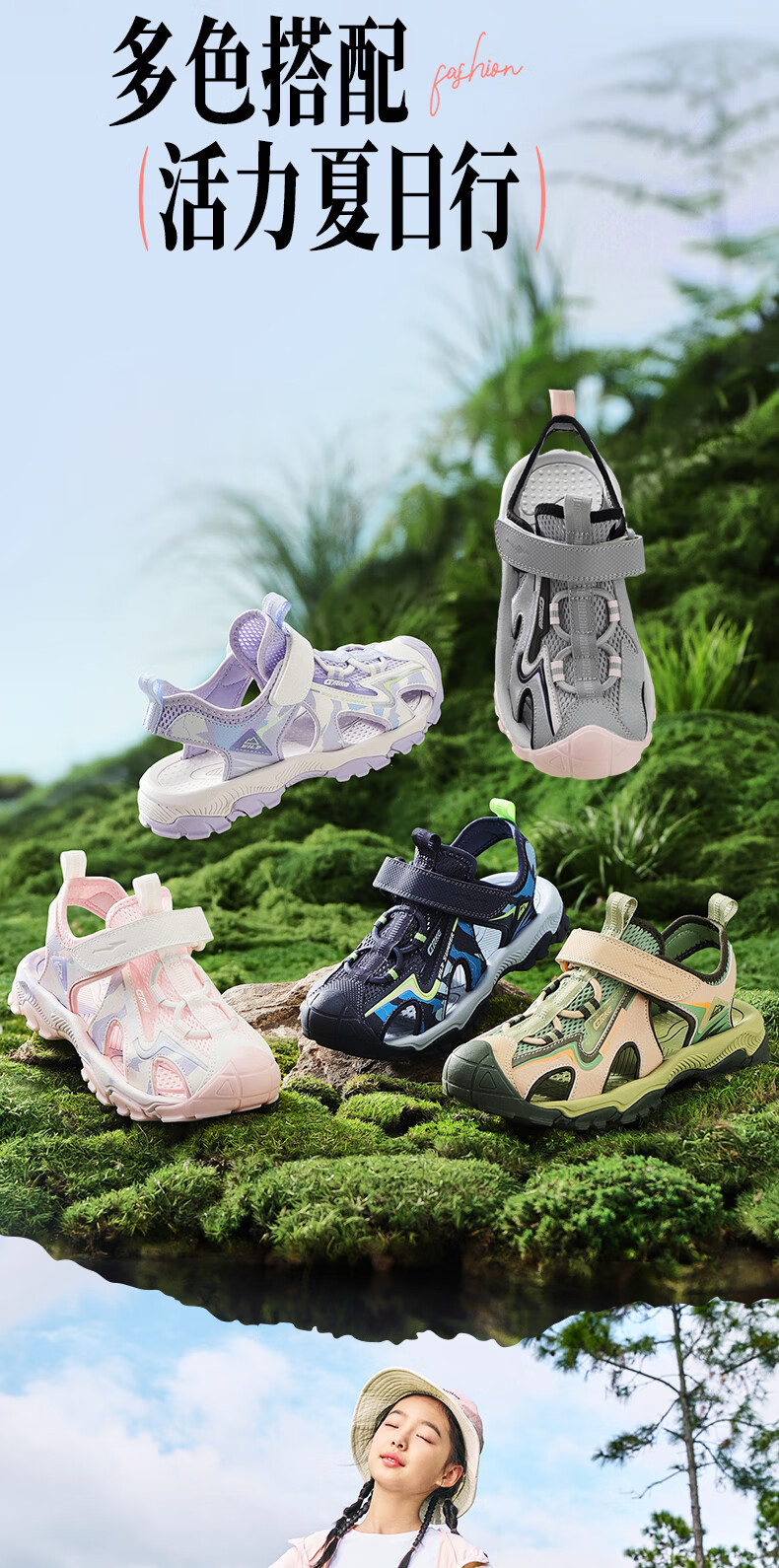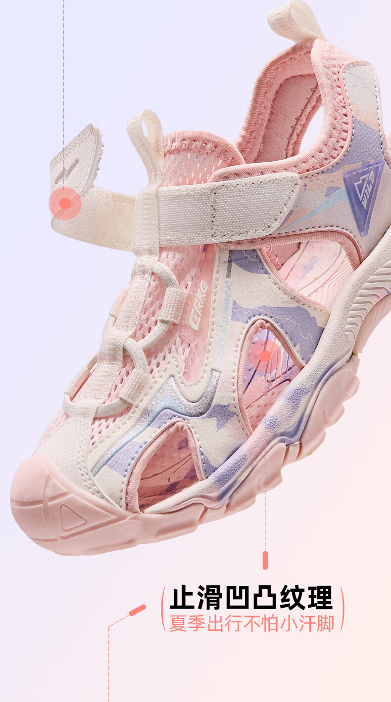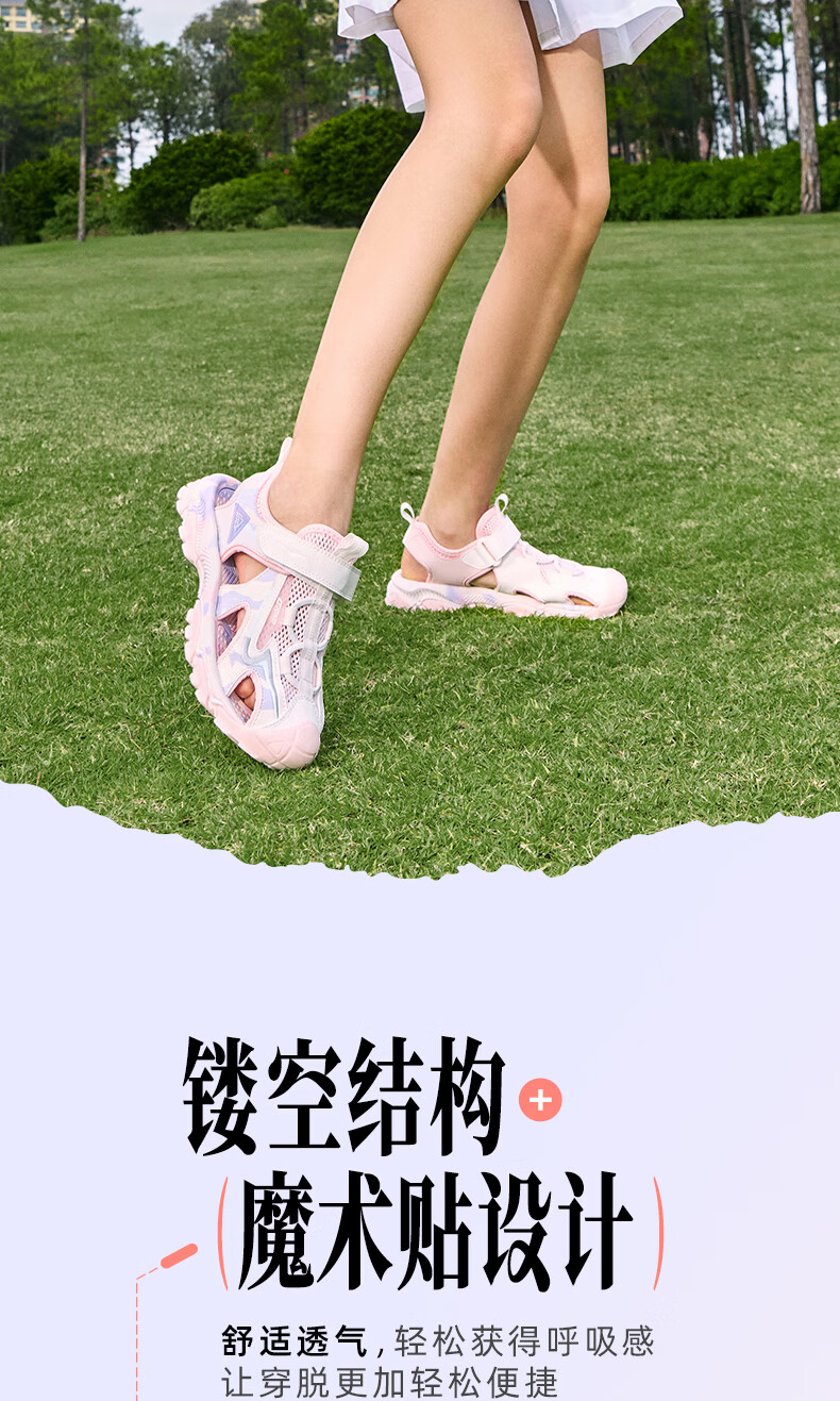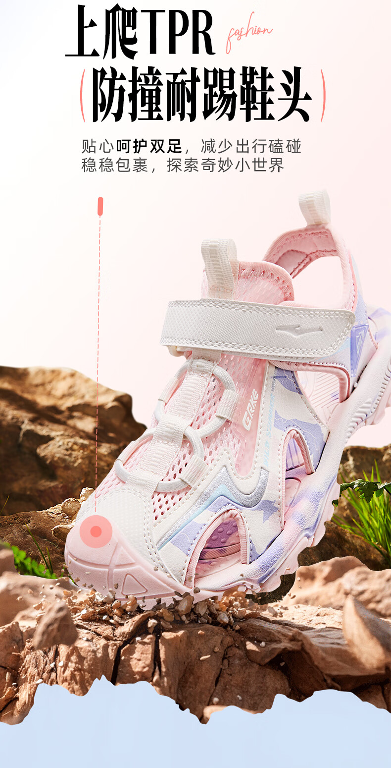 Hongxing Erke Children's Shoes Sandals Summer Girls Shoes Boys Middle and Large Children Baotou Anti-collision Beach Shoes Sports Shoes Ink Blue/Fluorescent Bud Green 34