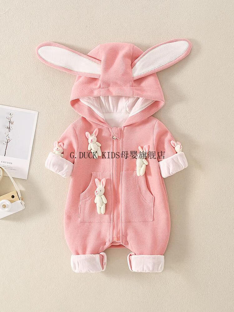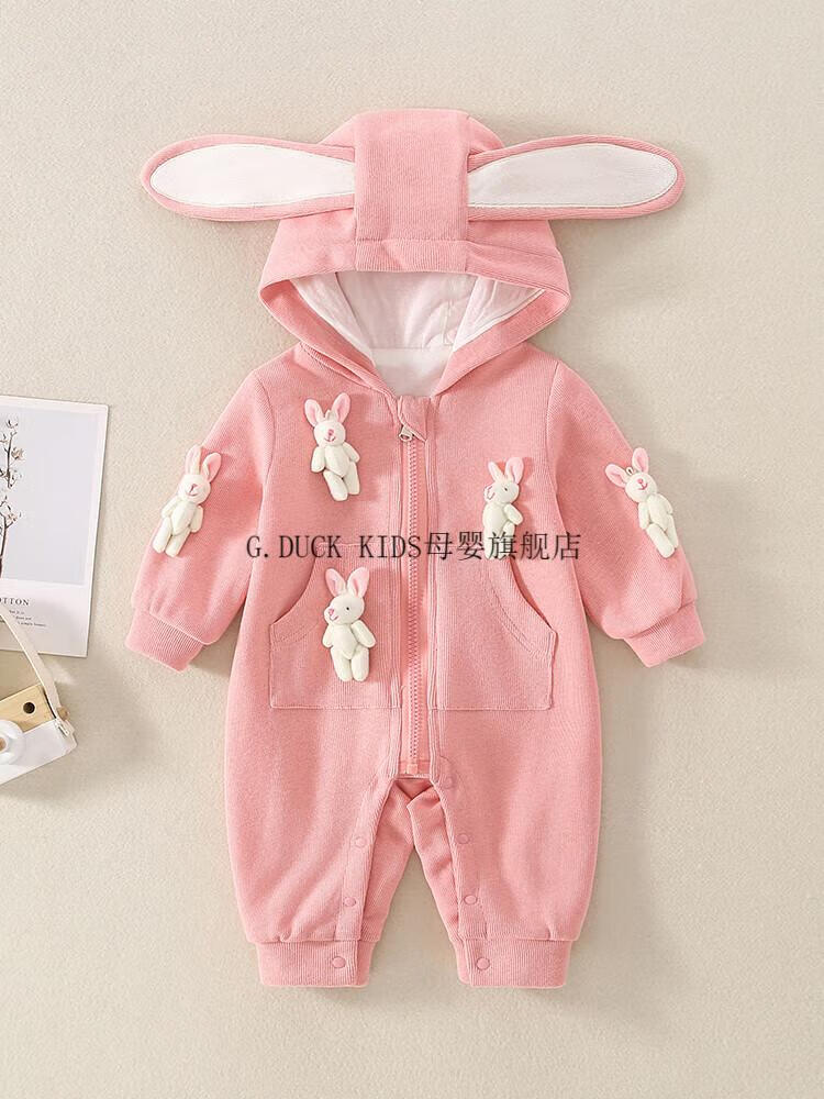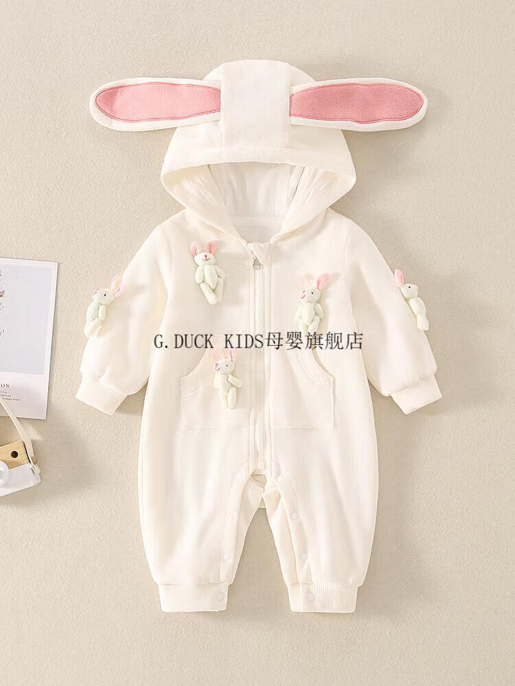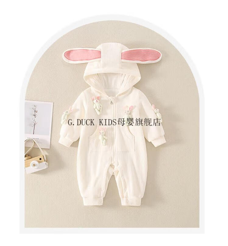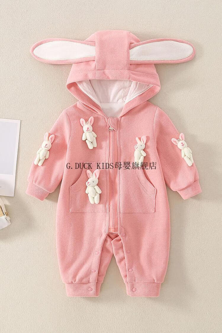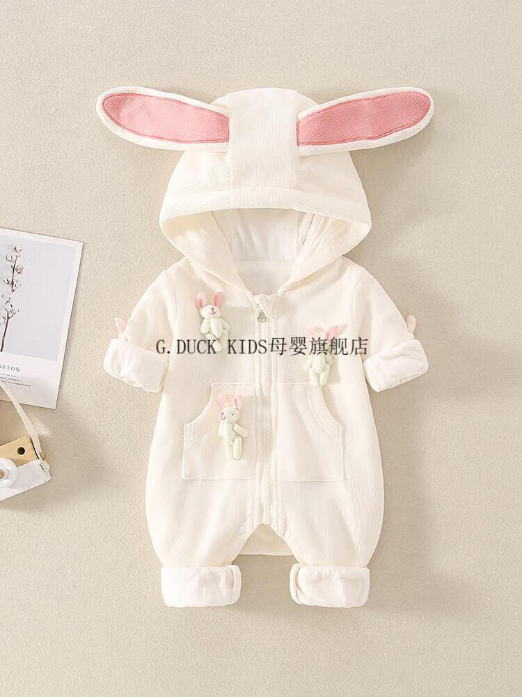 G.duck little yellow duck children's clothing baby jumpsuit spring and autumn 26 style new style infants and young children going out baby clothes baby full moon clothes apricot 66cm