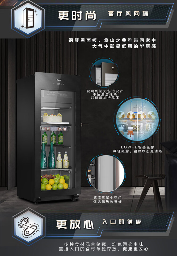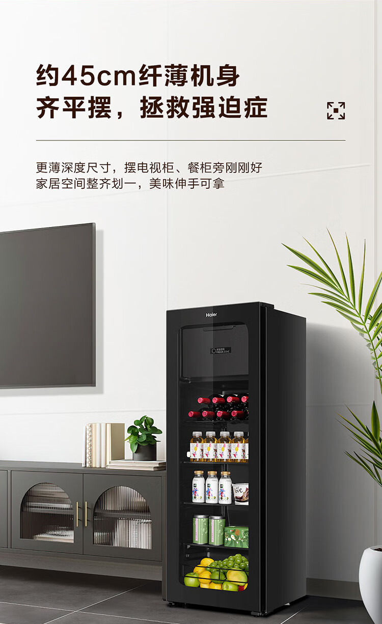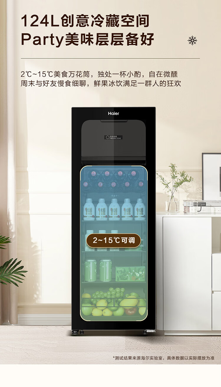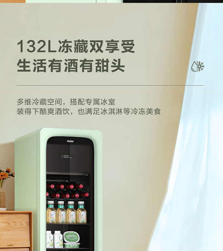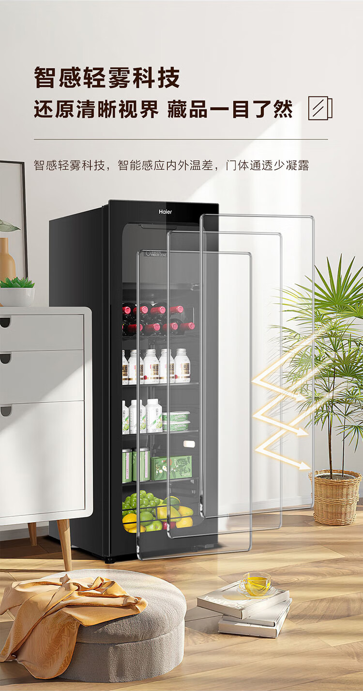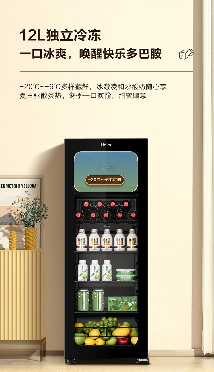 Haier Ice Bar Independent Freezer Zone Home Living Room Refrigerator Red Wine Cabinet Frozen Display Cabinet Office Refrigerator Tea and Fruit Fresh Cabinet Ready in Stock 167L Quick Ice Making丨Freezing Zone丨Ion Sterilization丨Anti-fog 167L