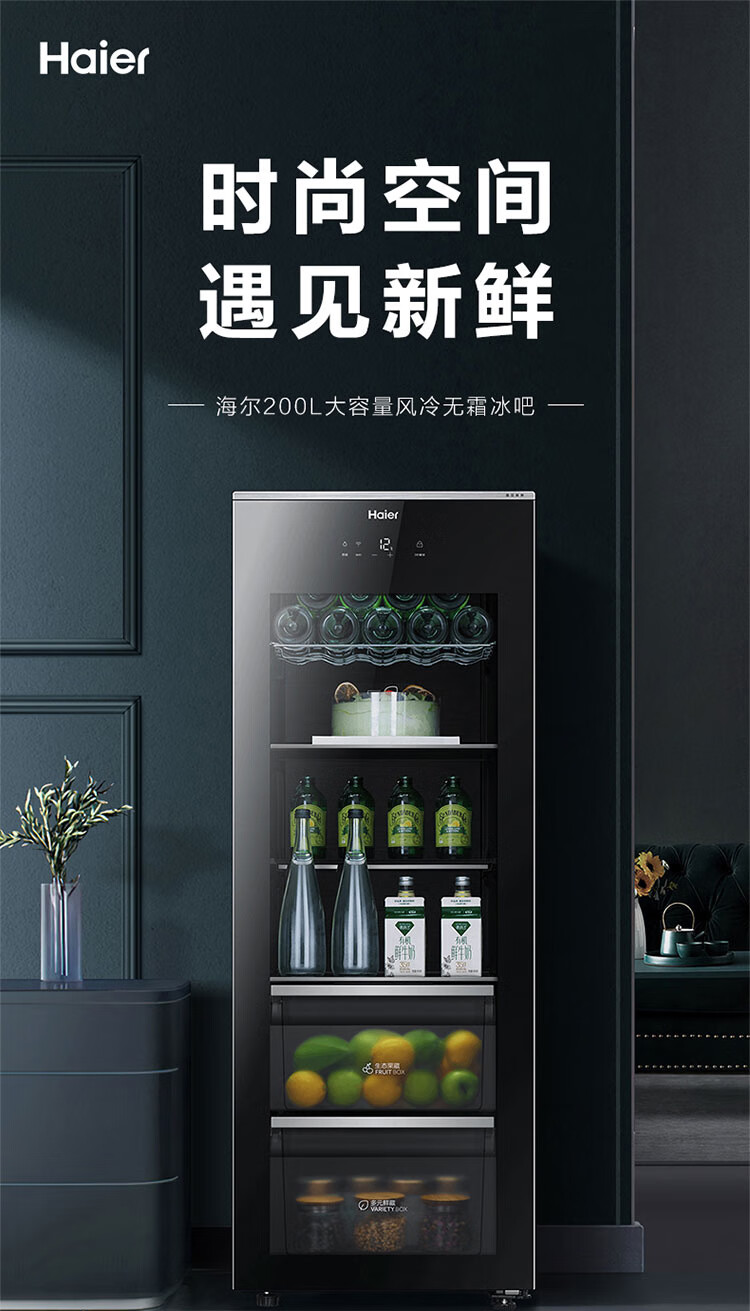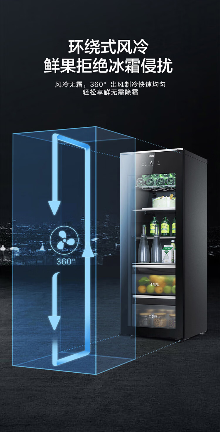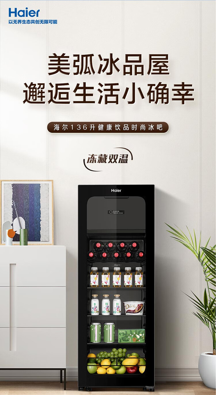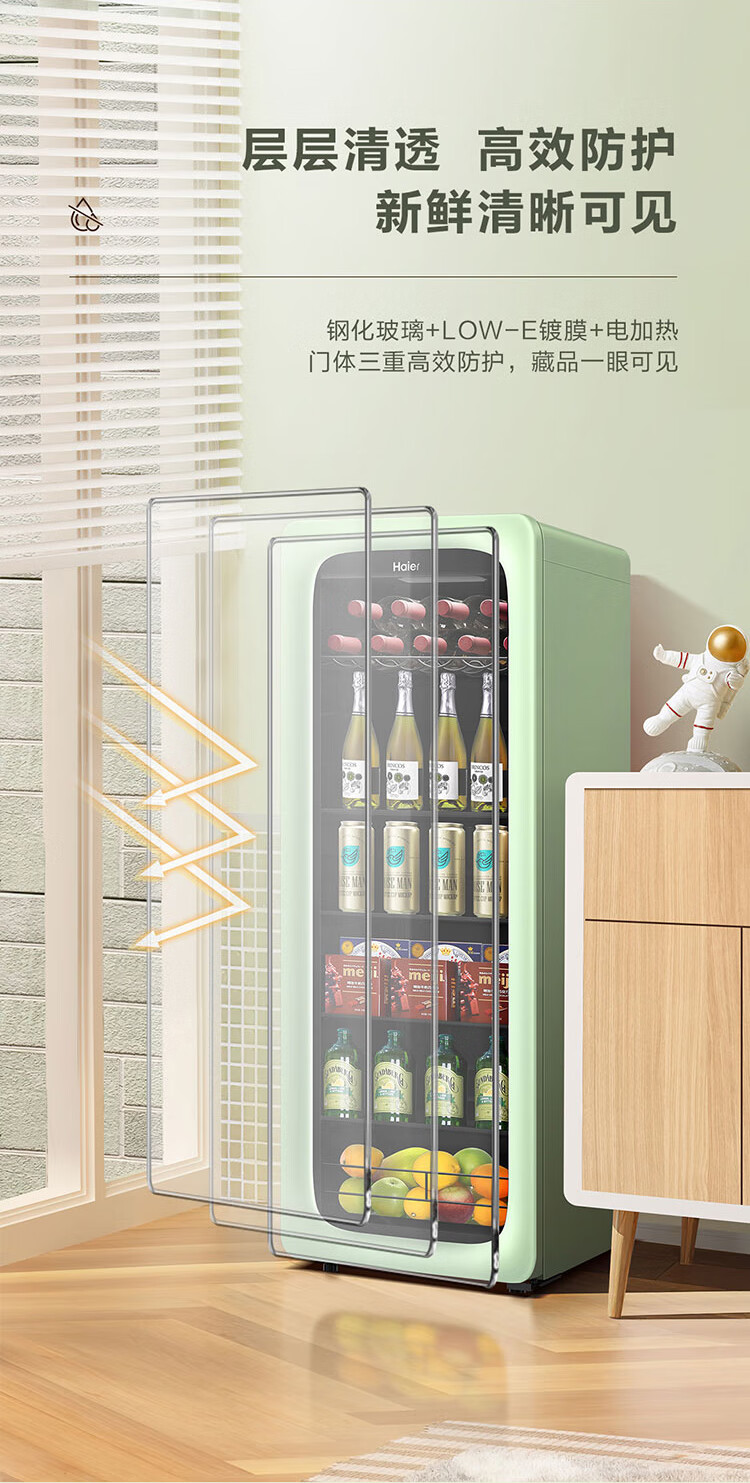 Haier Ice Bar Independent Freezer Zone Home Living Room Refrigerator Red Wine Cabinet Frozen Display Cabinet Office Refrigerator Tea and Fruit Fresh Cabinet Ready in Stock 167L Quick Ice Making丨Freezing Zone丨Ion Sterilization丨Anti-fog 167L