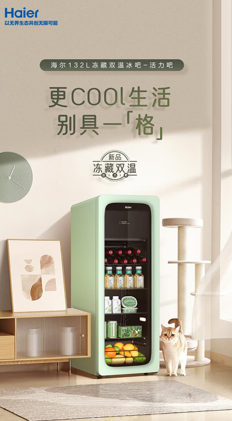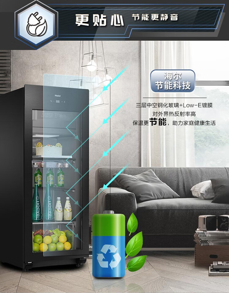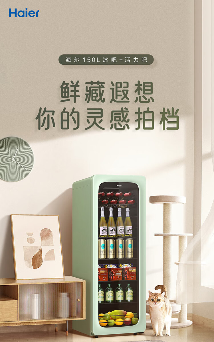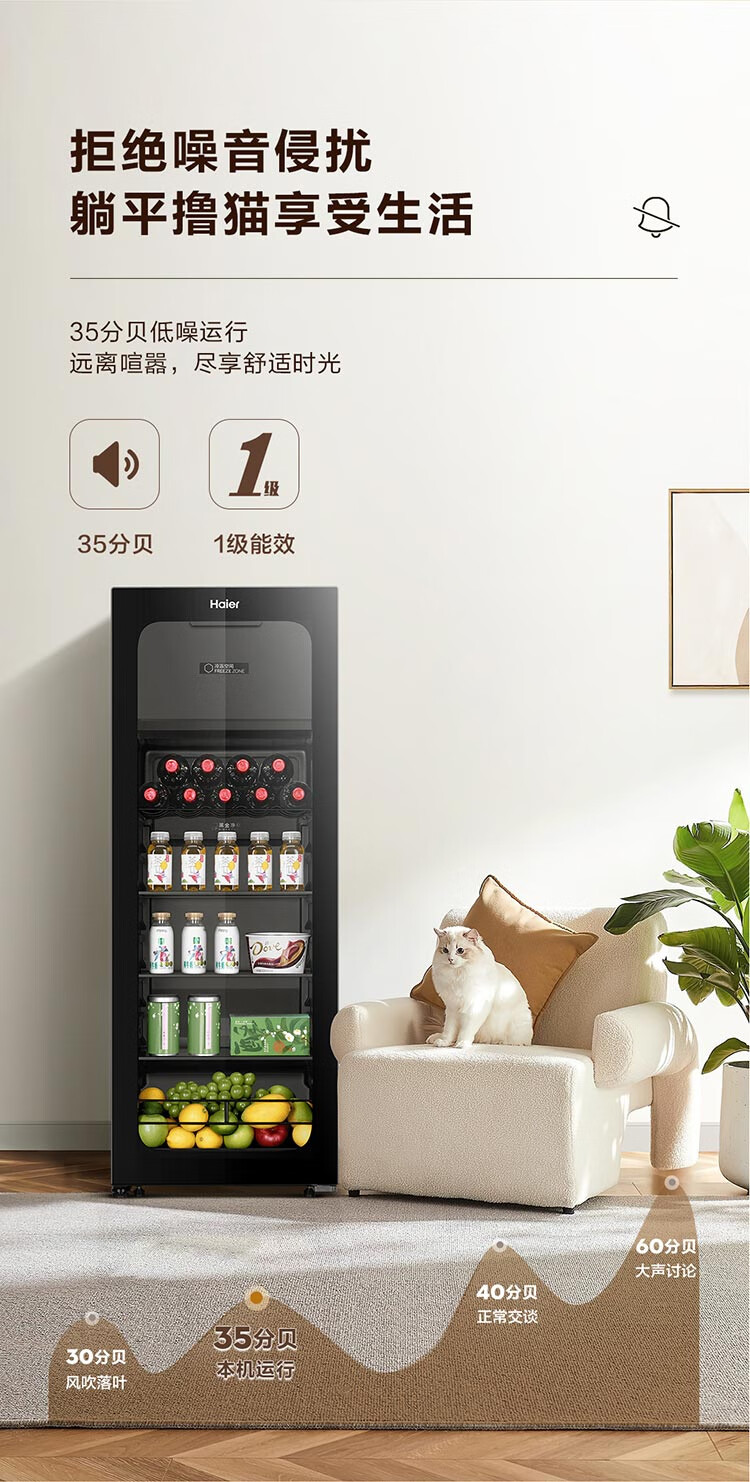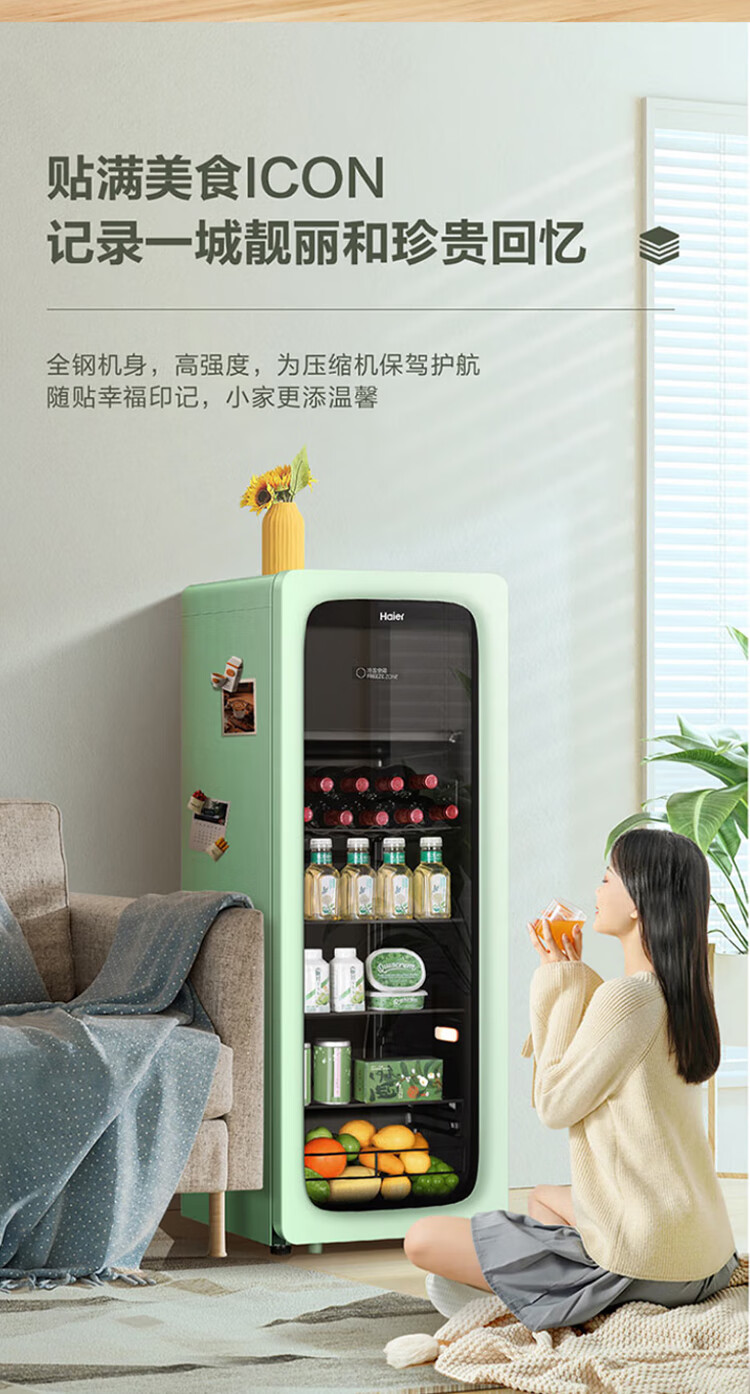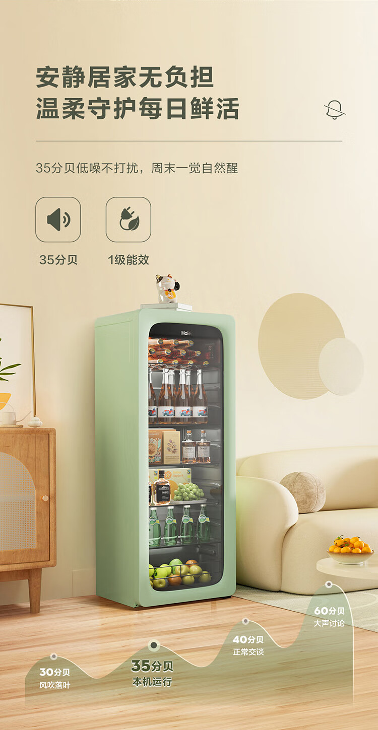 Haier Ice Bar Independent Freezer Zone Home Living Room Refrigerator Red Wine Cabinet Frozen Display Cabinet Office Refrigerator Tea and Fruit Fresh Cabinet Ready in Stock 167L Quick Ice Making丨Freezing Zone丨Ion Sterilization丨Anti-fog 167L