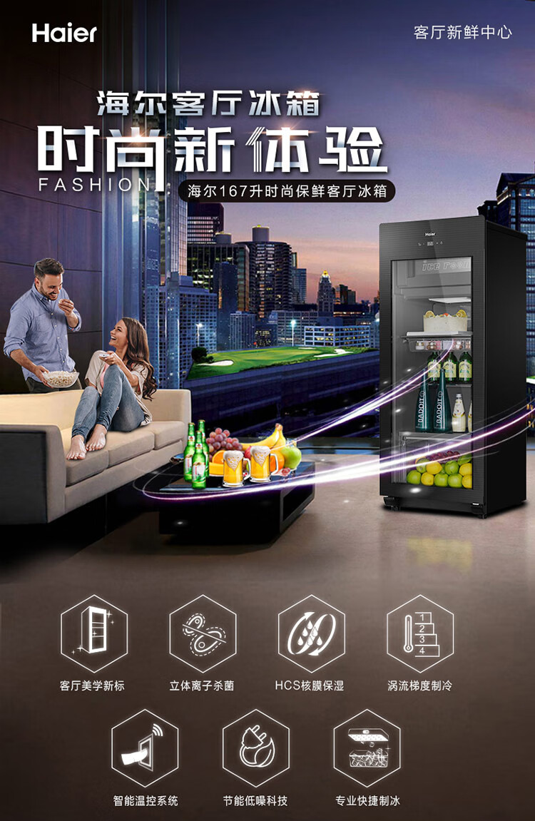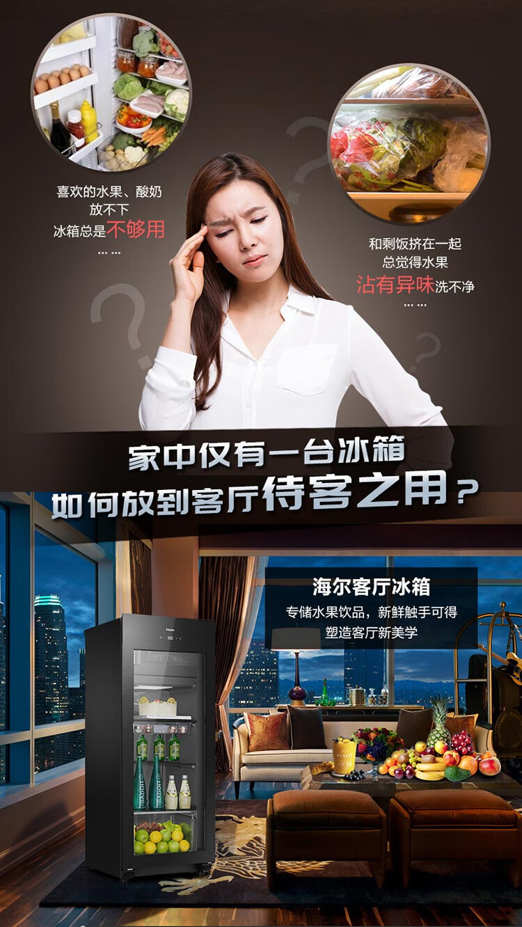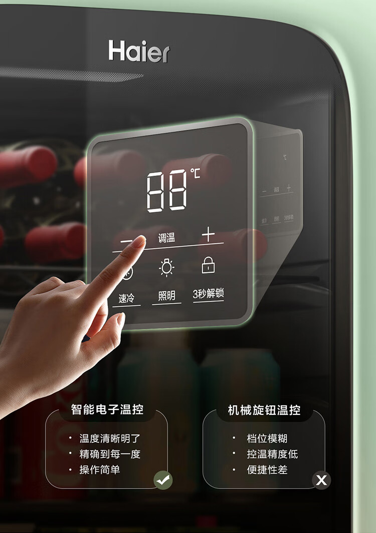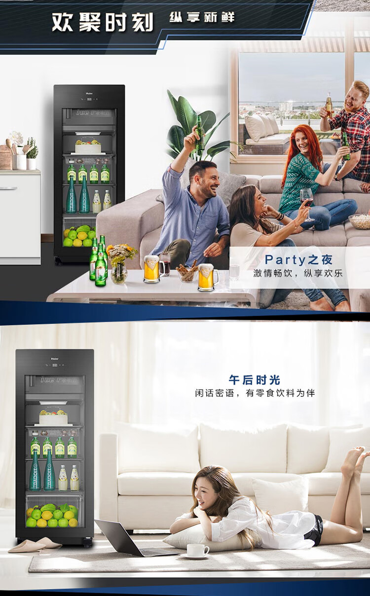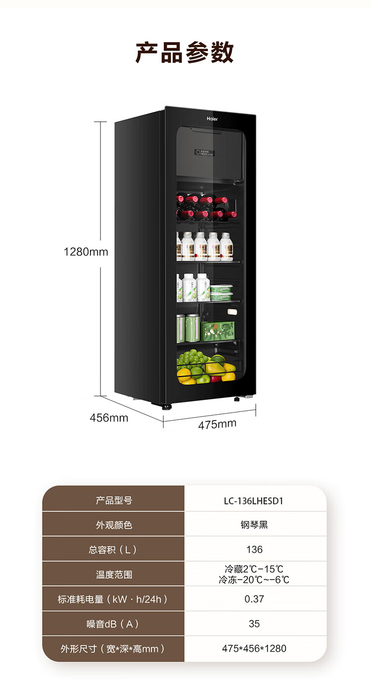 Haier Ice Bar Independent Freezer Zone Home Living Room Refrigerator Red Wine Cabinet Frozen Display Cabinet Office Refrigerator Tea and Fruit Fresh Cabinet Ready in Stock 167L Quick Ice Making丨Freezing Zone丨Ion Sterilization丨Anti-fog 167L