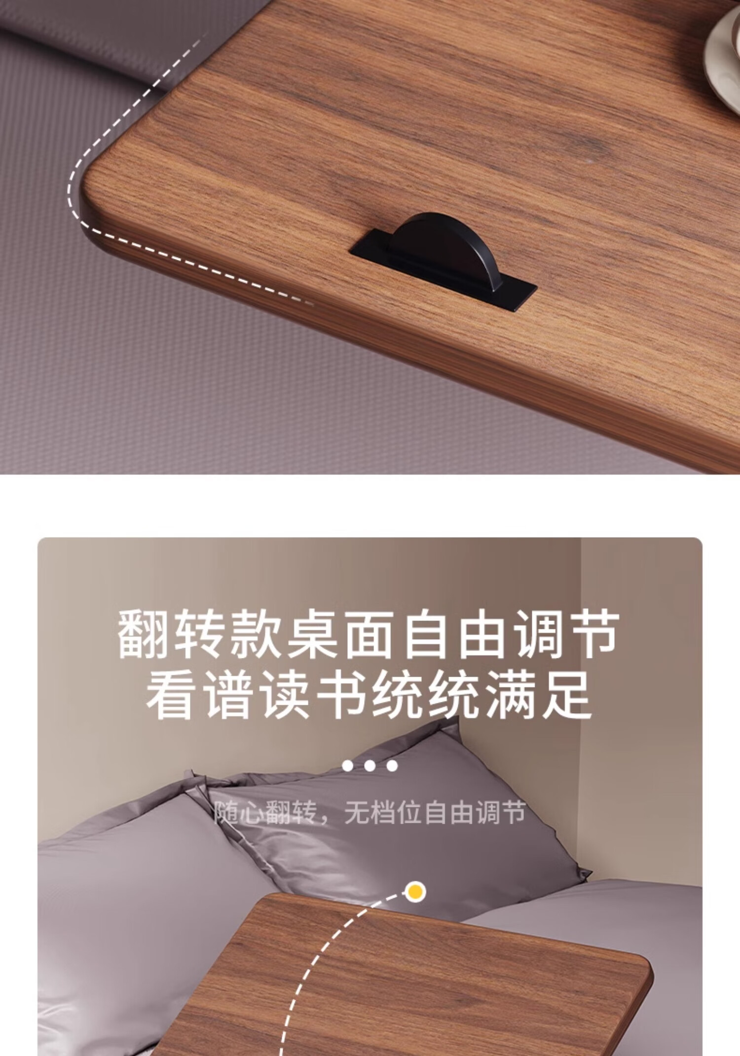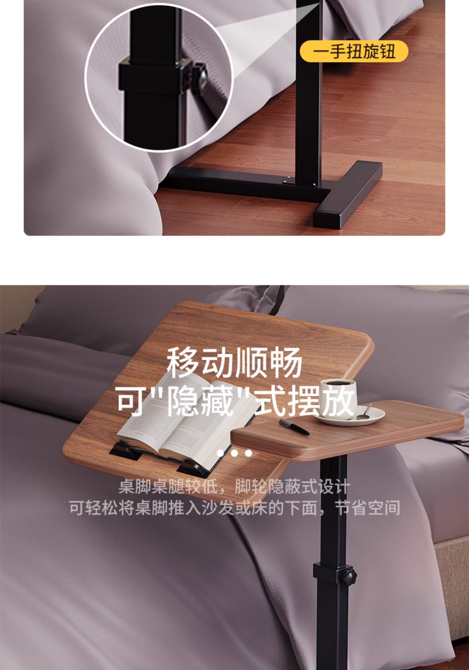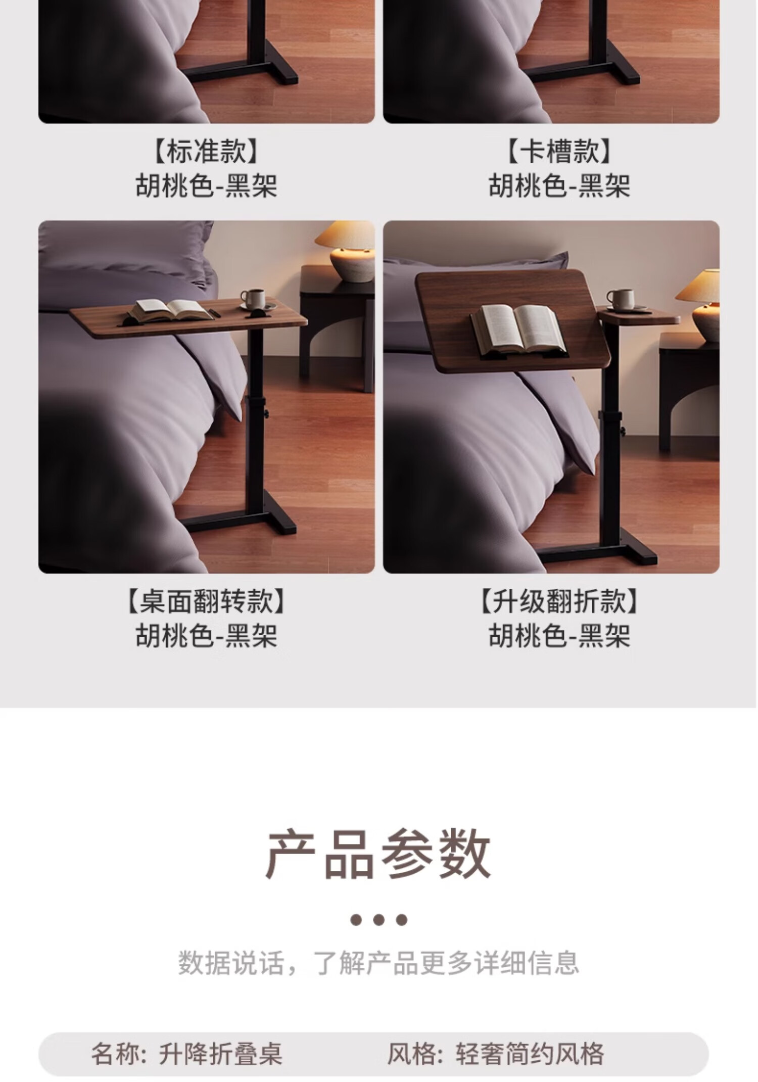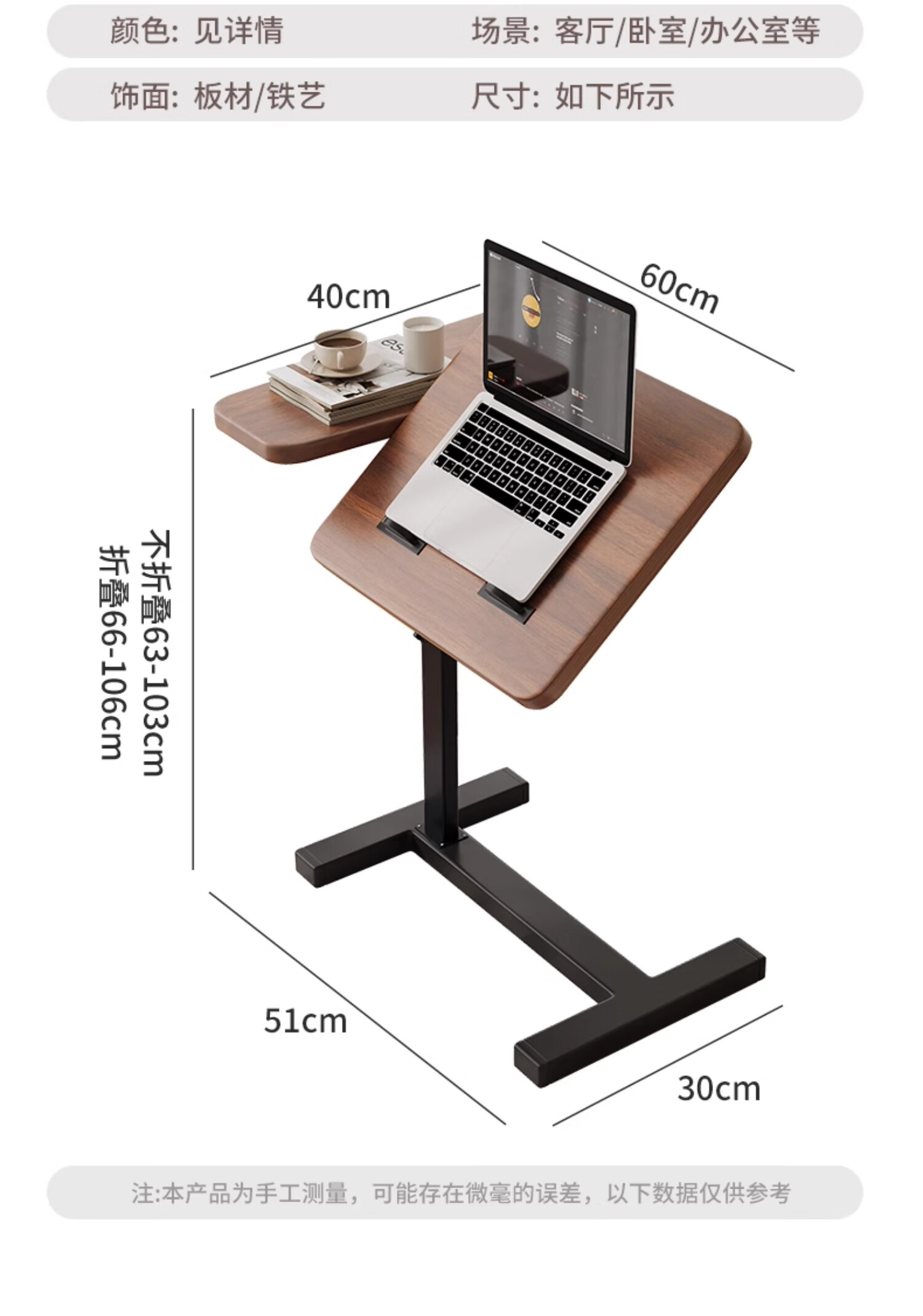 MODX bedside table movable lifting side table sofa bed computer table study table folding desk bedroom small table foldable-upgraded folding desktop walnut color thickened