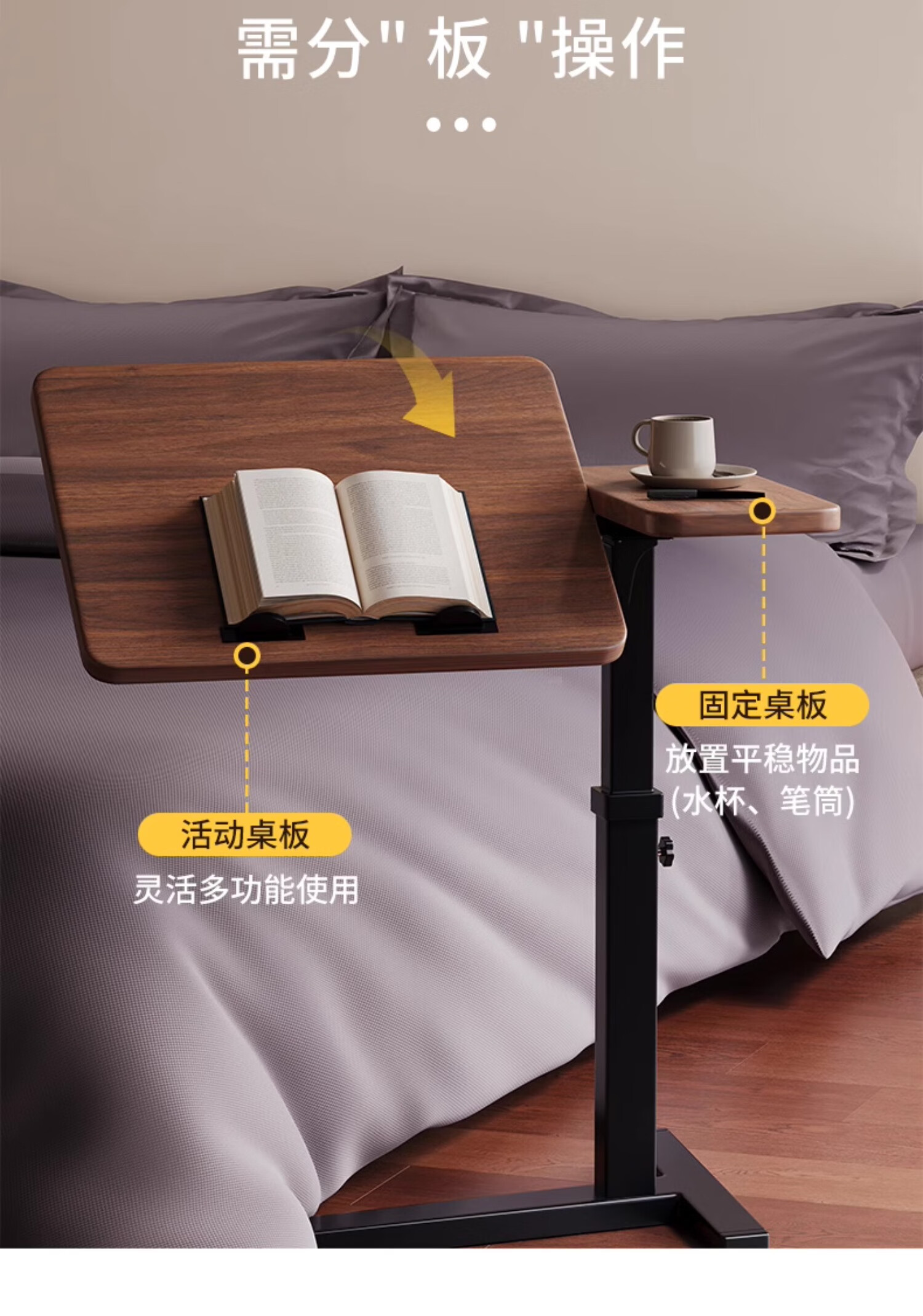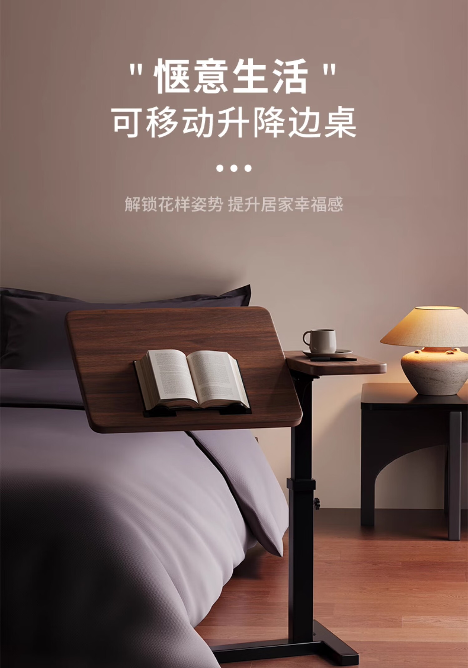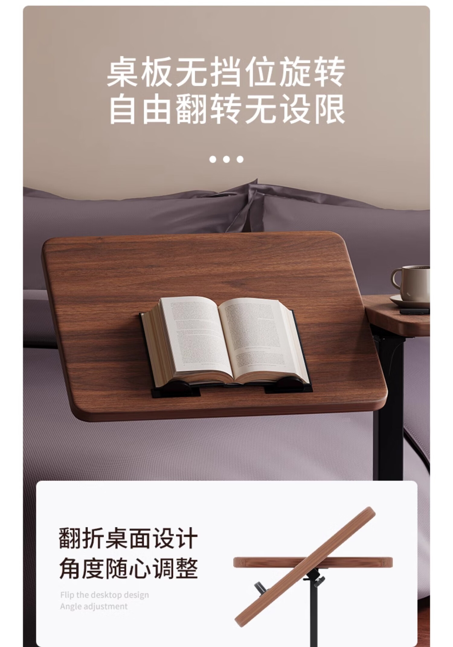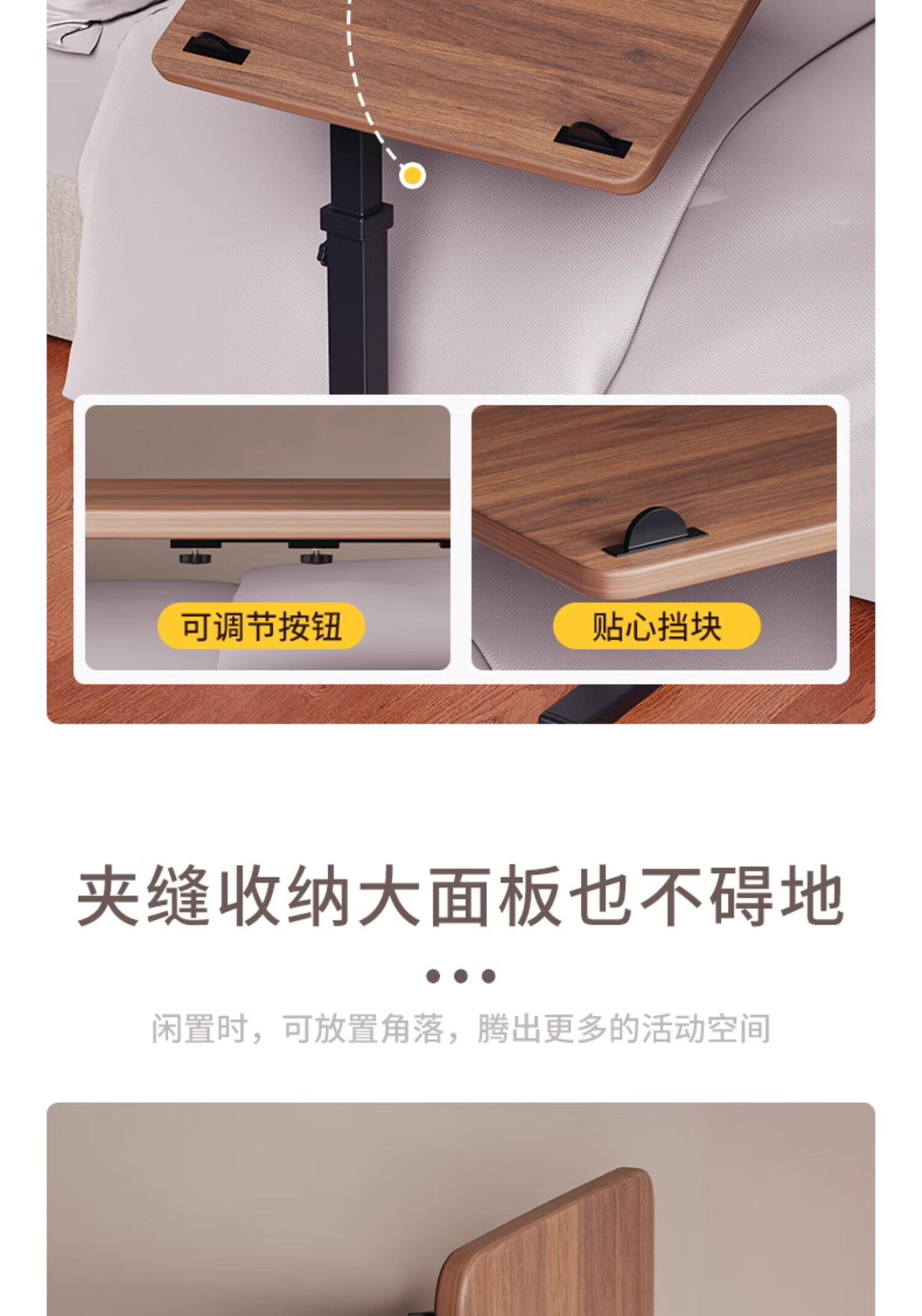 MODX bedside table movable lifting side table sofa bed computer table study table folding desk bedroom small table foldable-upgraded folding desktop walnut color thickened