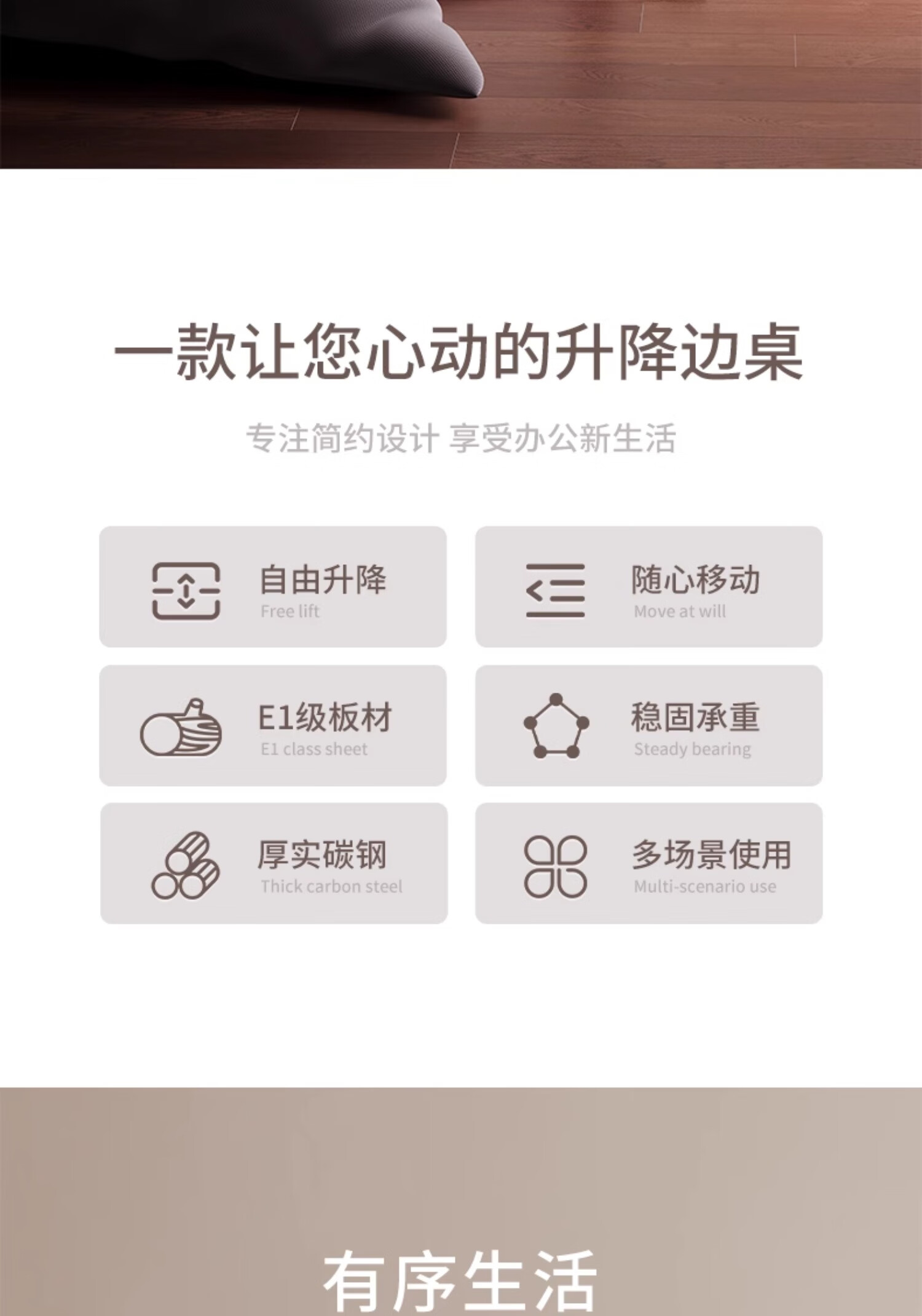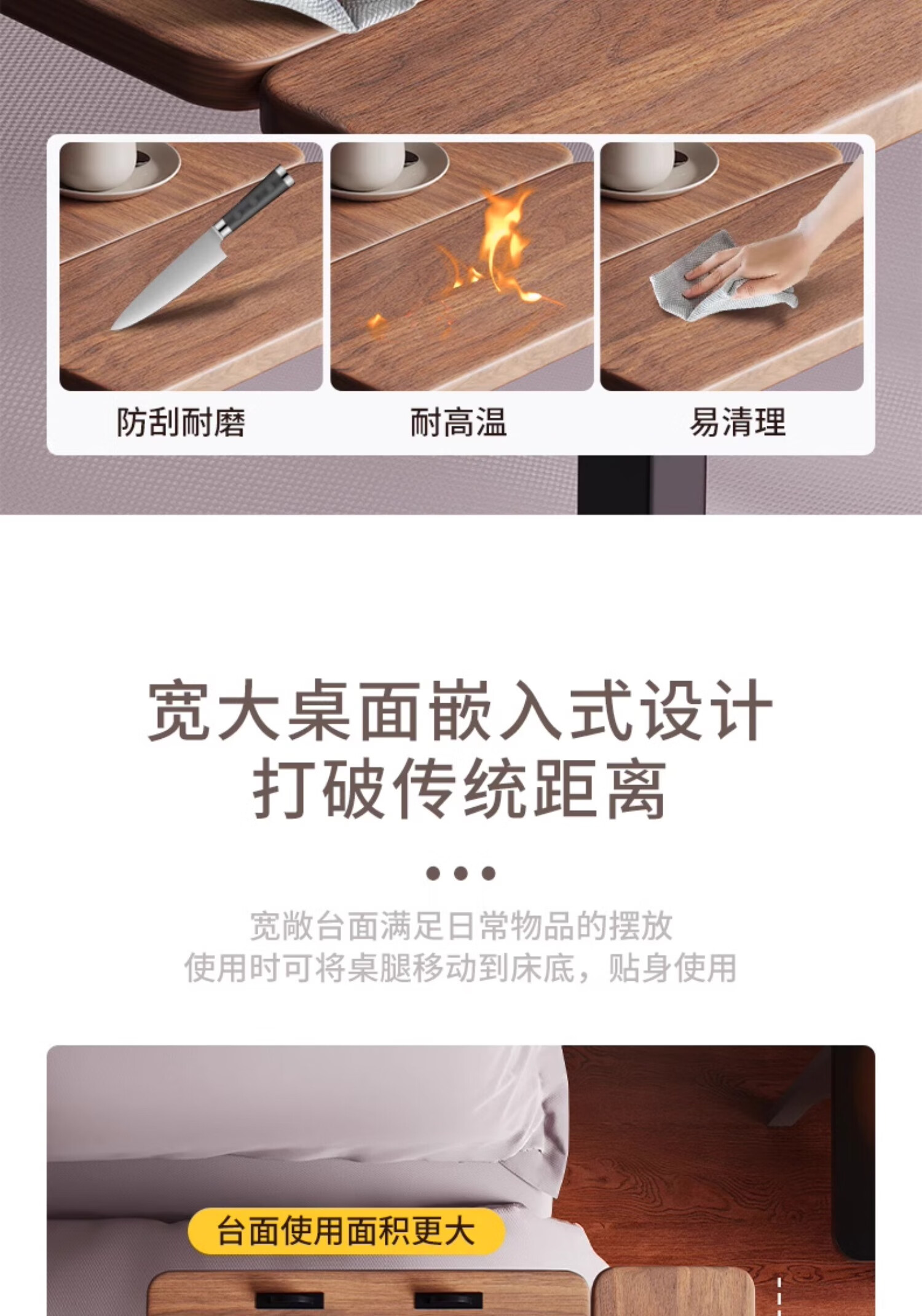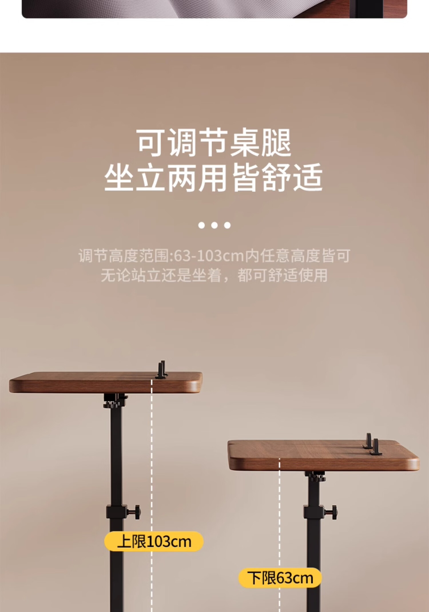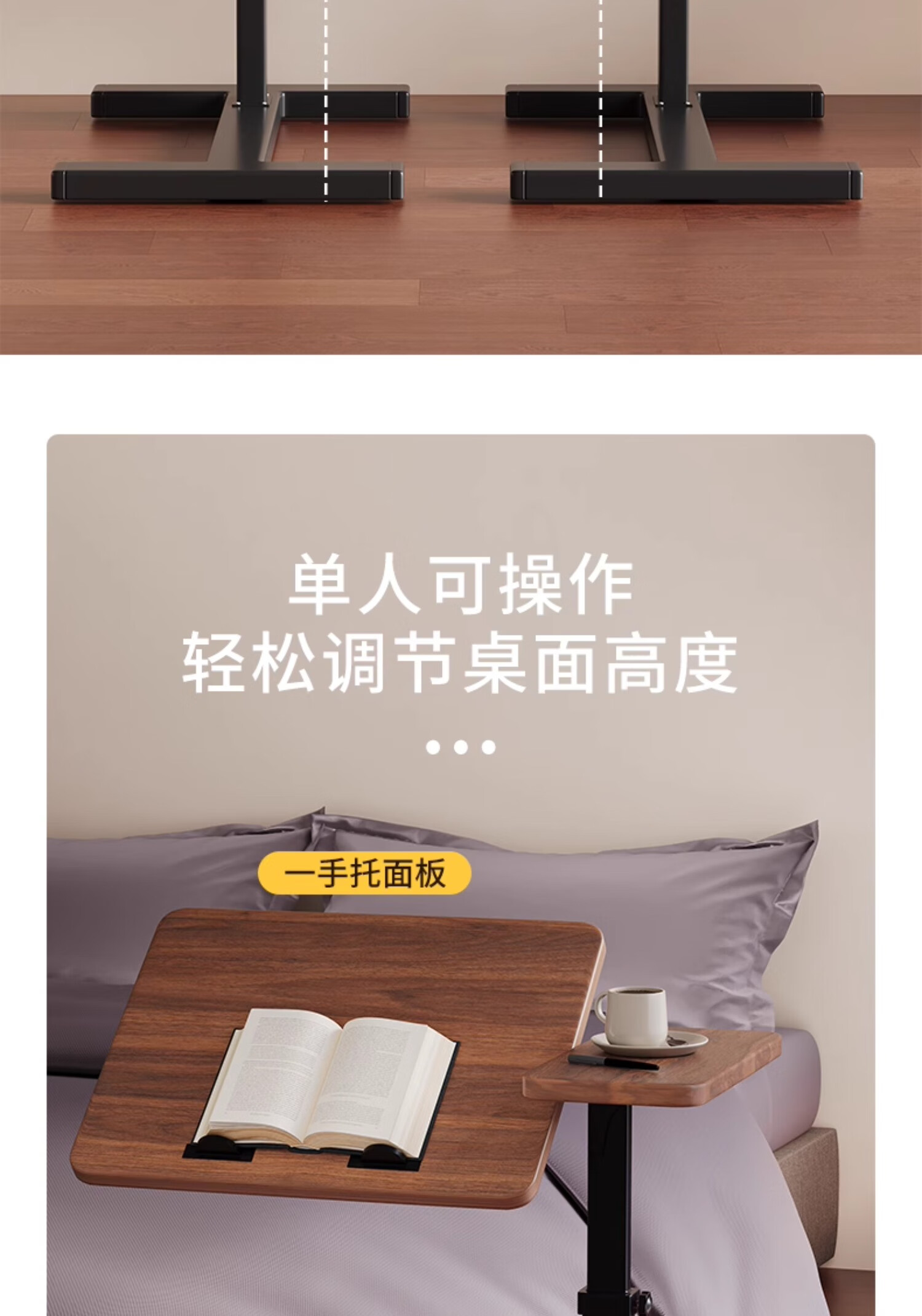 MODX bedside table movable lifting side table sofa bed computer table study table folding desk bedroom small table foldable-upgraded folding desktop walnut color thickened