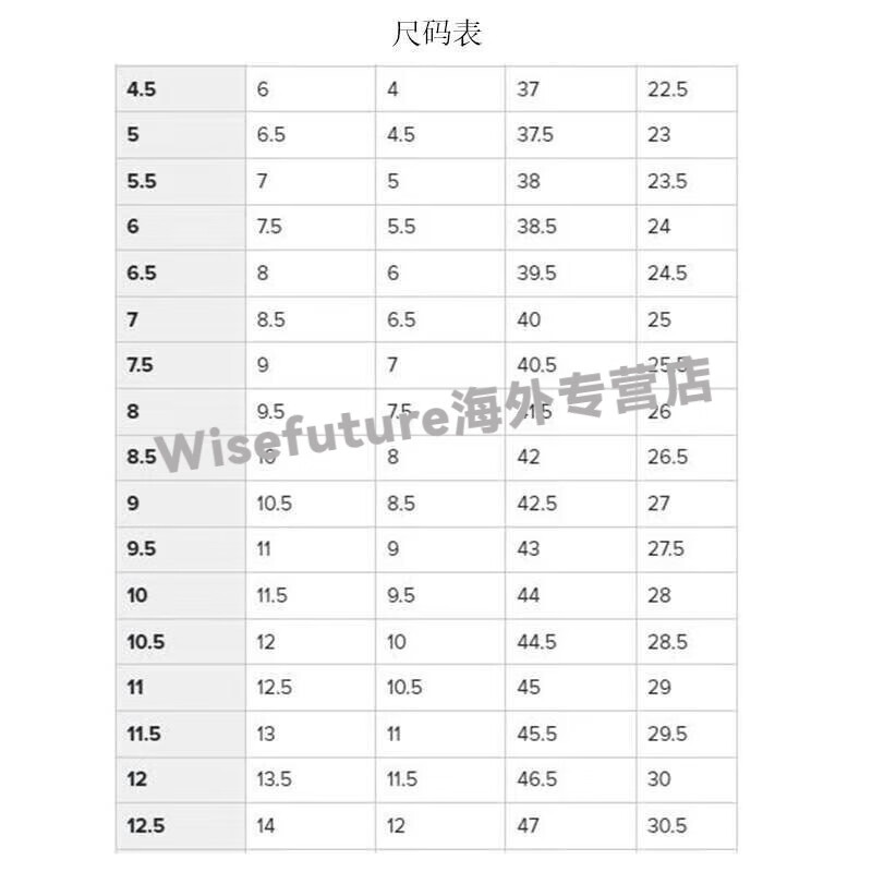 USA 5 5.5 6 7 7.5 8.5 9.5 10 10.5 12 13 14 15.5