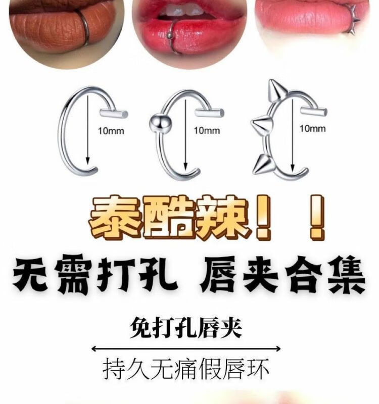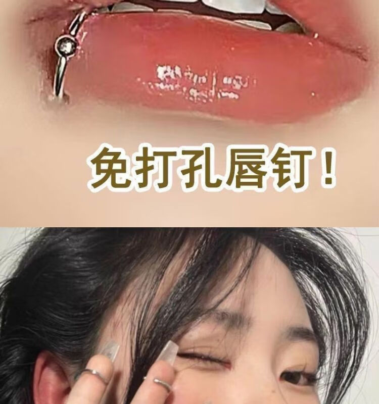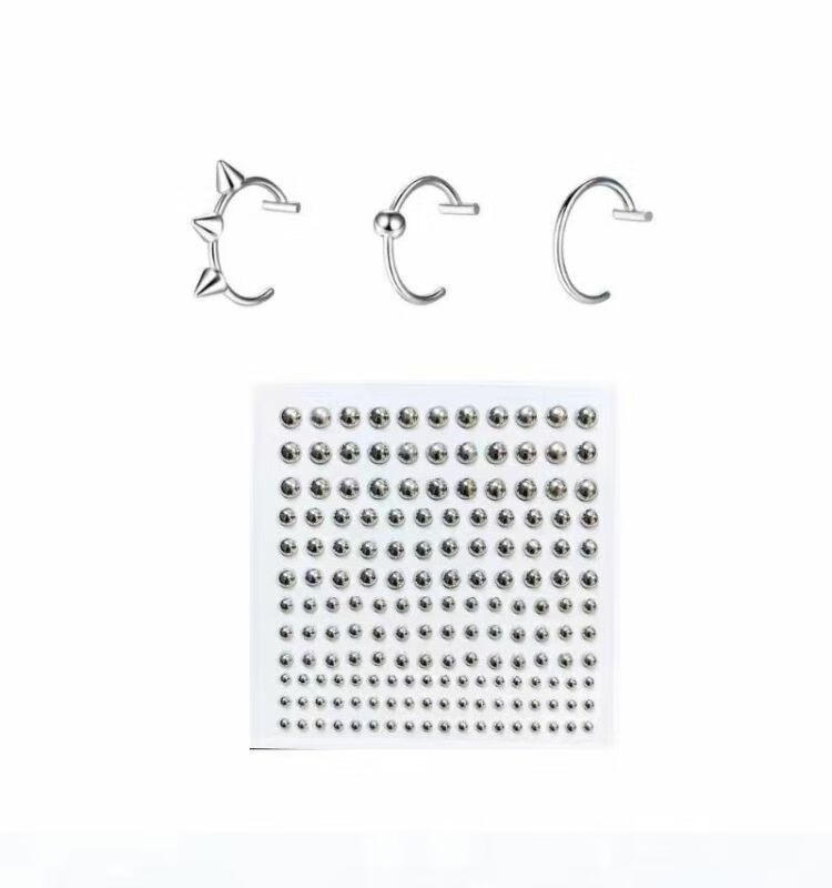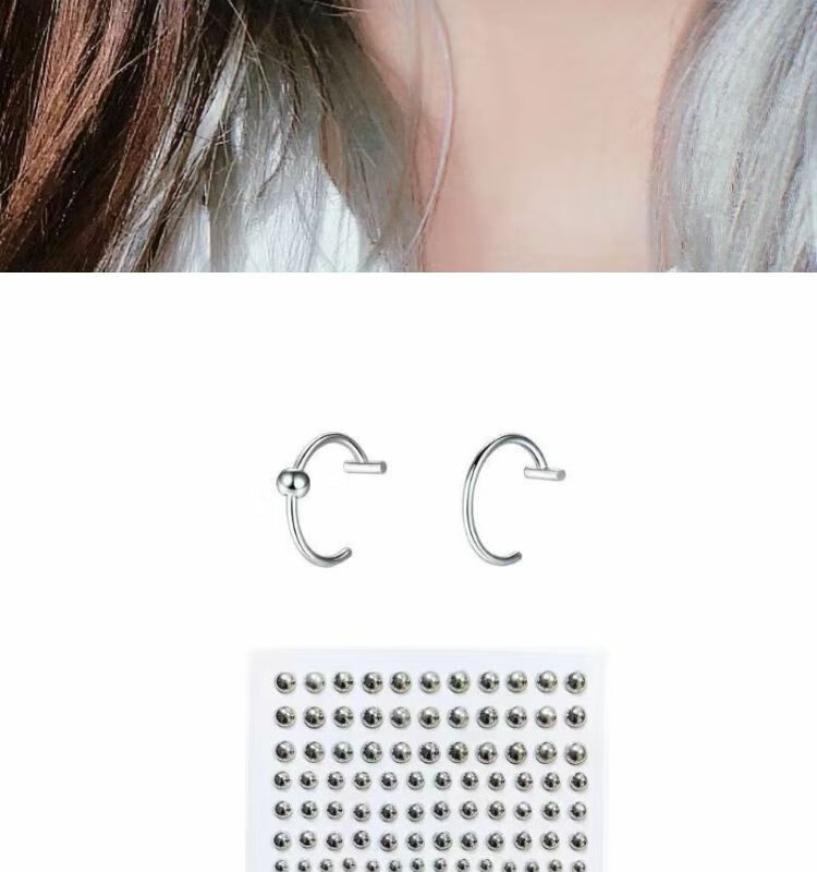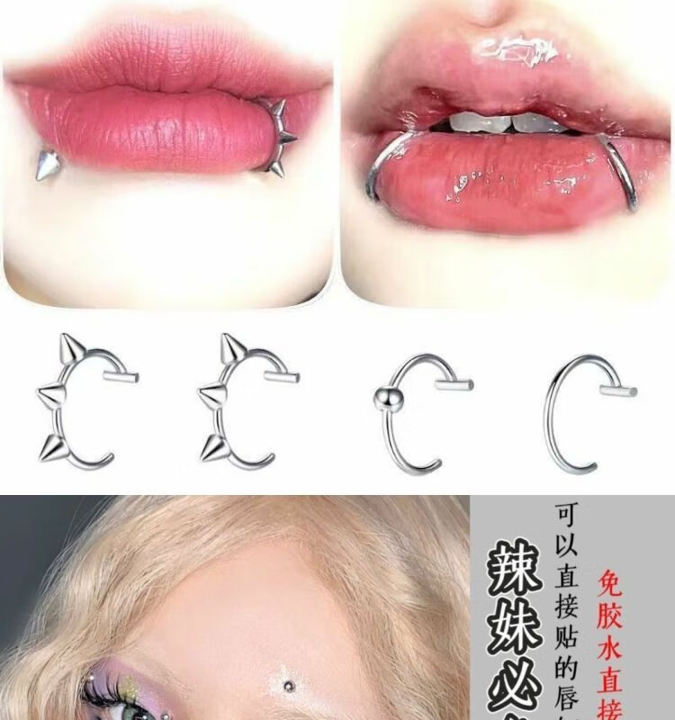 Meipai punch-free lip nail lip ring hot girl devil nail hemisphere adhesive ear nail ear bone nail lip nail nose nail titanium steel fake lip ring straight line + ball + wolf tooth + silver nail self-adhesive