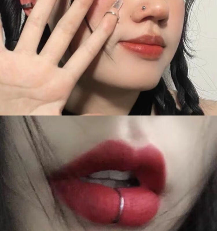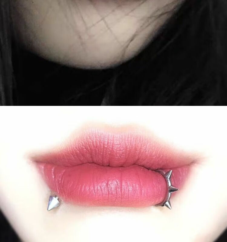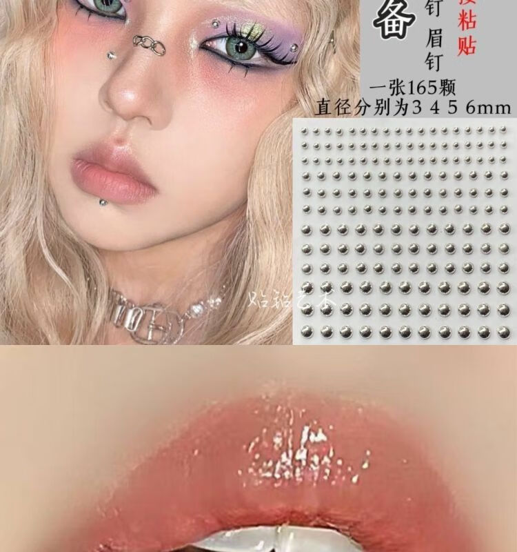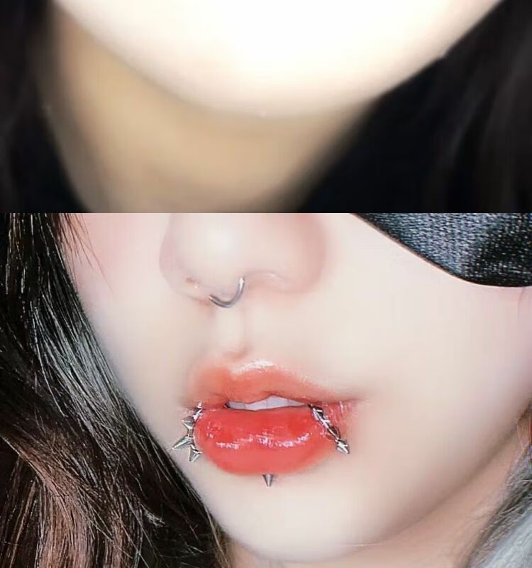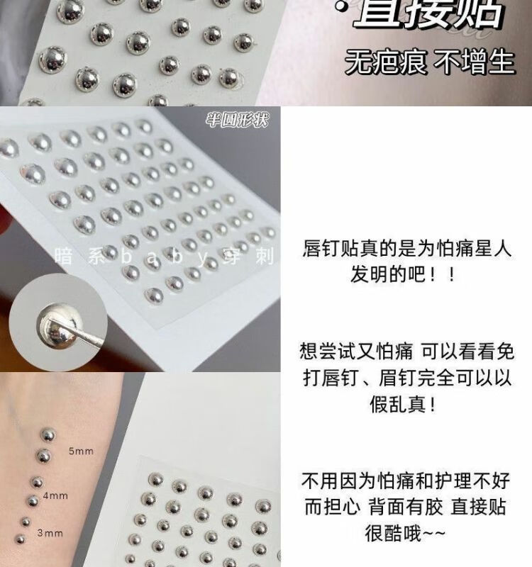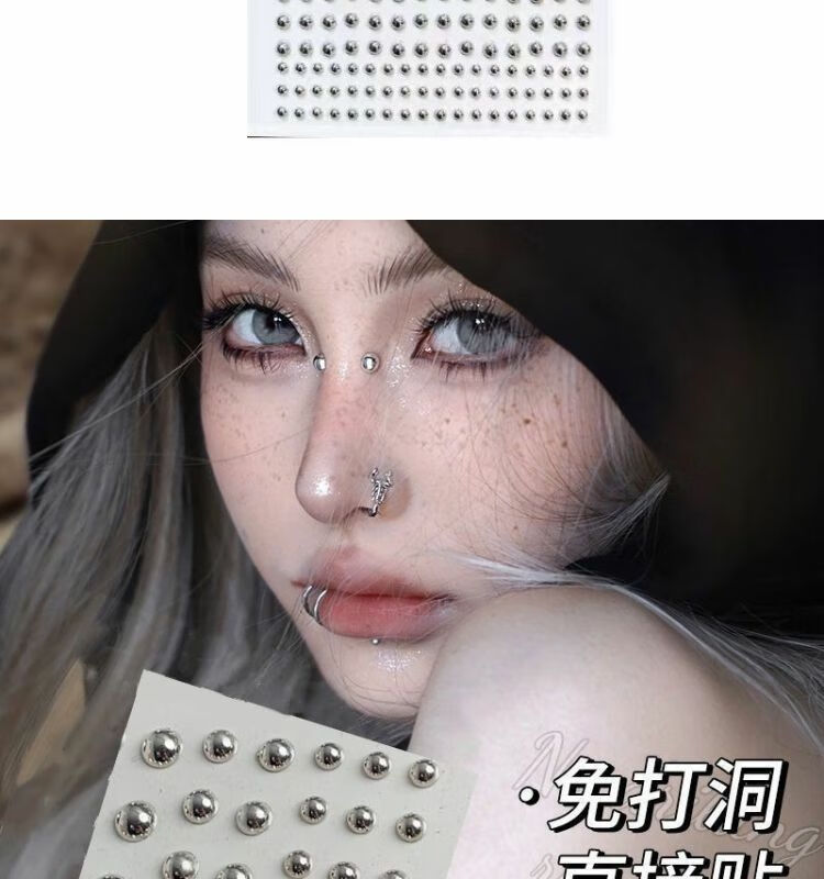 Meipai punch-free lip nail lip ring hot girl devil nail hemisphere adhesive ear nail ear bone nail lip nail nose nail titanium steel fake lip ring straight line + ball + wolf tooth + silver nail self-adhesive