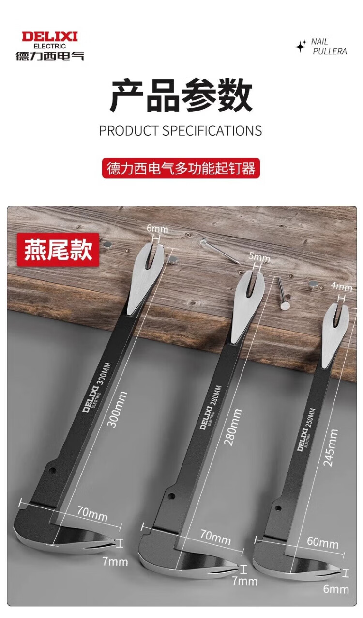 Delixi crowbar woodworking special steel special warp iron bar multi-functional crowbar crowbar nail puller nail remover self-defense artifact professional grade 8-inch dovetail style crowbar 245mm