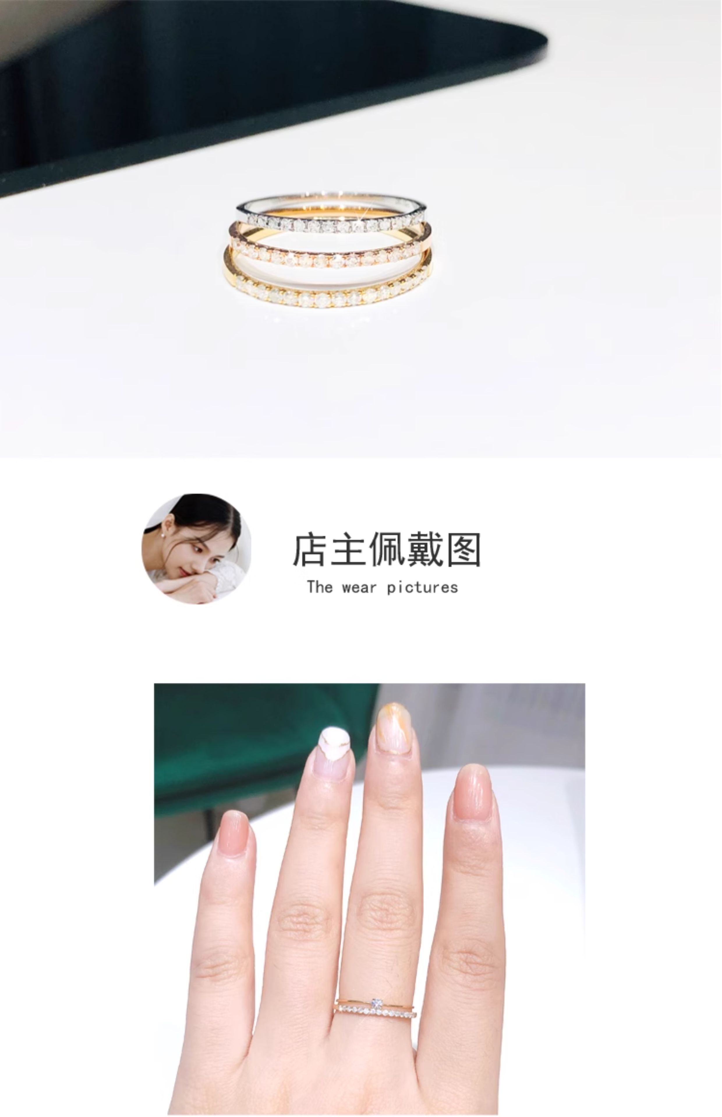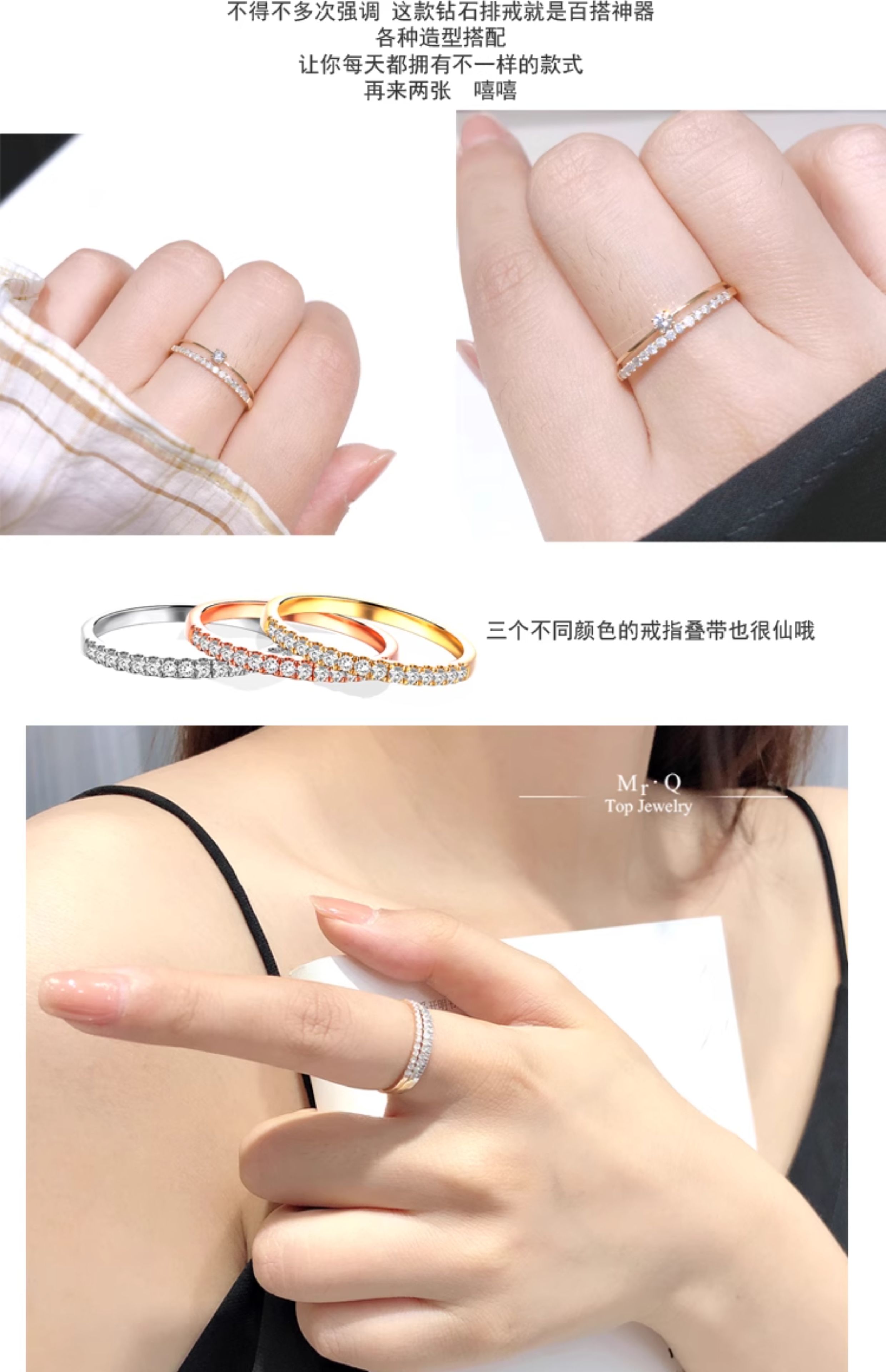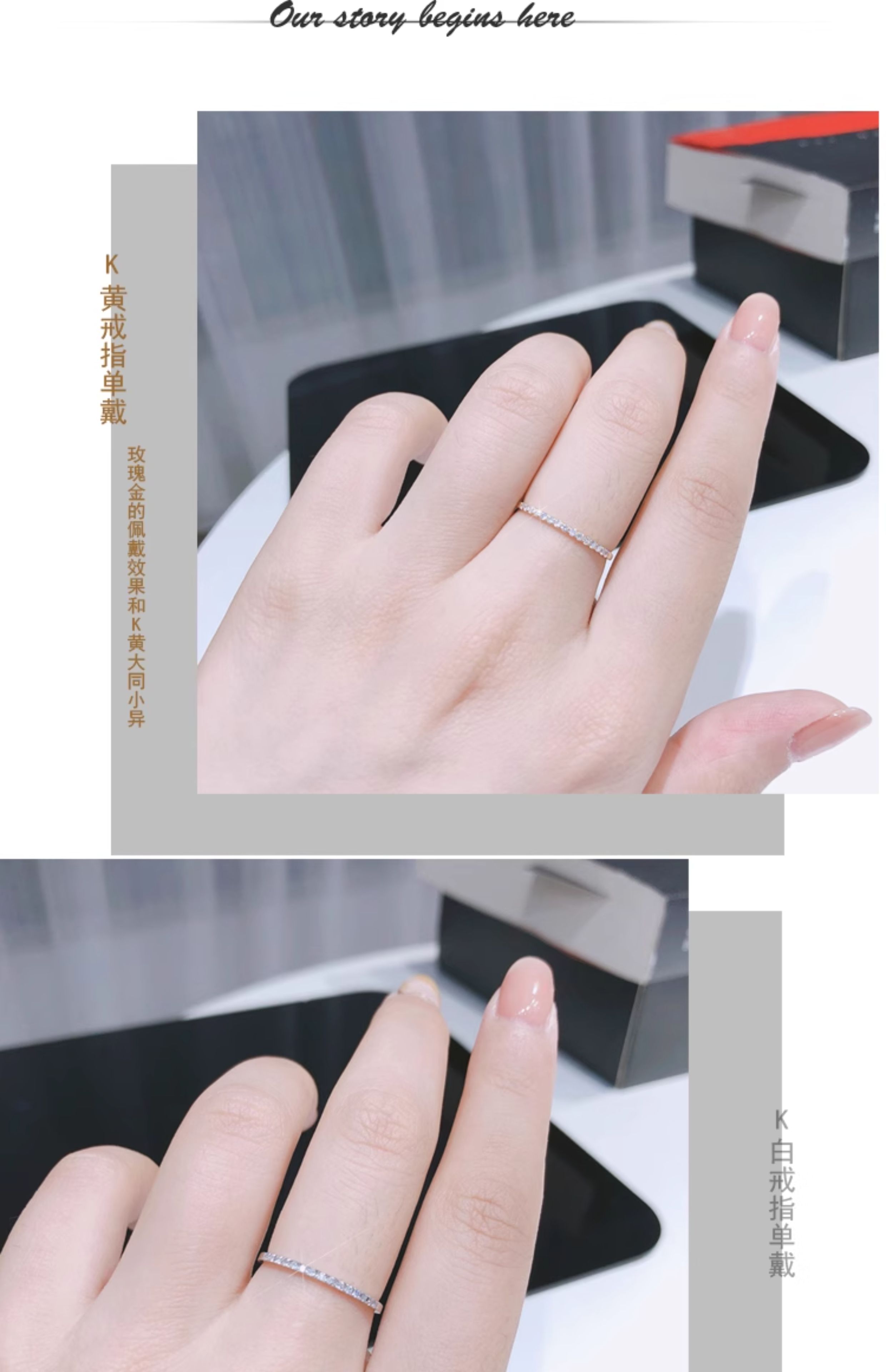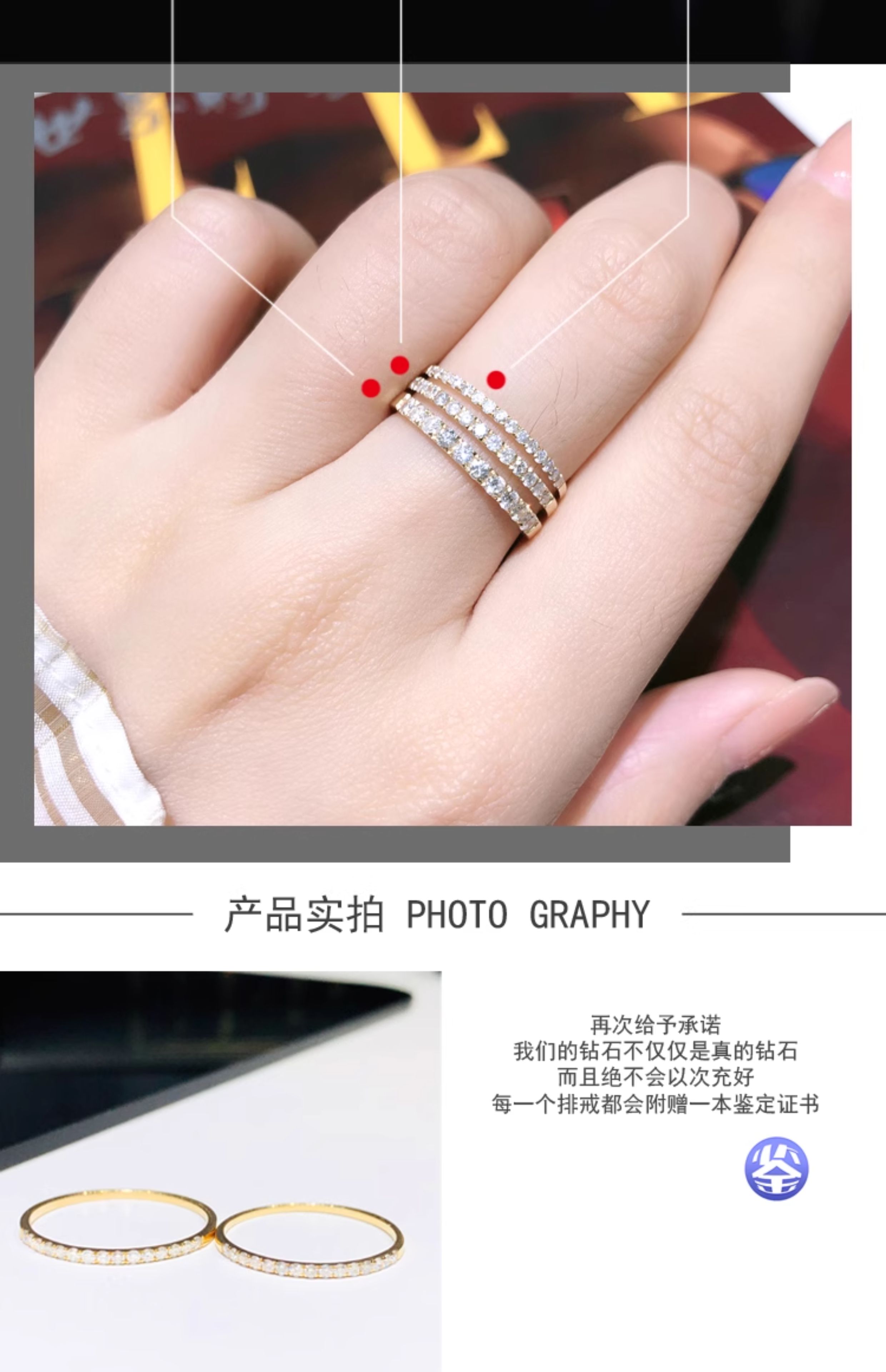 Slightly gifted 18K white bright real diamond row dreamK white rose gold daily gift to girlfriend, non-PT9 certificate, no grading below 20 points, rose gold-17 ring F-G/excellent white 30 points