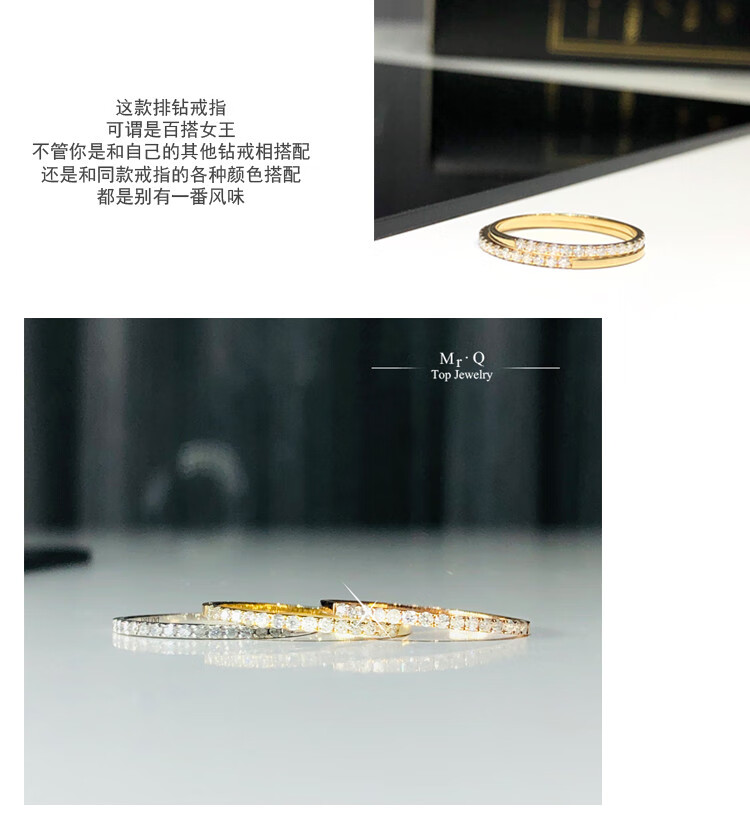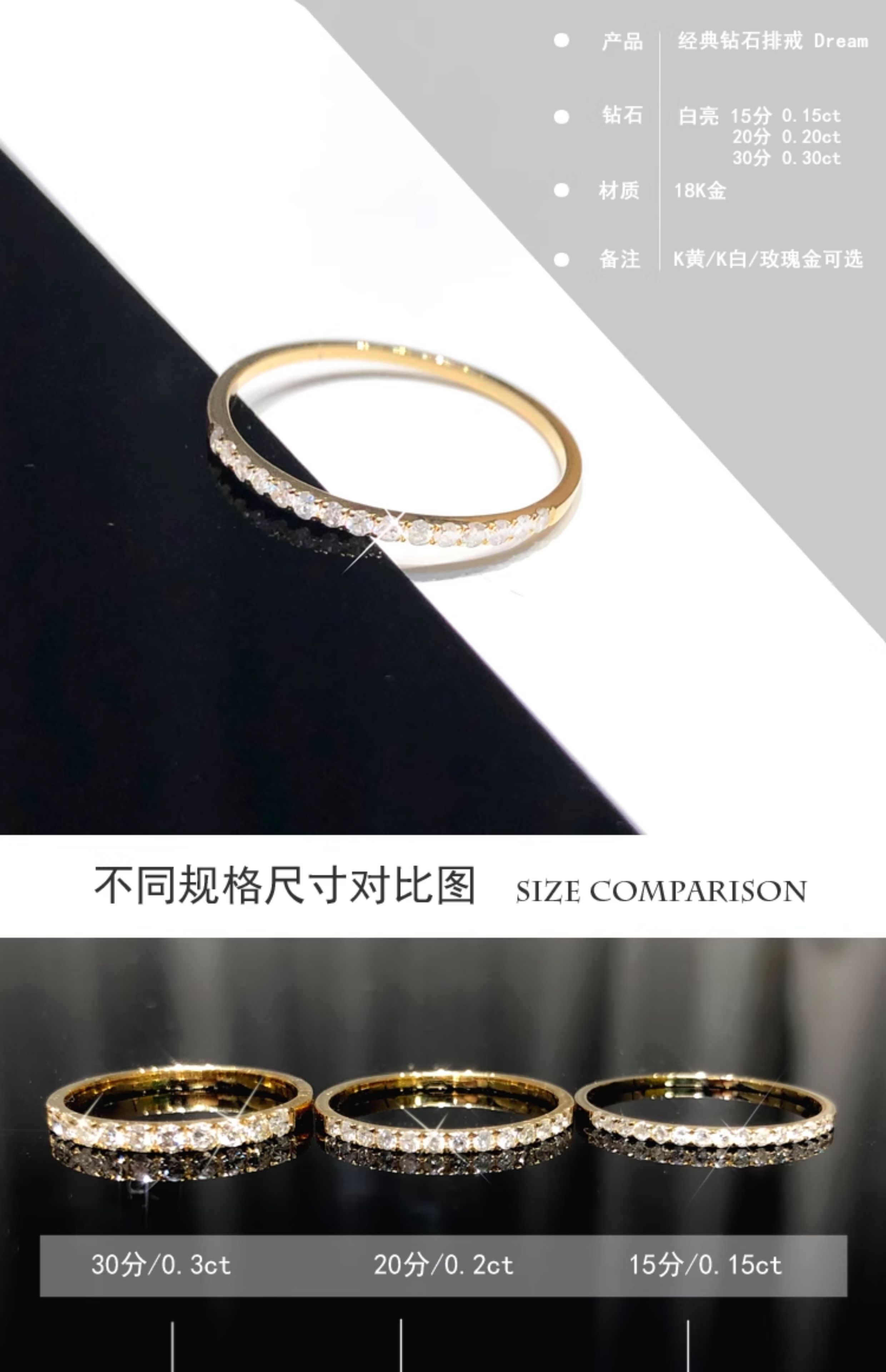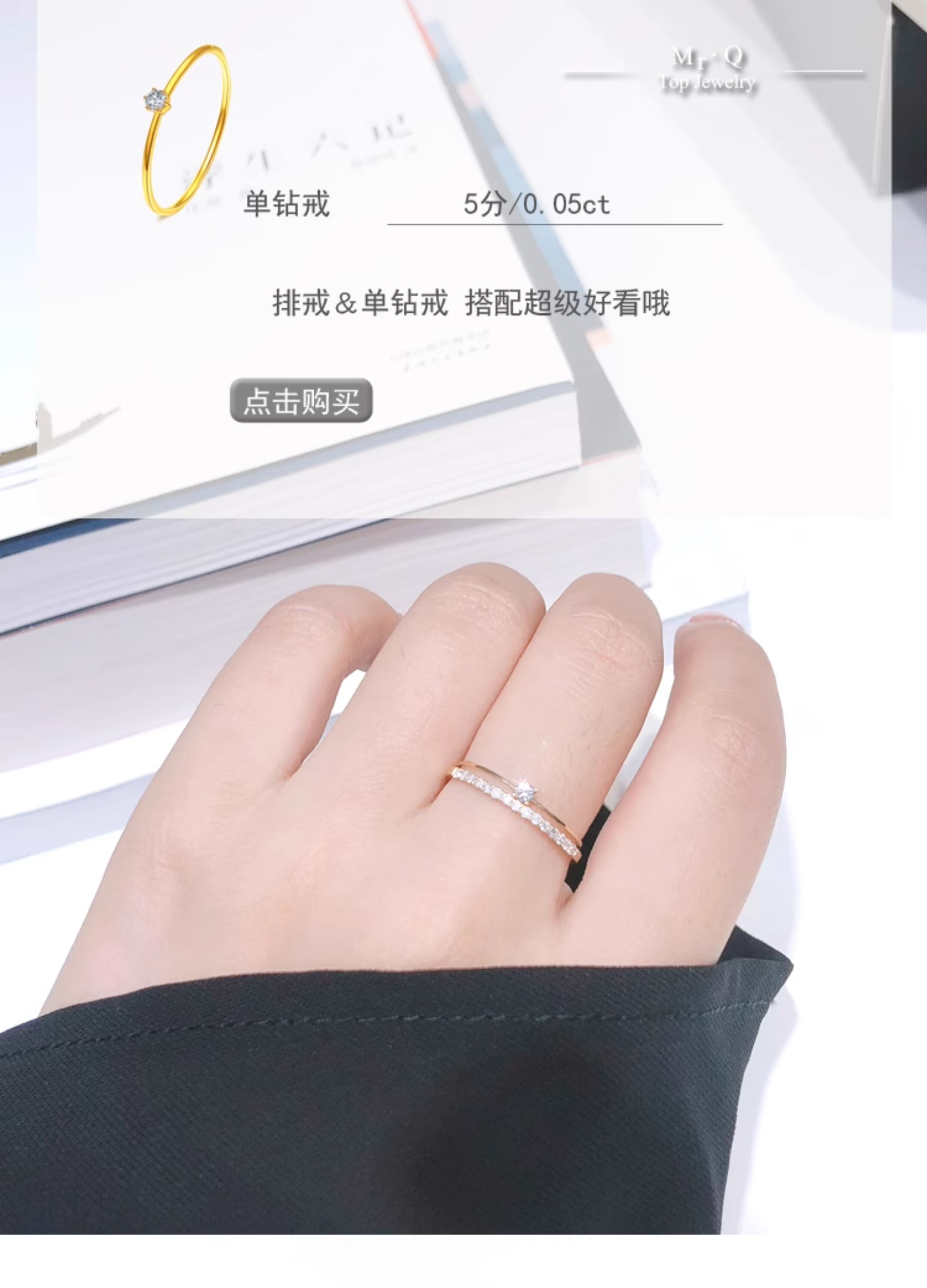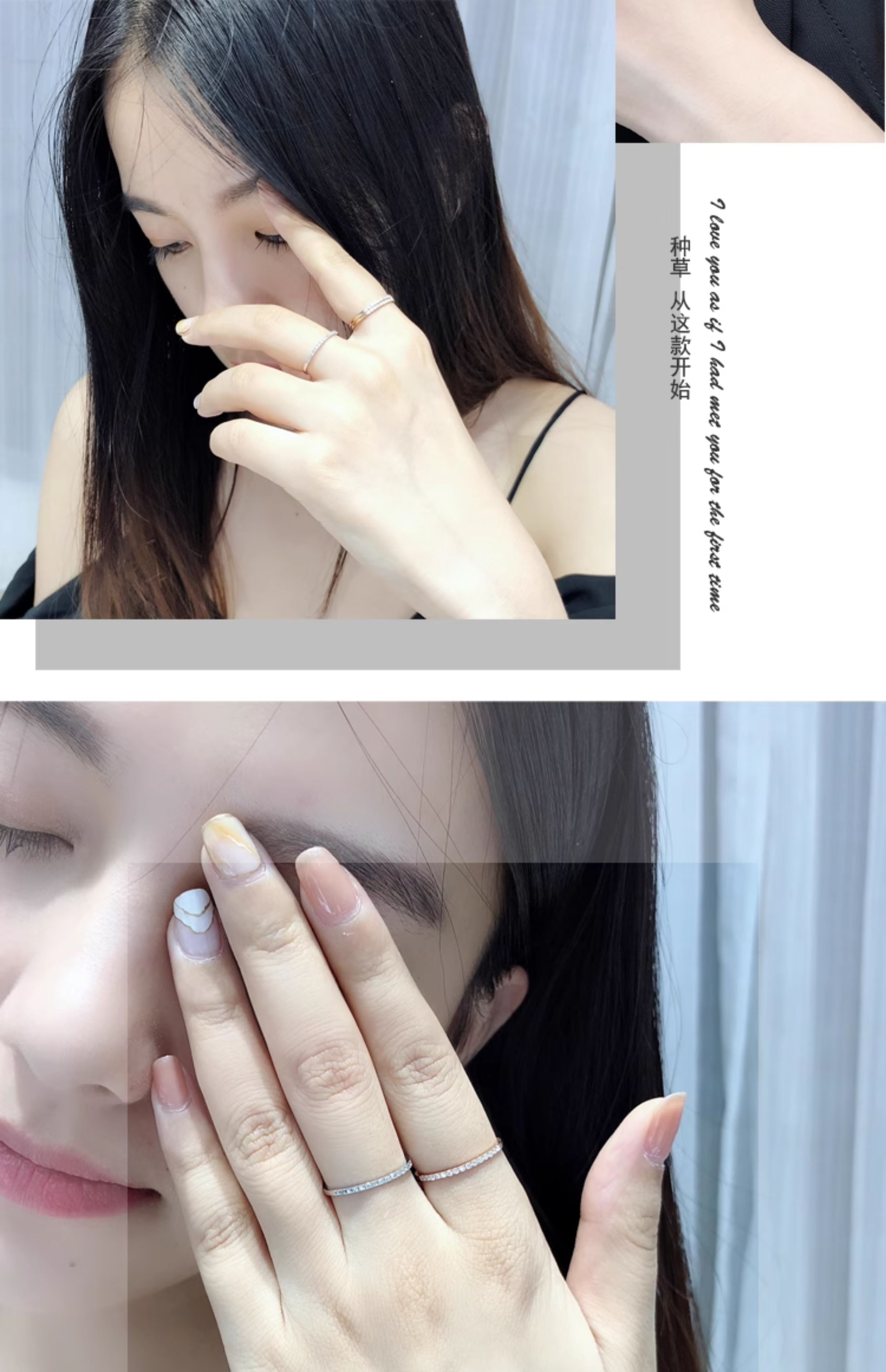 Slightly gifted 18K white bright real diamond row dreamK white rose gold daily gift to girlfriend, non-PT9 certificate, no grading below 20 points, rose gold-17 ring F-G/excellent white 30 points