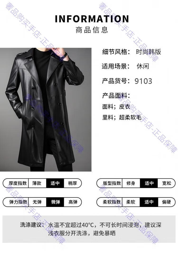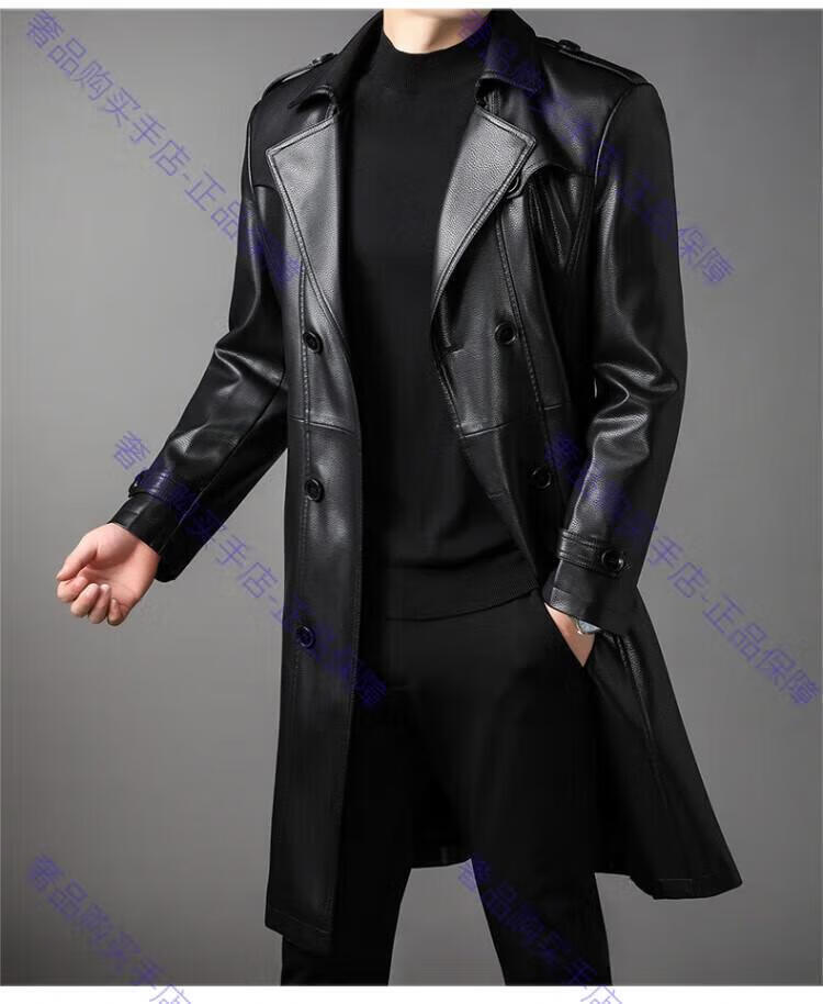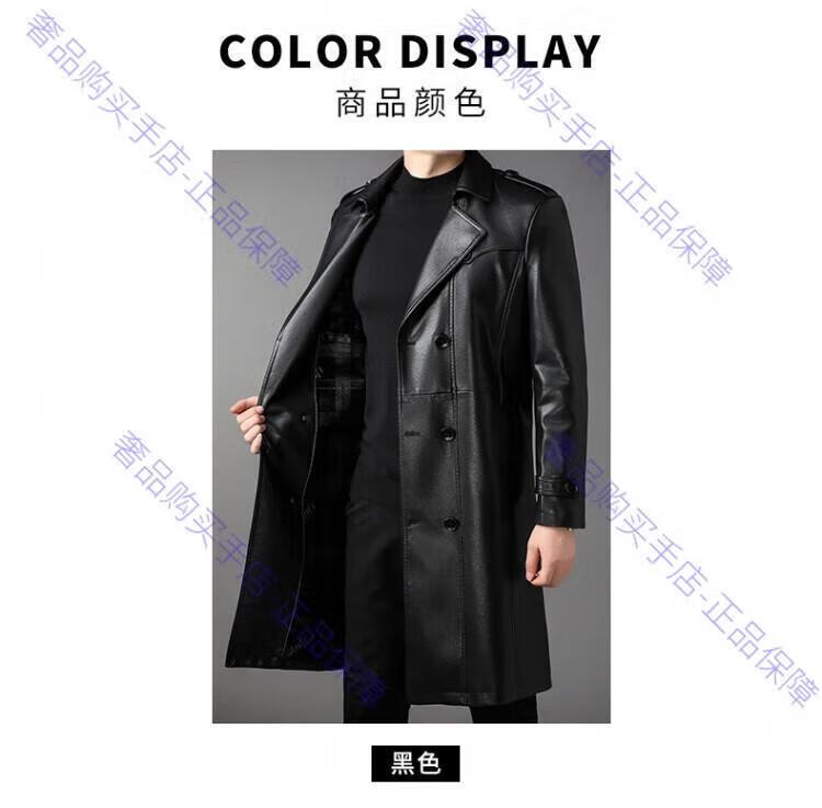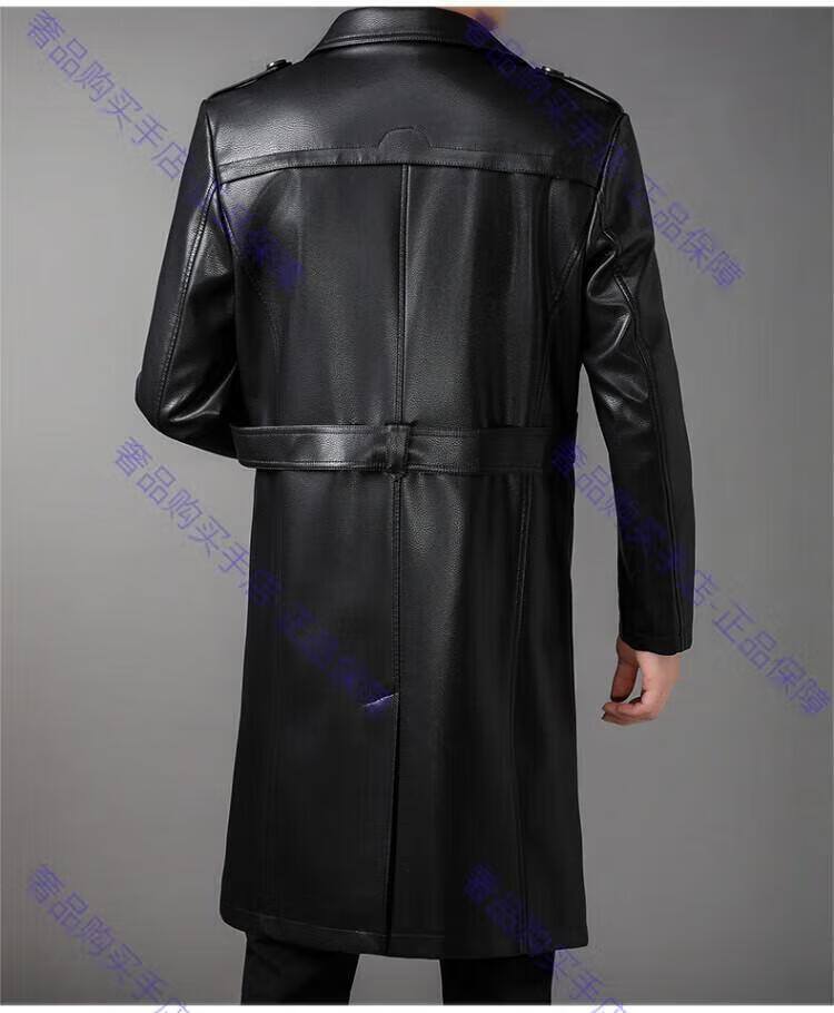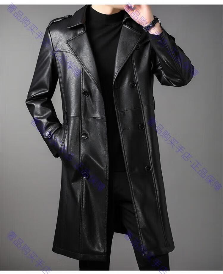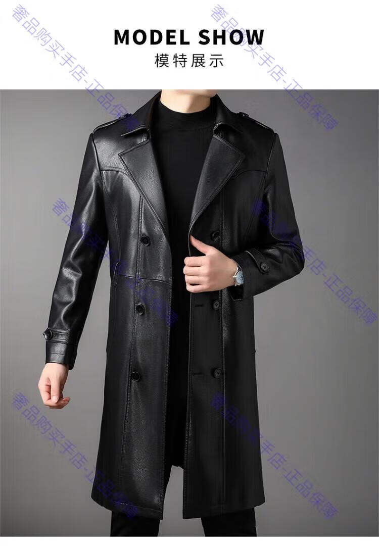 MAGIOPY luxury high-end brand men's long leather jacket men's autumn and winter new velvet double-breasted business casual belt jacket black M 170 90-105Jin Jin equals 0.5 kg