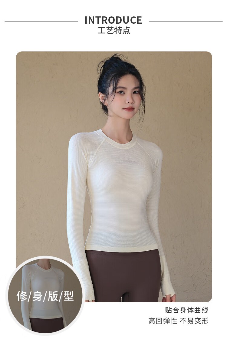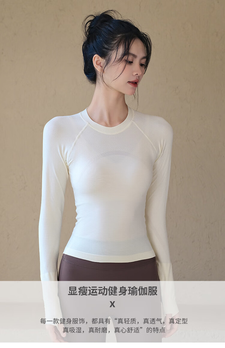 Yoga Girl Yoga Wear Women's Suit Highly Elastic Breathable Long Sleeve Running Fitness Pilates Tights Black Top + Dark Brown Pants M (95-115Jin Jin equals 0.5kg)