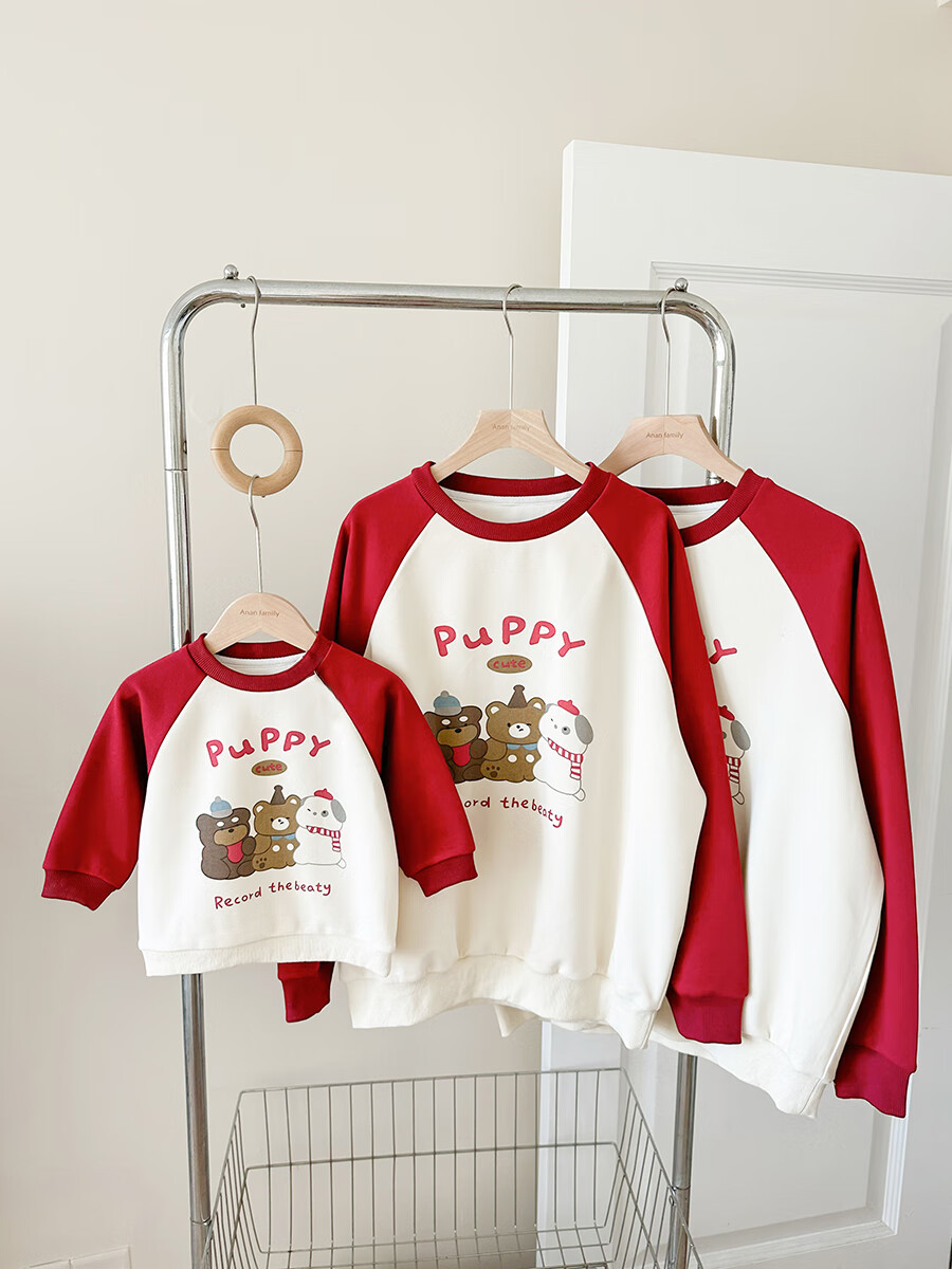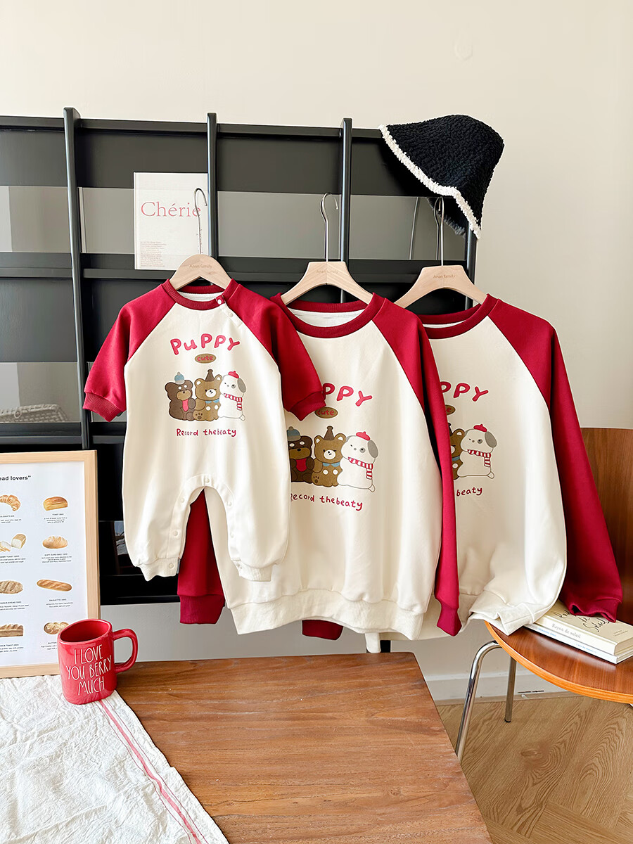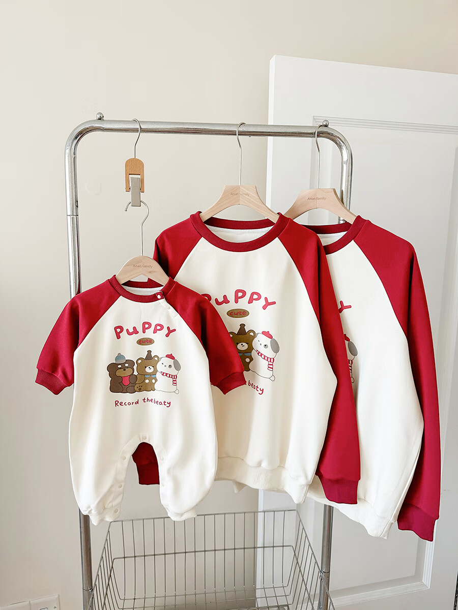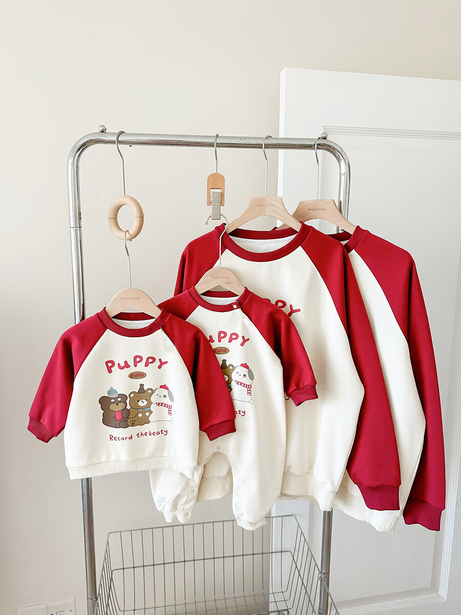 G.duck little yellow duck 2025 family portrait parent-child outfit large size family of three or four mother and child mother and daughter baby small month old spring and autumn long red (without velvet) 165 adult S size