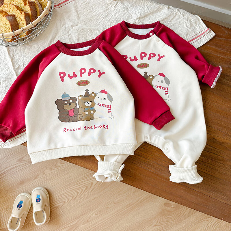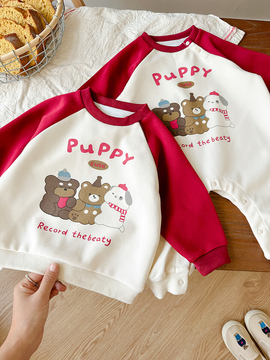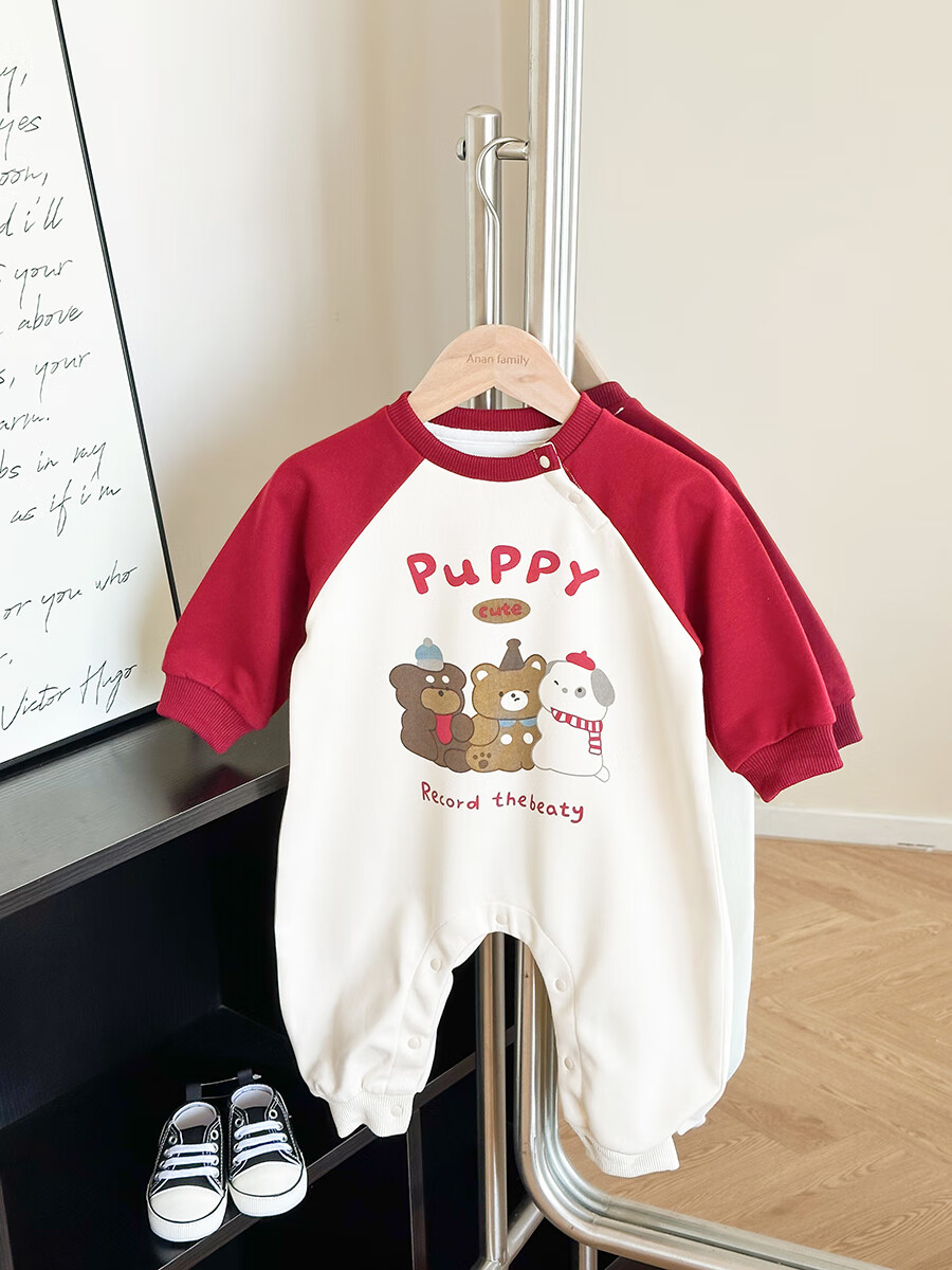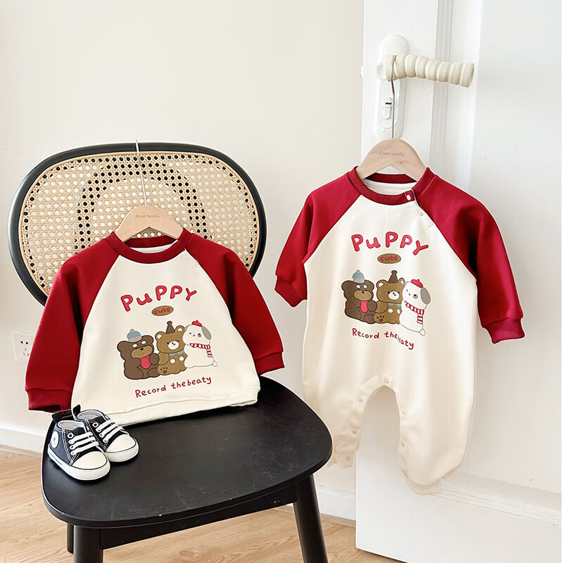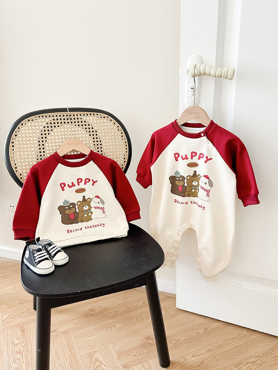 G.duck little yellow duck 2025 family portrait parent-child outfit large size family of three or four mother and child mother and daughter baby small month old spring and autumn long red (without velvet) 165 adult S size