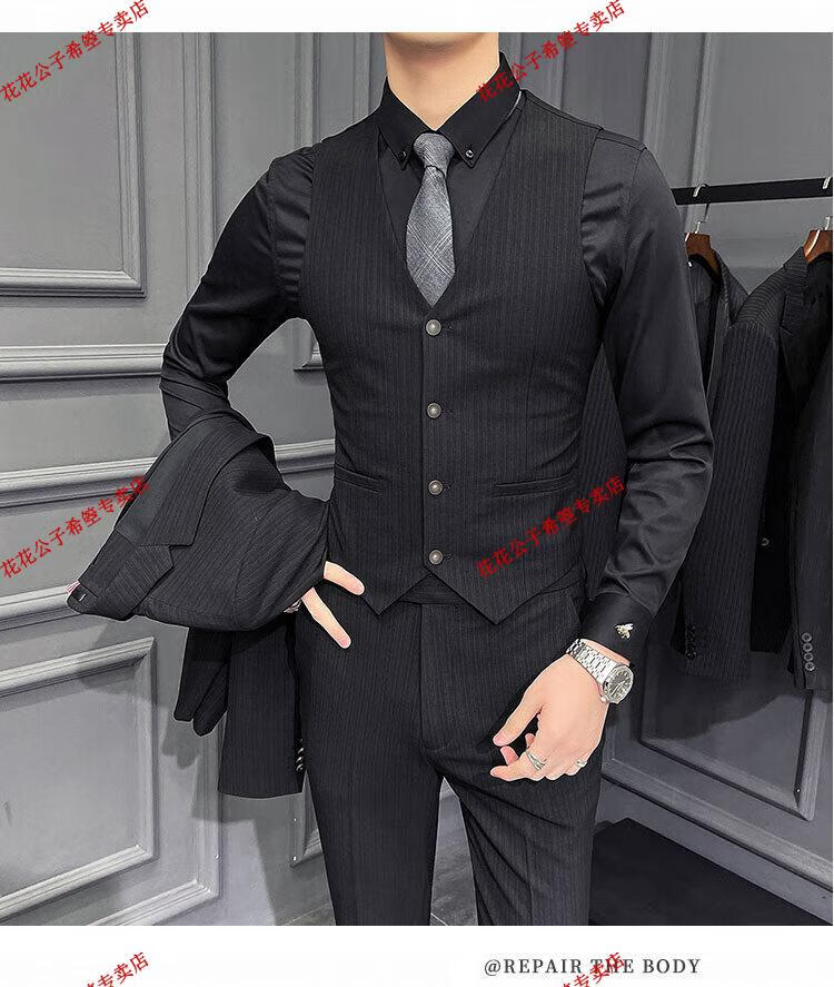 Playboy suit men's suit trendy Korean version slim fit British groom wedding dress business professional black casual suit 1 dark gray texture 9905 suit + trousers with white shirt 3XL 56/160Jin Jin is equal to 0.5 kg wear