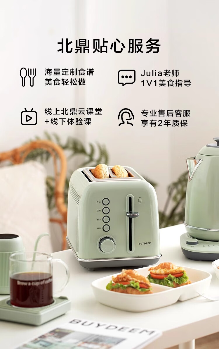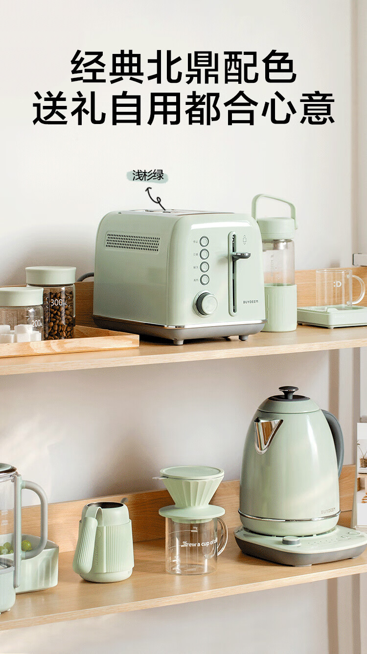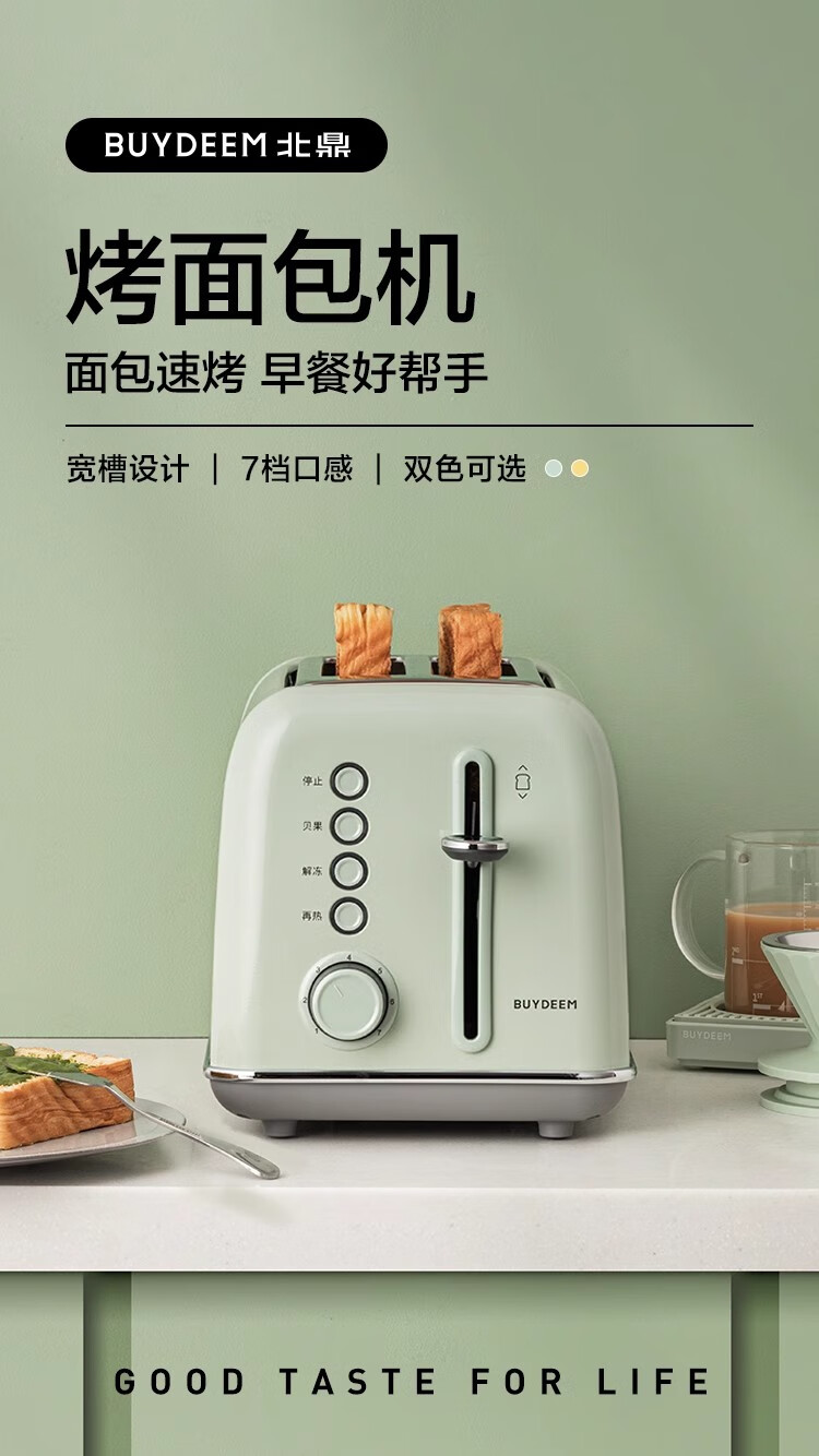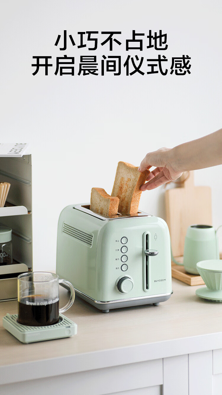 Buydeem Bread Machine Toaster D712 Multifunctional Fully Automatic Toaster Home Toaster Toaster Waffle Machine Quick Rebaking Bread Toaster Light Fir Green D712