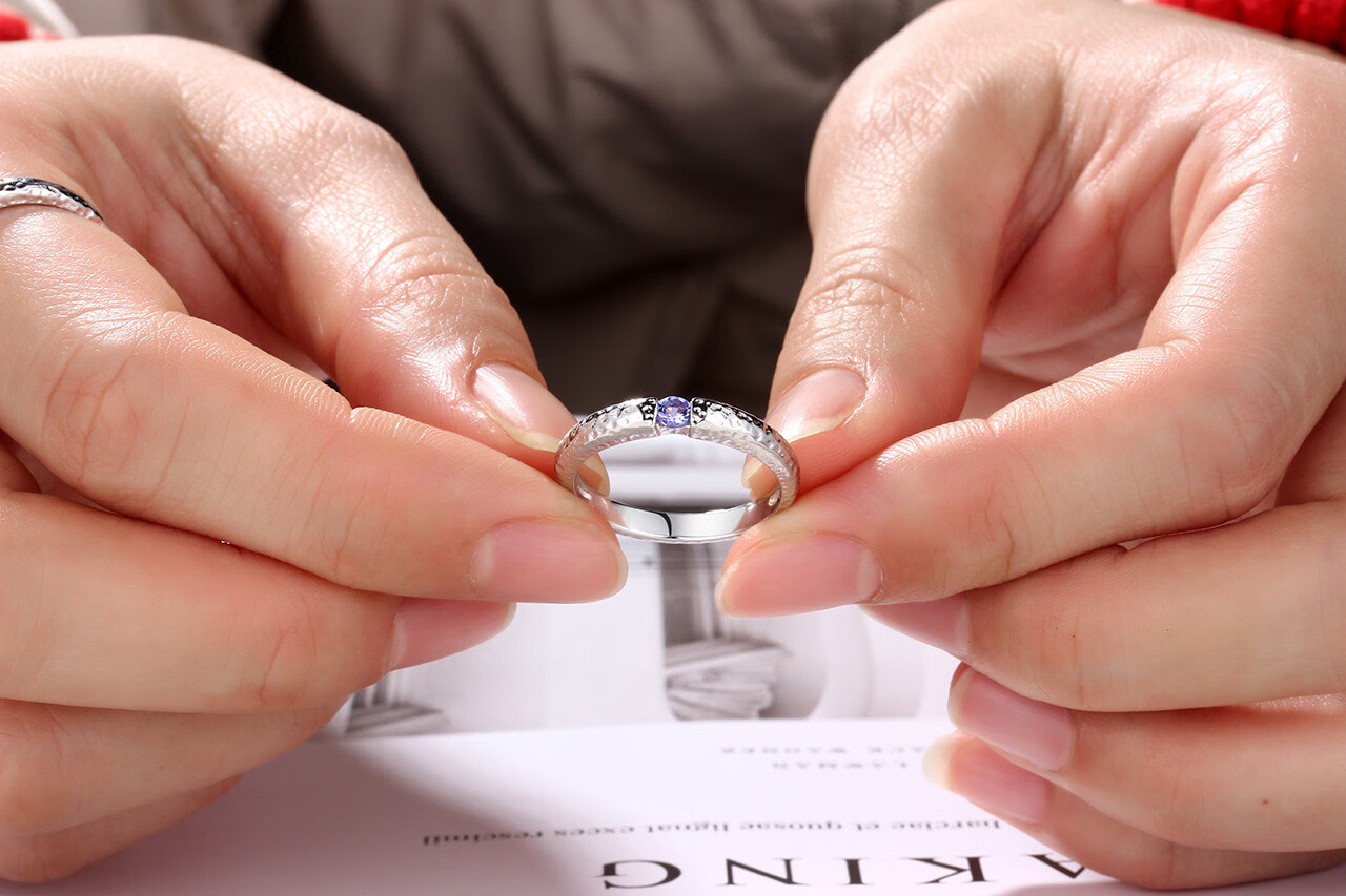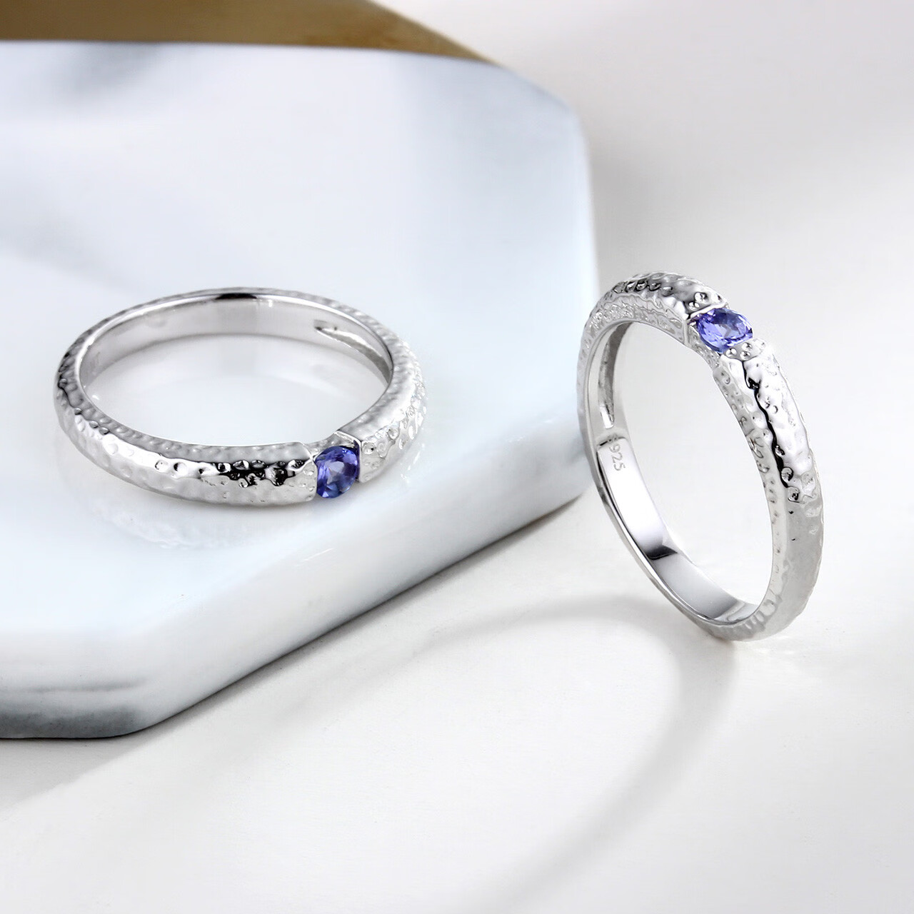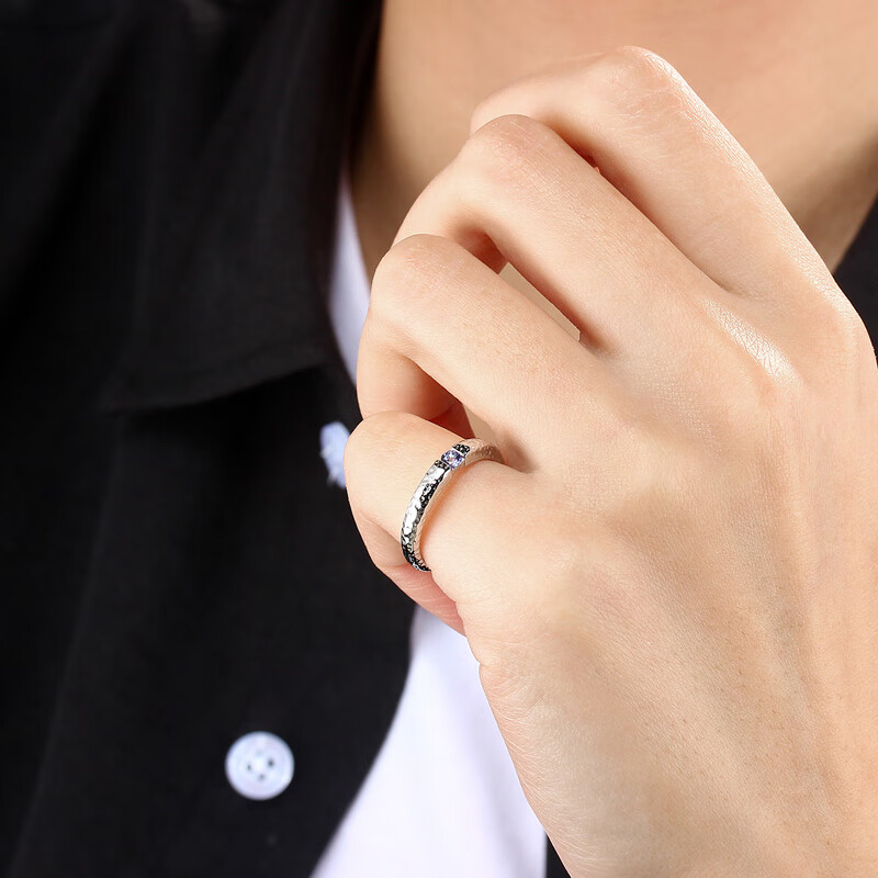 Micro-pattern ring sterling silver Tanzanite couple ring closed crystal niche original design No. 10