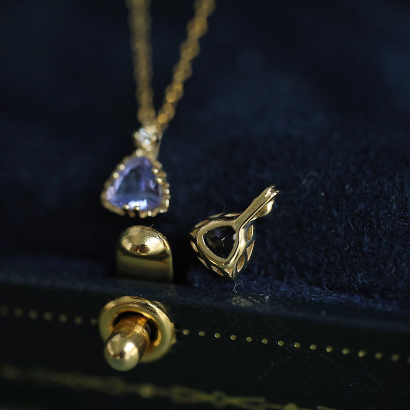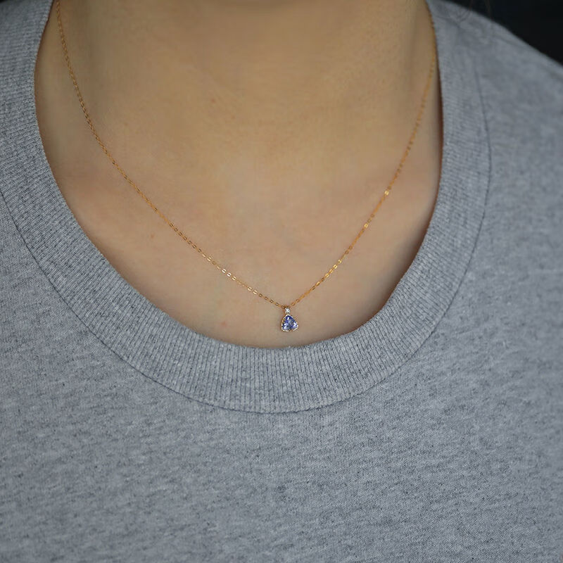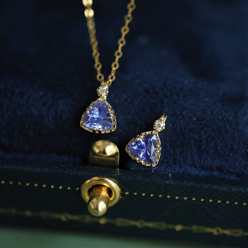 Micro-Given Tanzanite 18K Gold Triangular Pendant Gold Necklace Women's Diamond Inlaid Light Luxury Jewelry Japanese Simple Earrings
