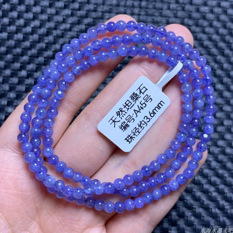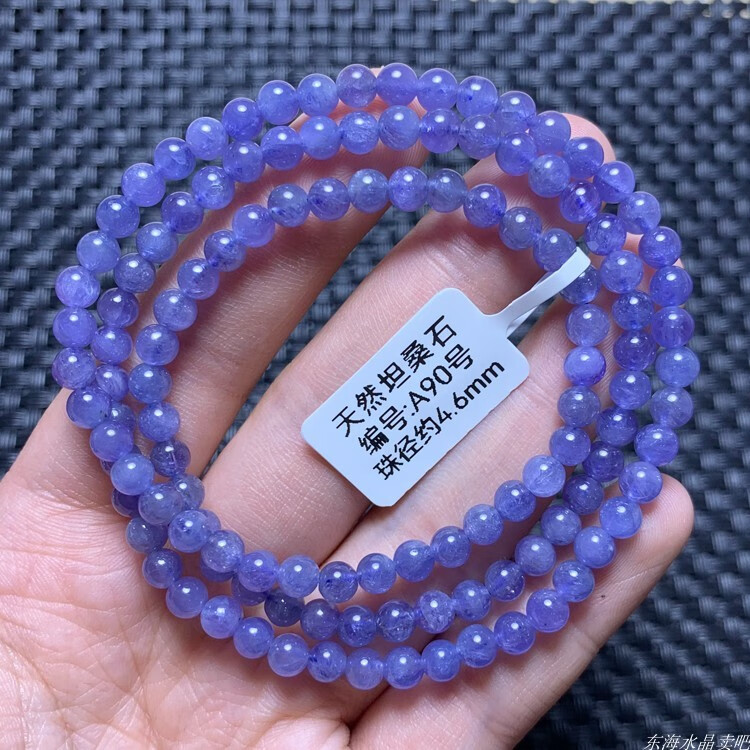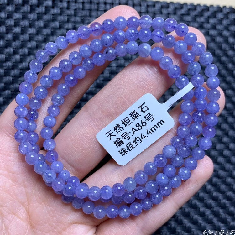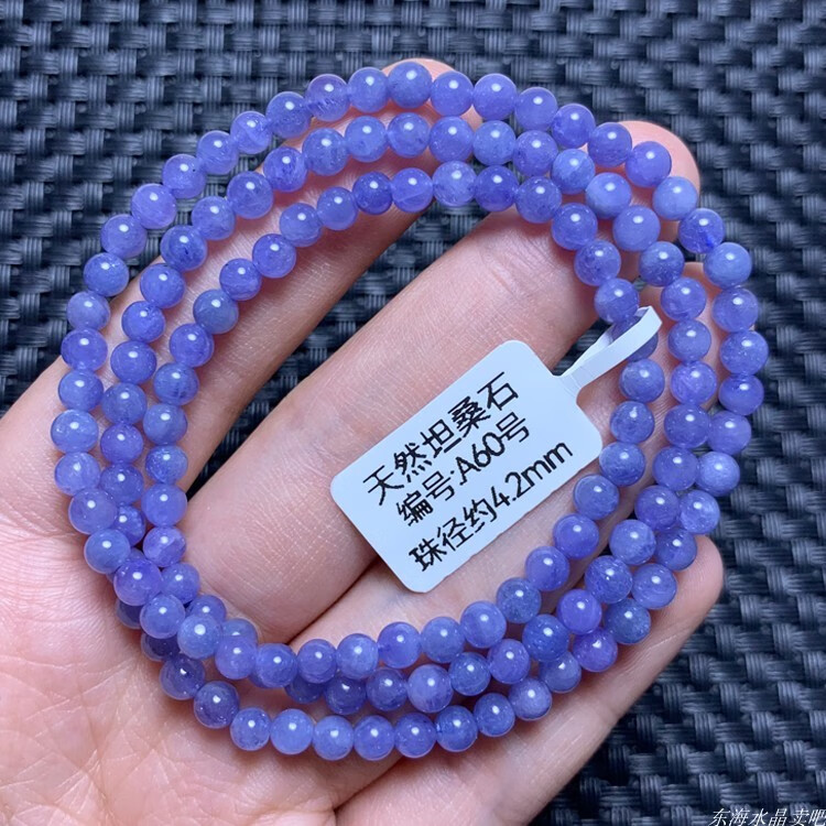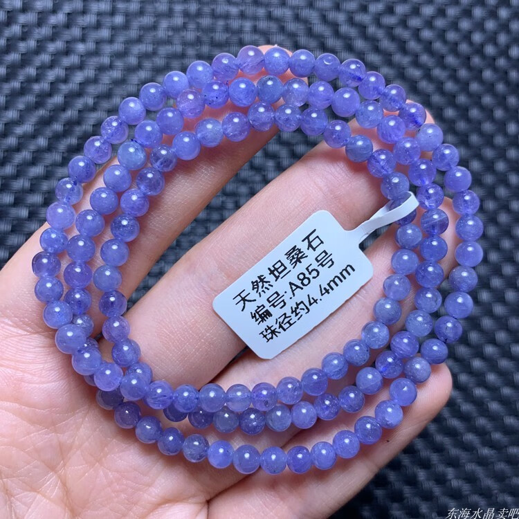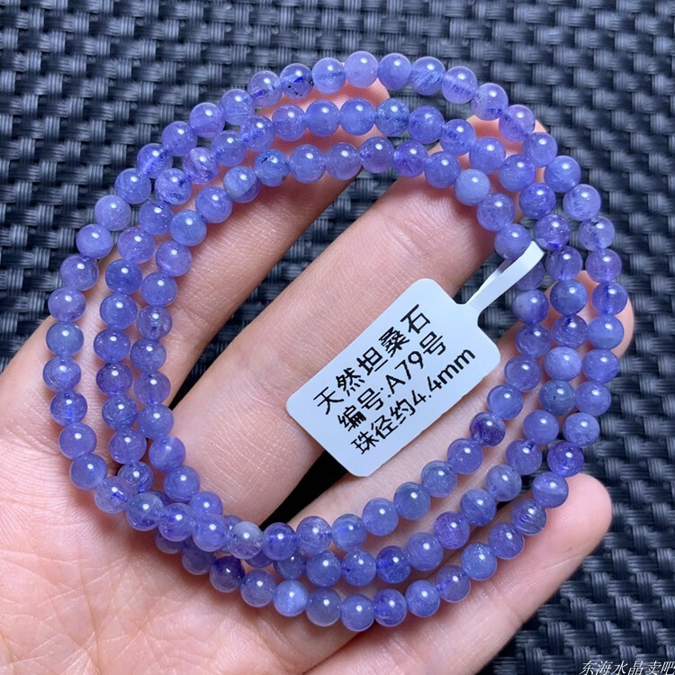 Micro-Given Tanzanite Bracelet Three Circles of Buddha Beads Bracelet Heart of the Ocean Purple Blue Water Tanzanian Treasure Jewelry for Women (A61) Approximately 4.4mm