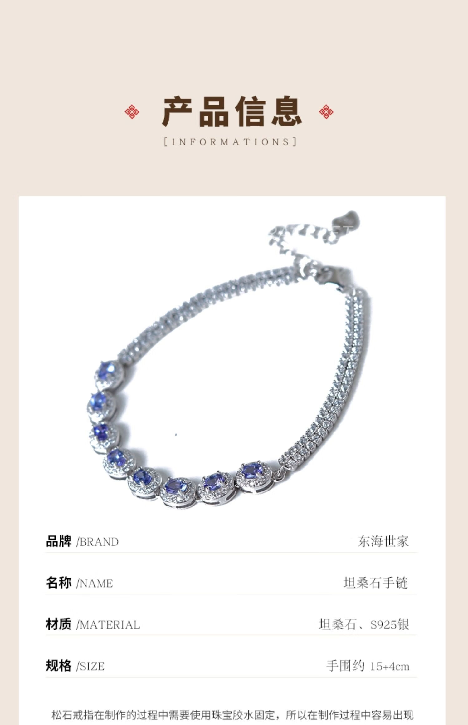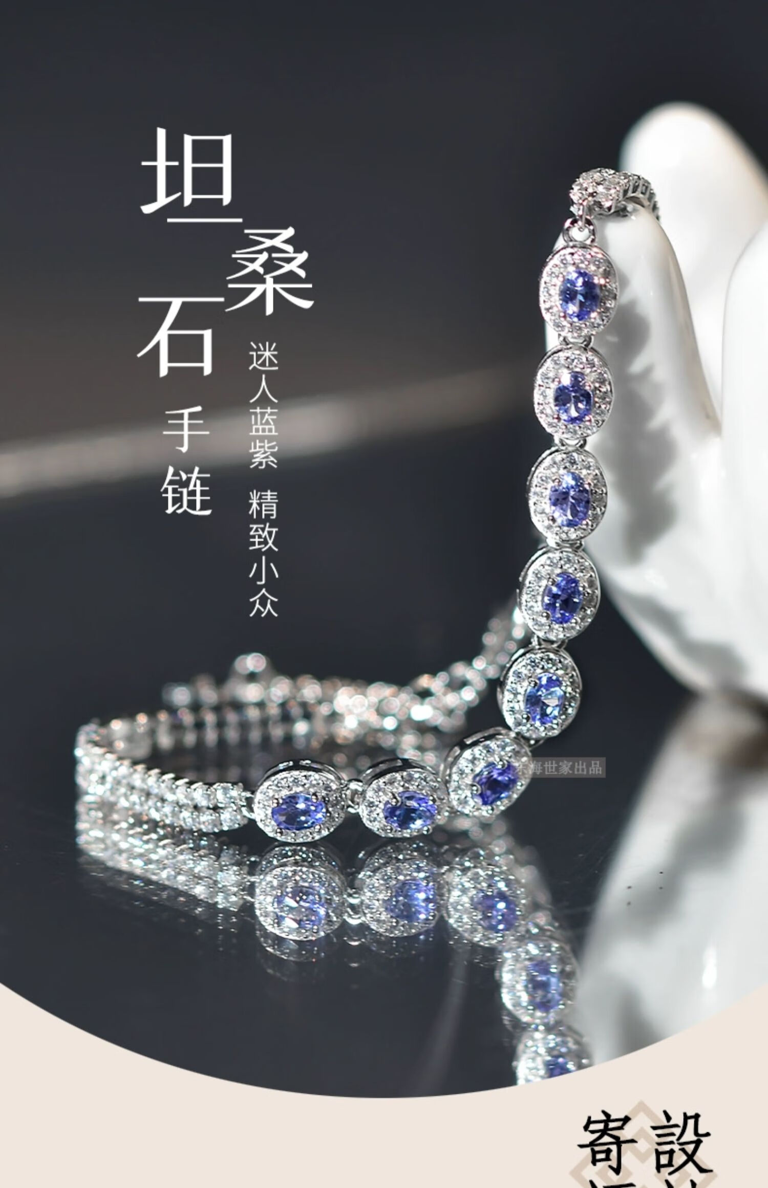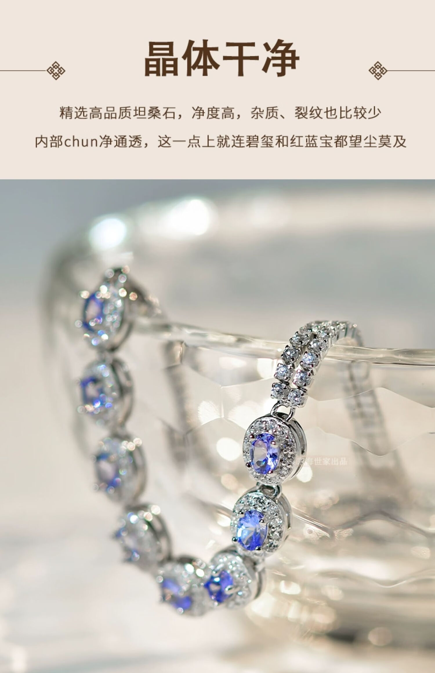 Slightly gifted tanzanite bracelet for women s925 silver chain light luxury niche design high-end blue gemstone inlaid bracelet 01#s925 silver tanzanite inlaid bracelet
