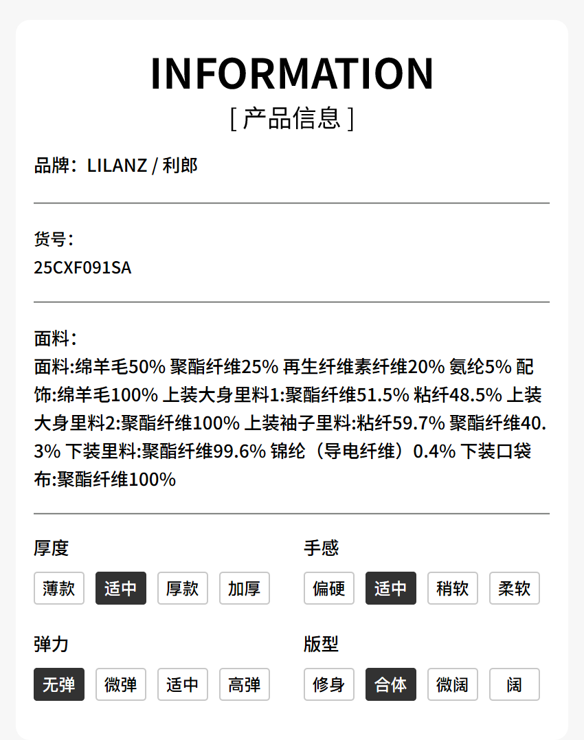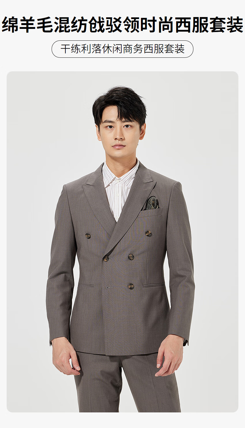 Lilang sheep wool suit suit men's double breasted men's suit groom wedding dress same style in shopping mall 25 spring coffee color (25CXF091SA) 165A (bottoms 165/74A)