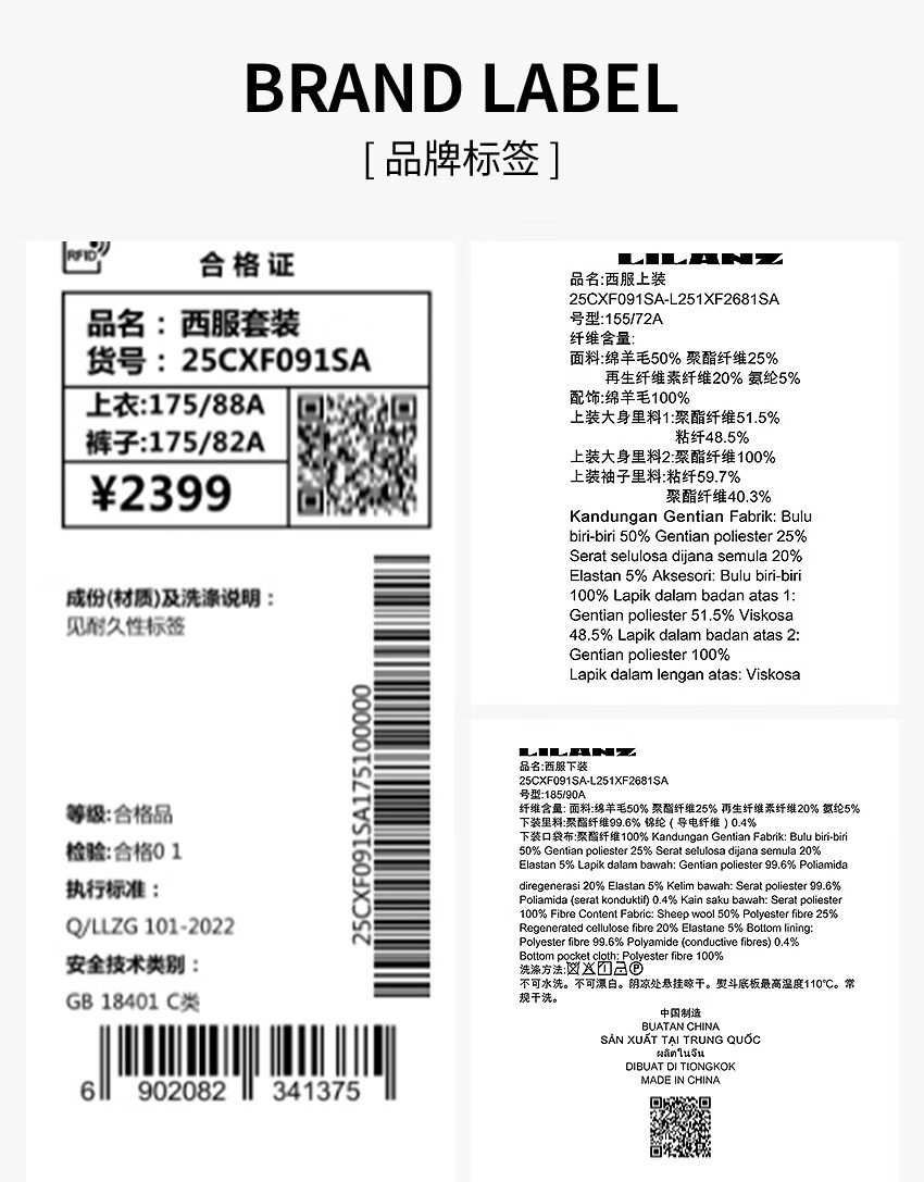 China (cm) 165 / 88-90 170 / 96-98 175 / 108-110 180 / 118-122 185 / 126-130