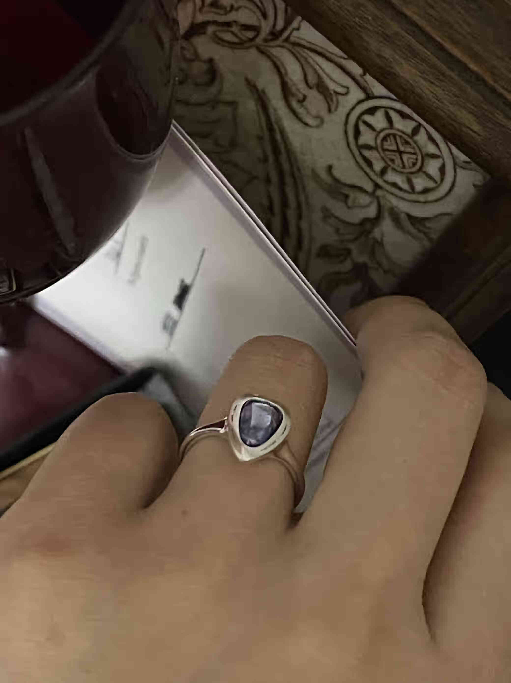 Love Tanzanite Color Full Body 925 Silver Matte Designer Palace Retro Silver Ring in Weizi Illustration Spot Port Code 15 Full Body 925 Silver