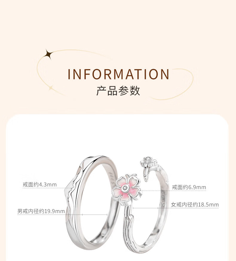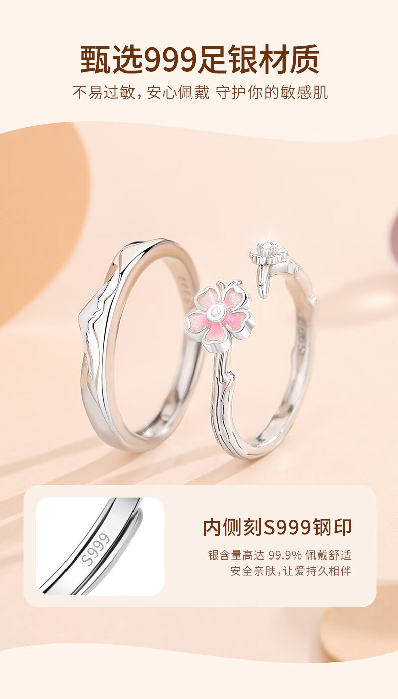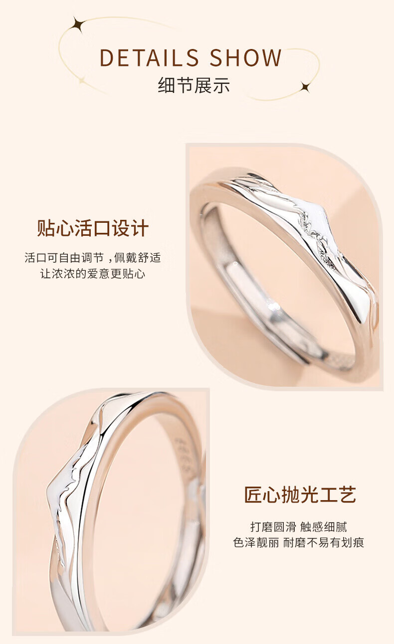Grace Girl999 Pure Silver Couple Ring Diamond Mobius Sterling Silver Female Ring Male Opening Adjustable Gift for Girlfriend Pure Silver Mobius Engraving/SF Express