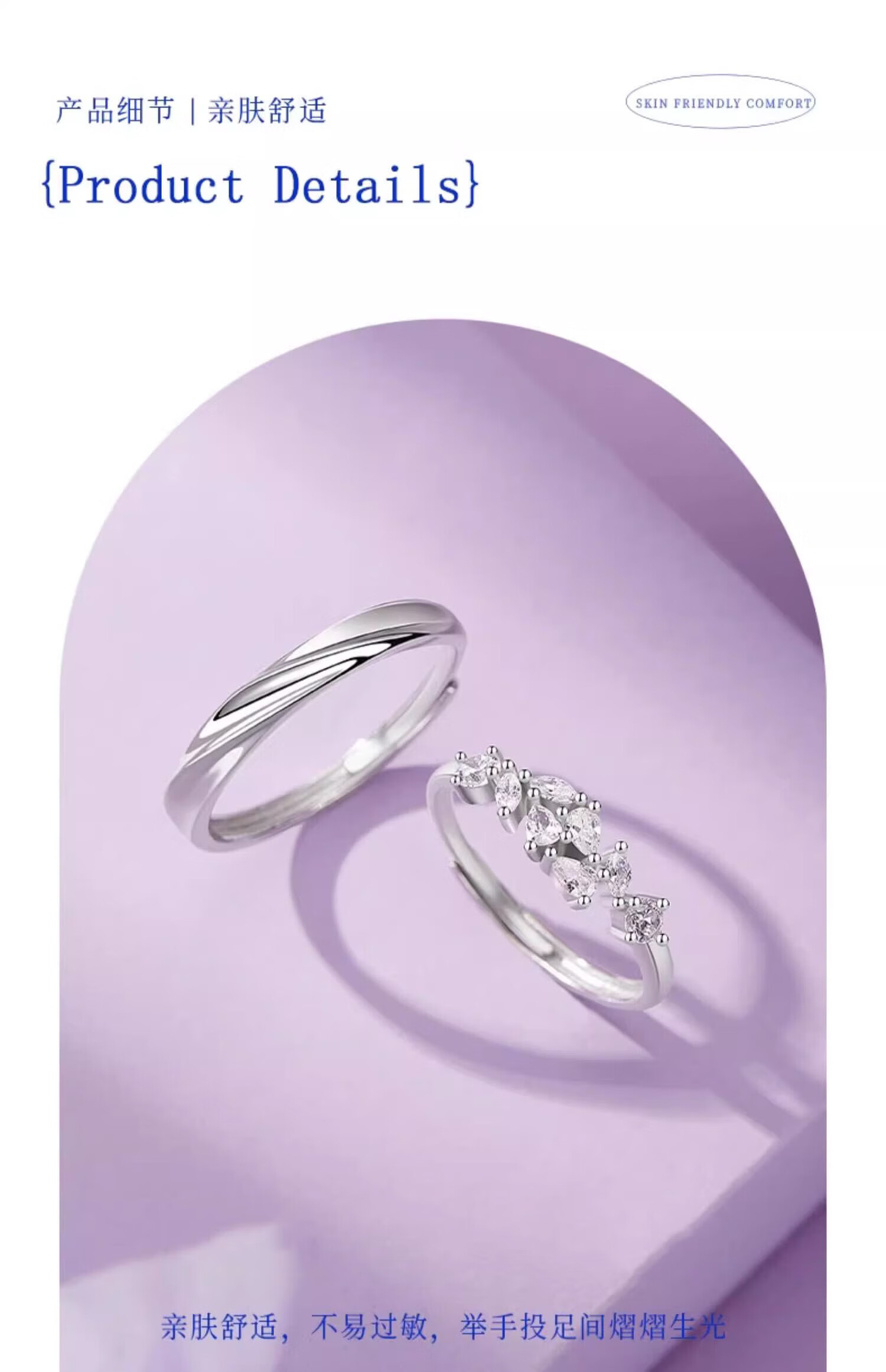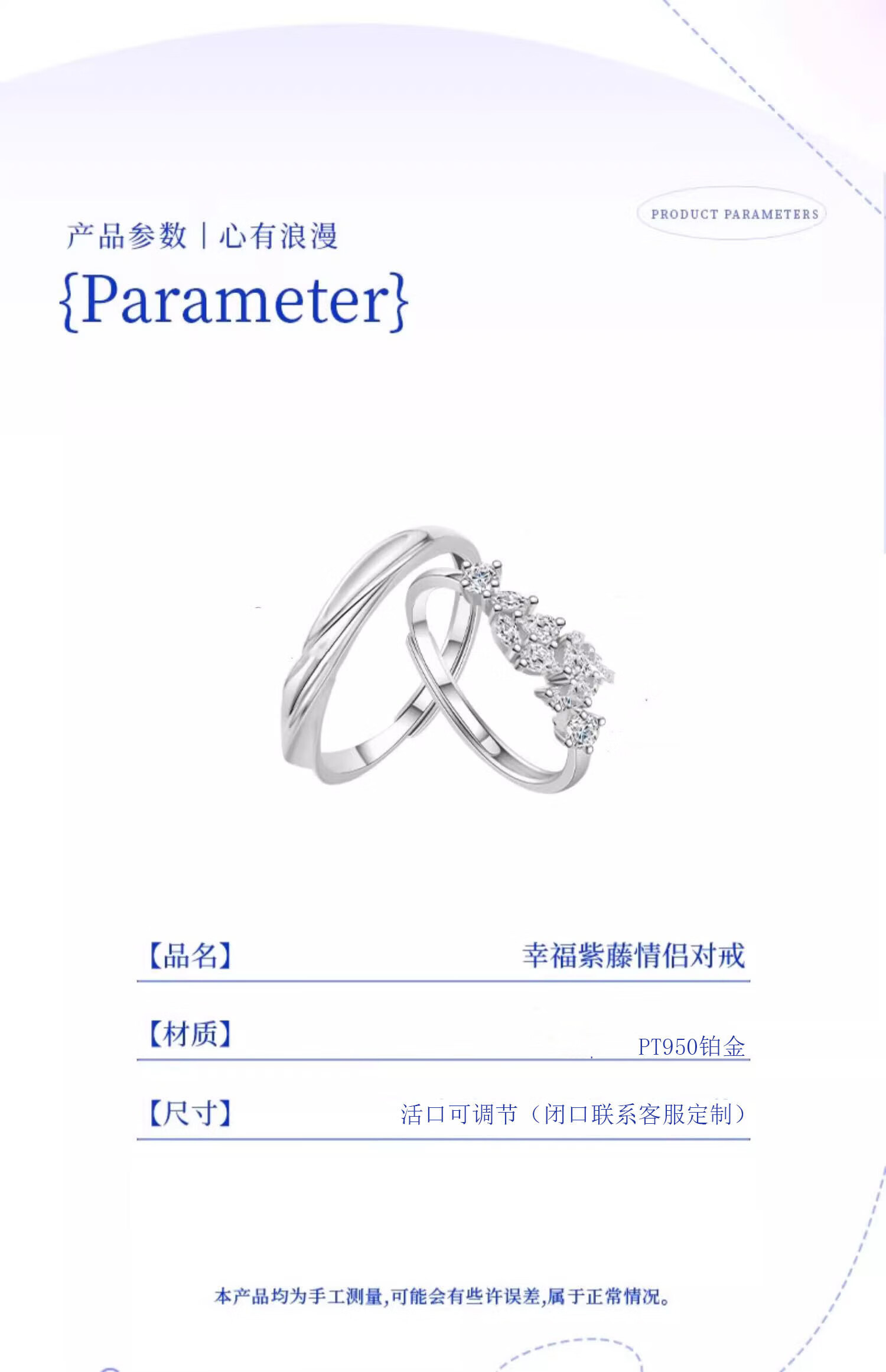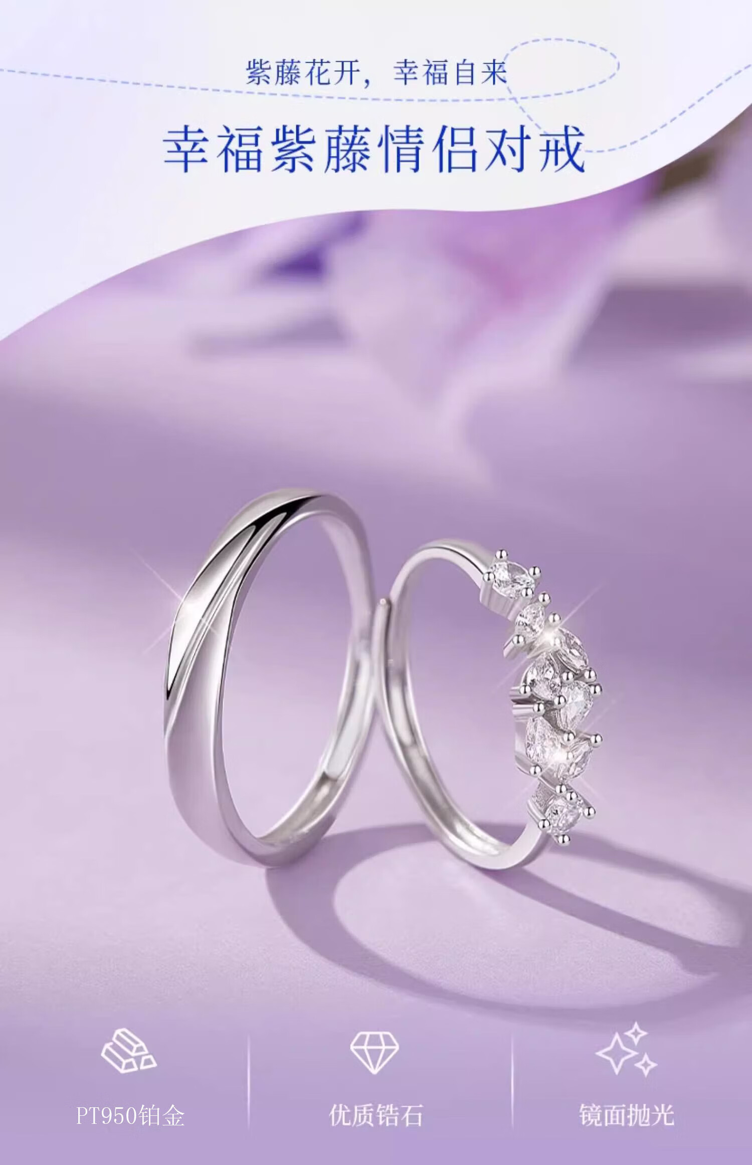 Grace GirlPT950 Platinum Pairing Ring Couple Design Ring Birthday Practical Heartfelt Gift for Girlfriend and Wife Platinum Happy Wisteria Couple Ring