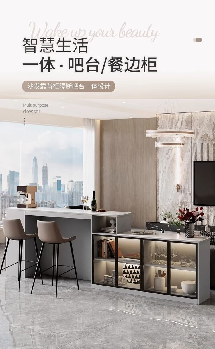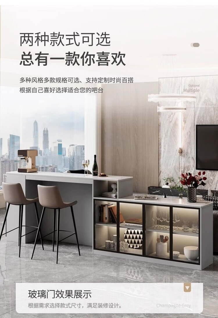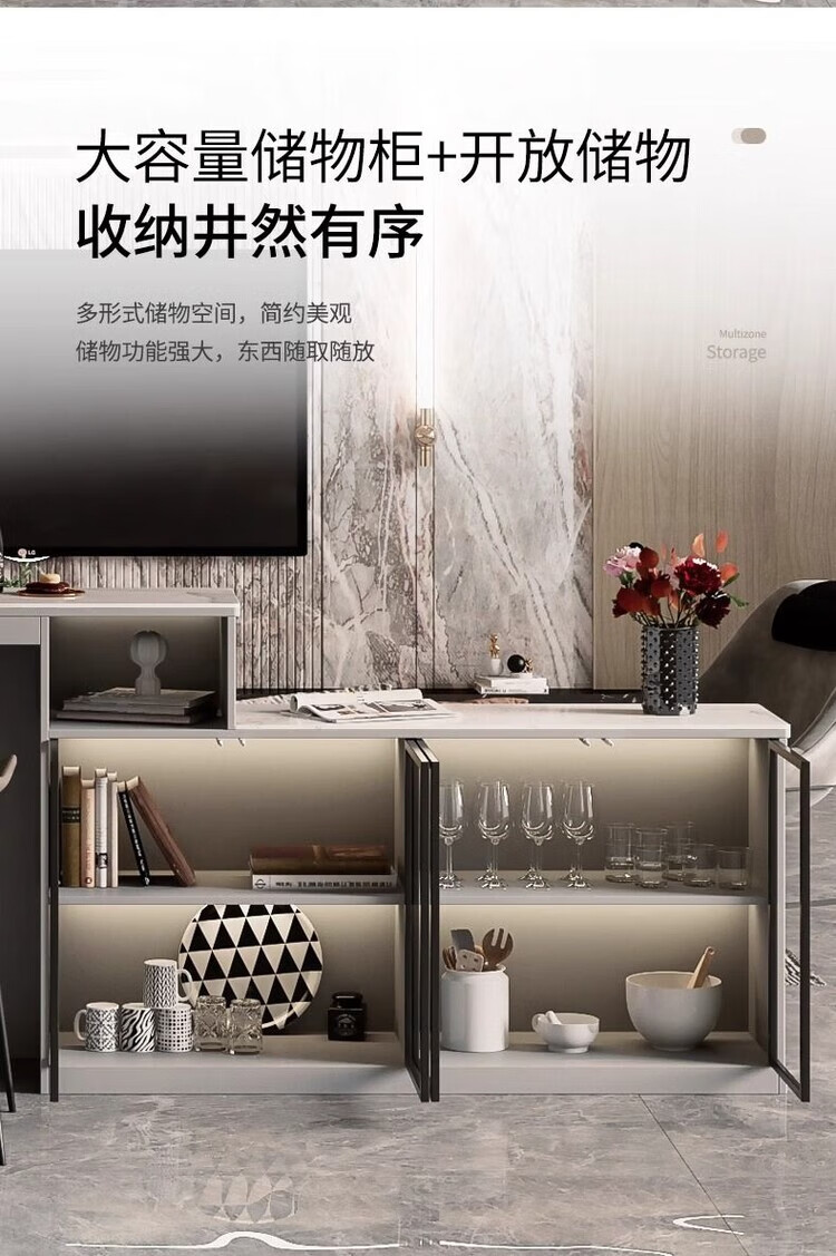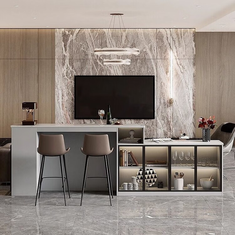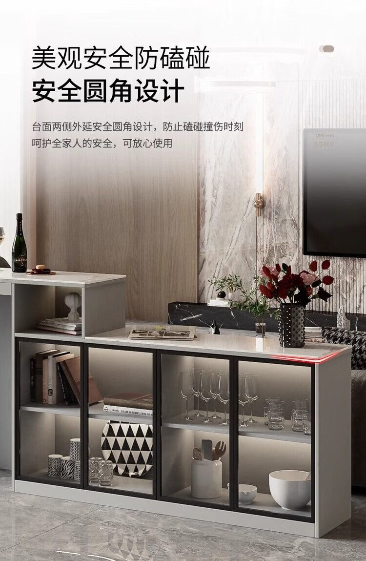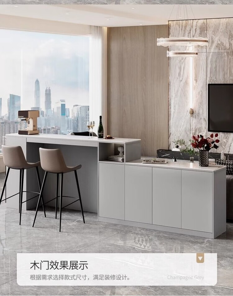 Supai slate bar table sofa back cabinet home living room small apartment island dining table partition sideboard integrated table elegant gray (glass door) - 2 meters long