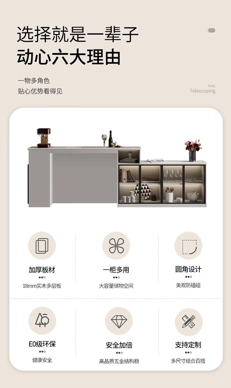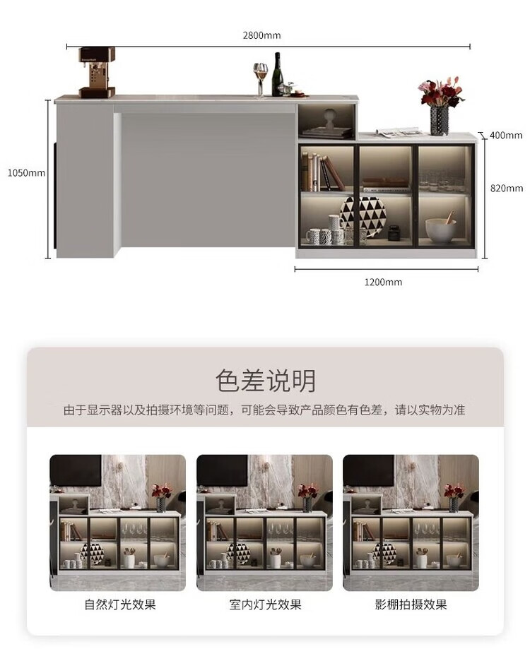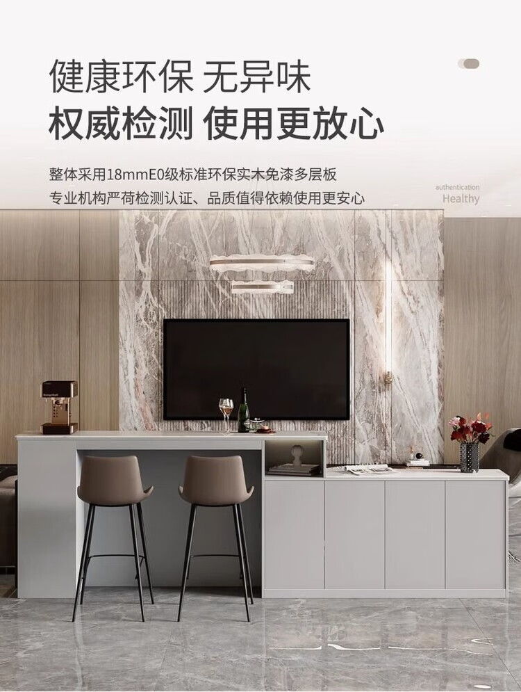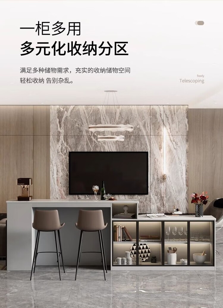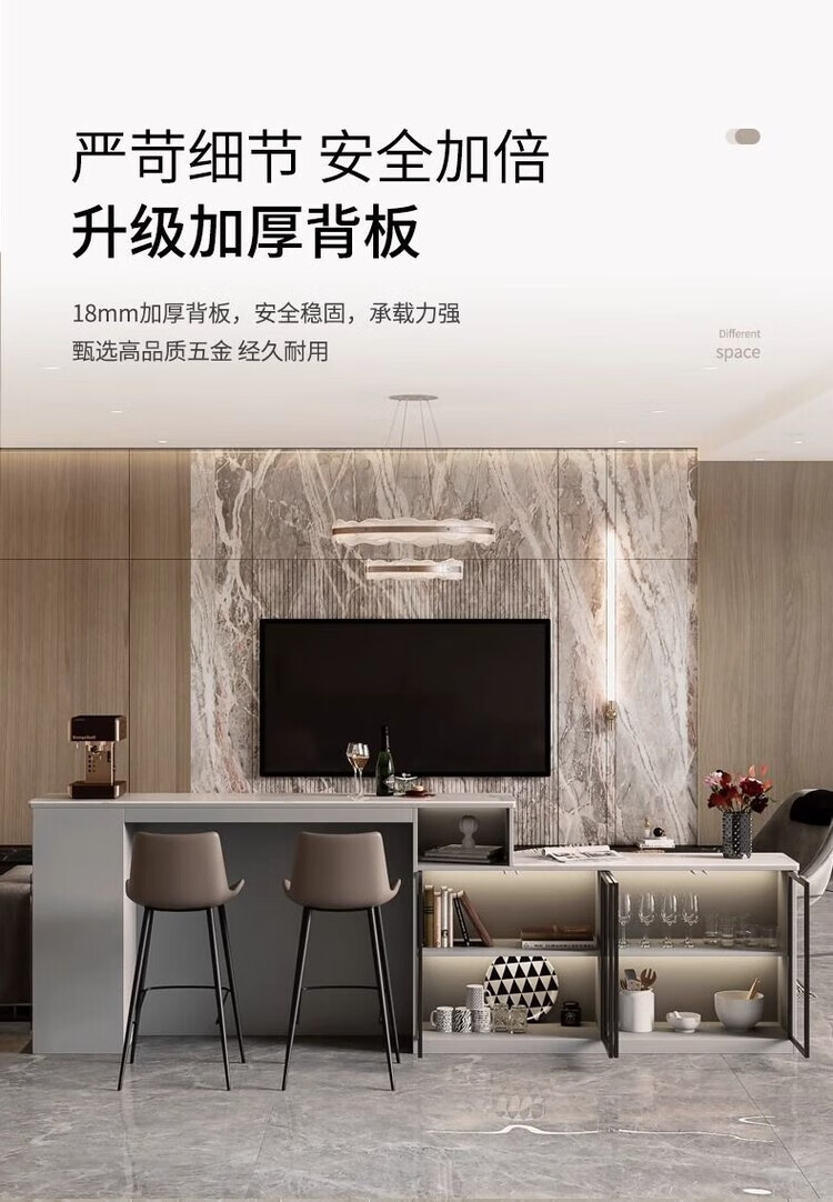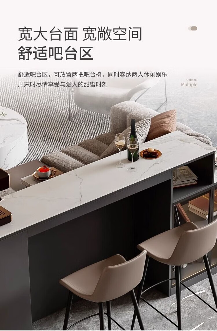 Supai slate bar table sofa back cabinet home living room small apartment island dining table partition sideboard integrated table elegant gray (glass door) - 2 meters long