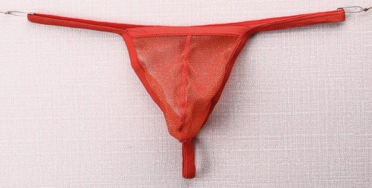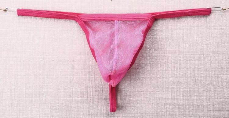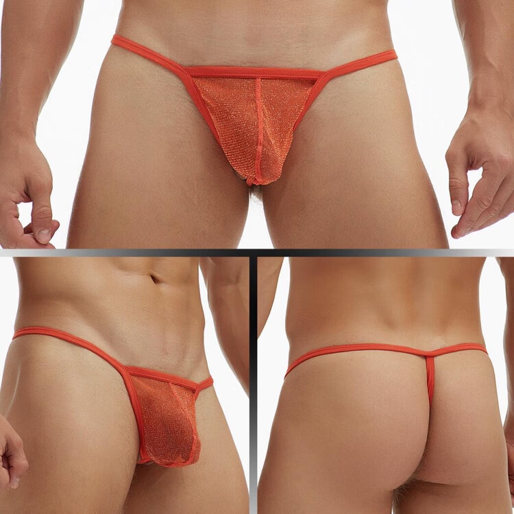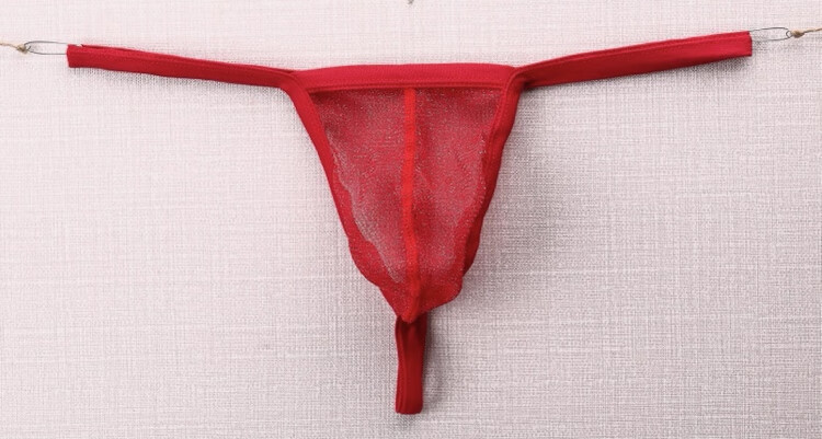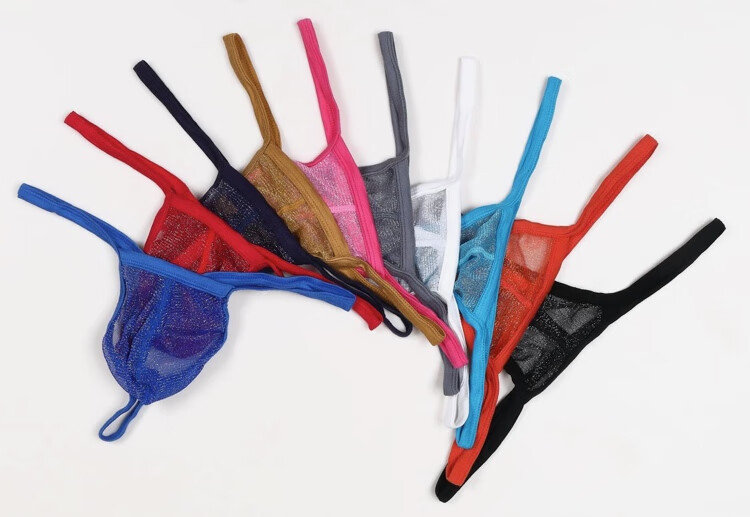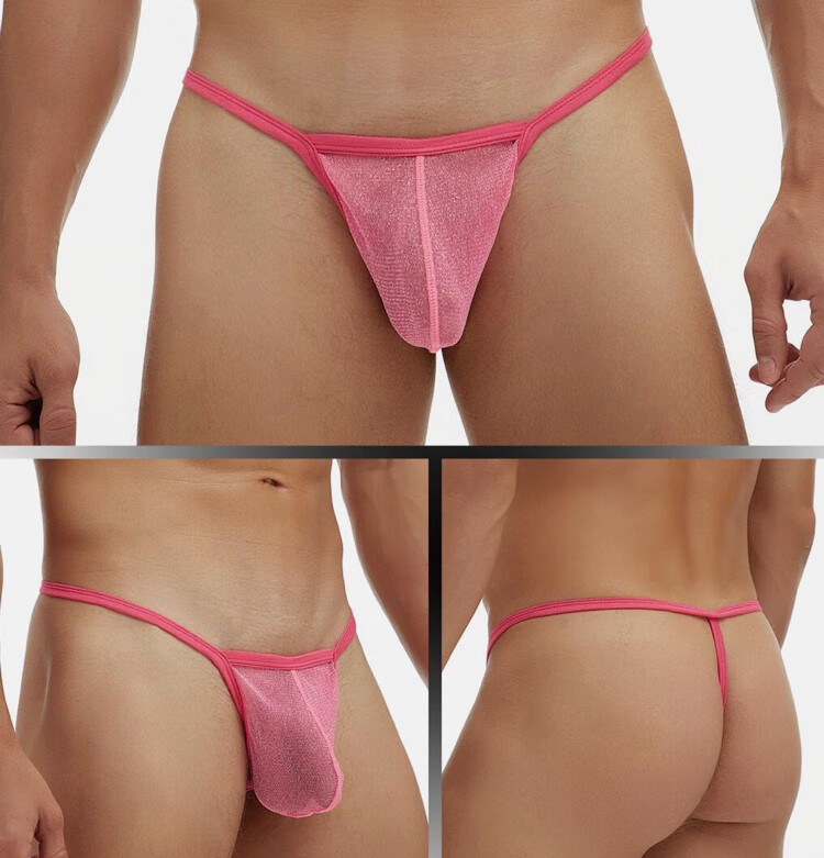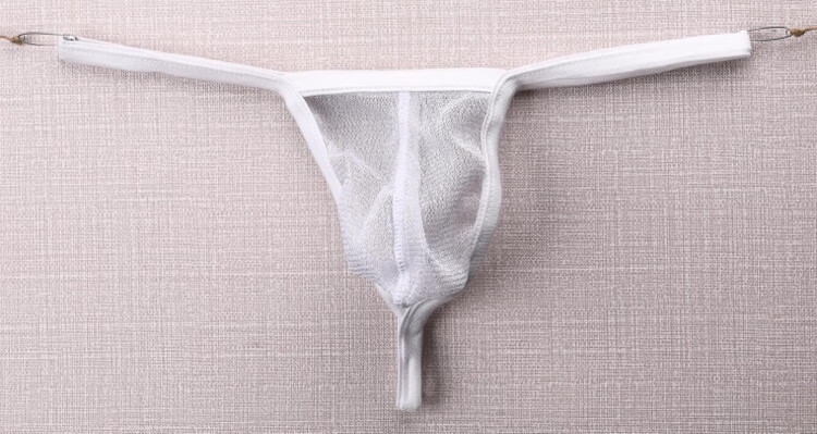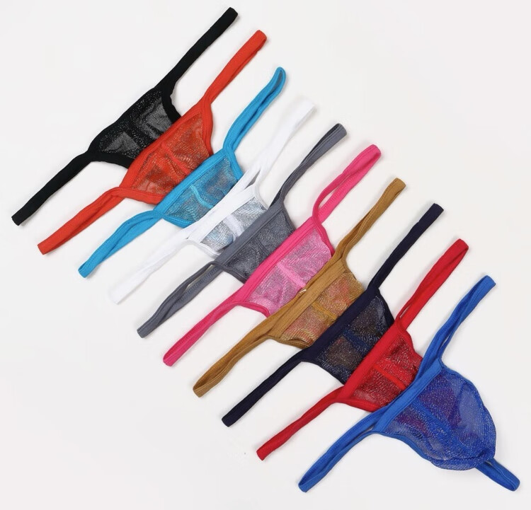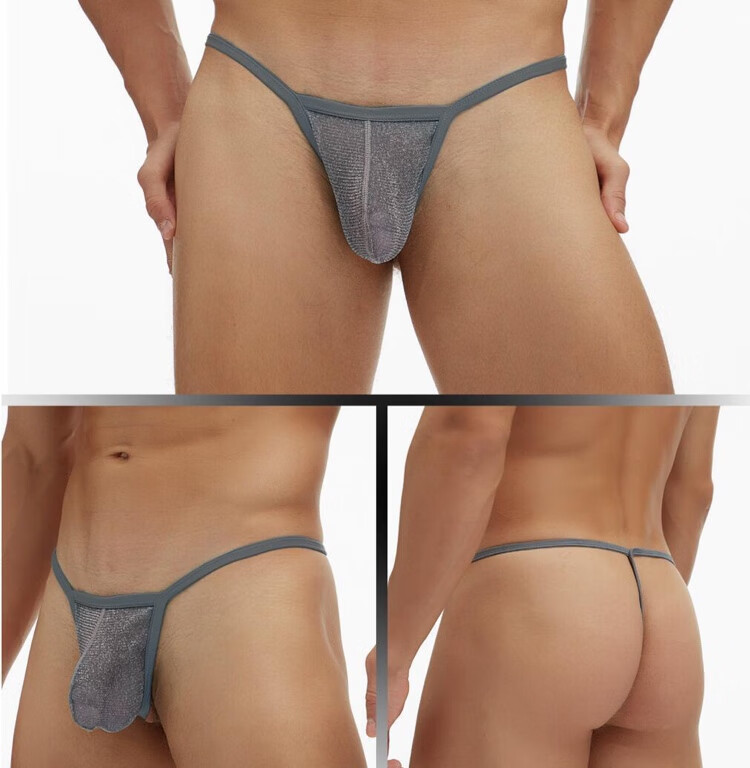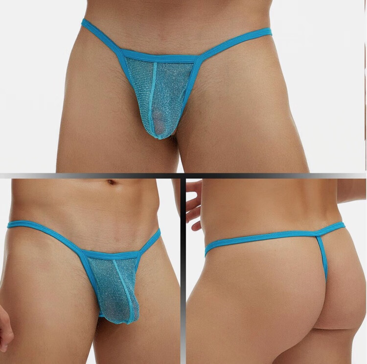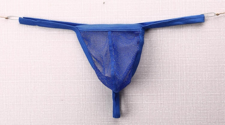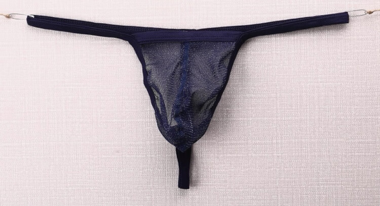 European and American GAY men's underwear European and American transparent fine mesh pouch low-waisted single T-pants large size ultra-thin T-pants navy blue 2XL