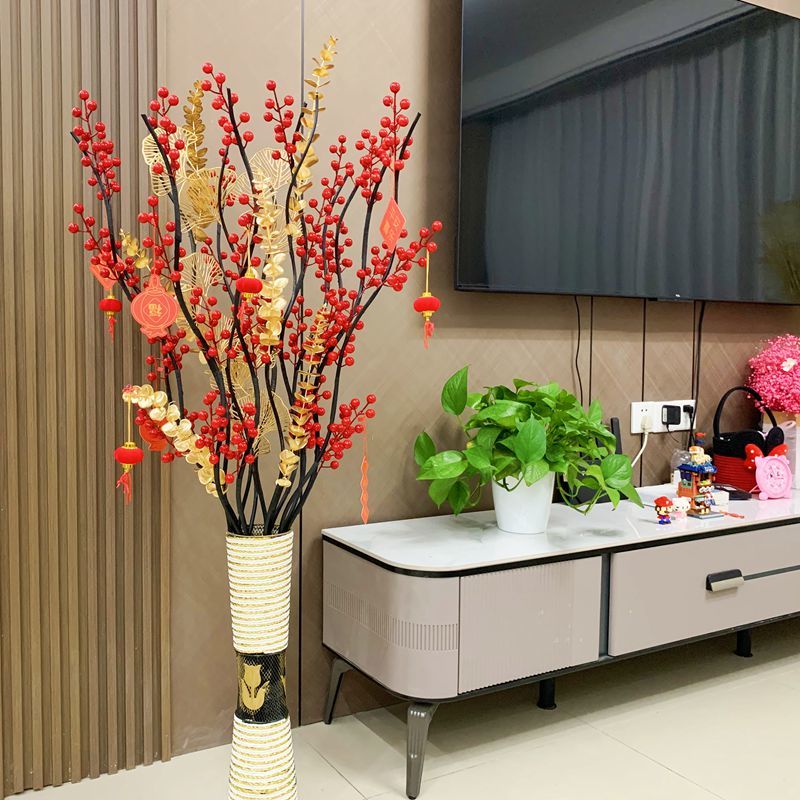 MPPMCK fortune red fruit New Year's Eve living room artificial flower floor decoration fake flower ornaments wedding decoration housewarming flower arrangement with bottle 10 fruits 2 barley
