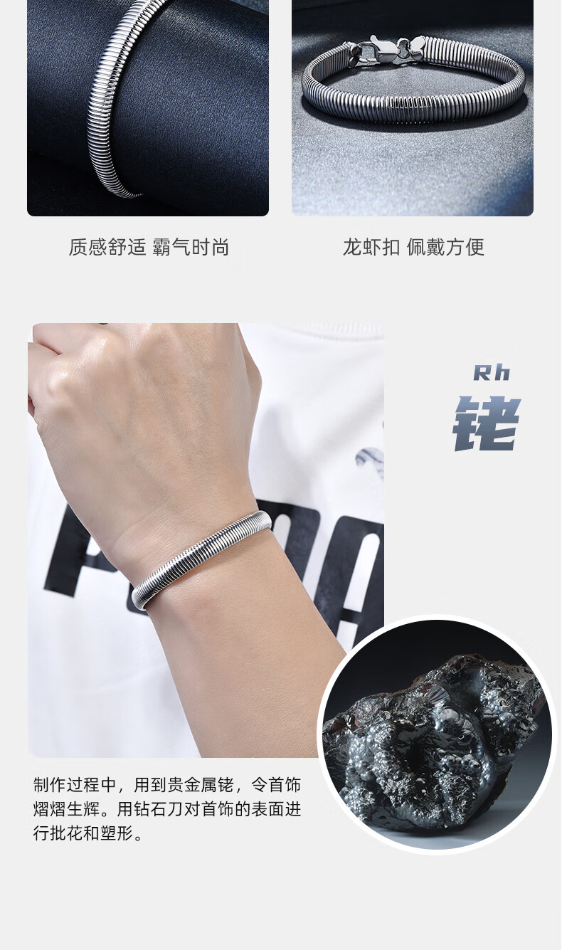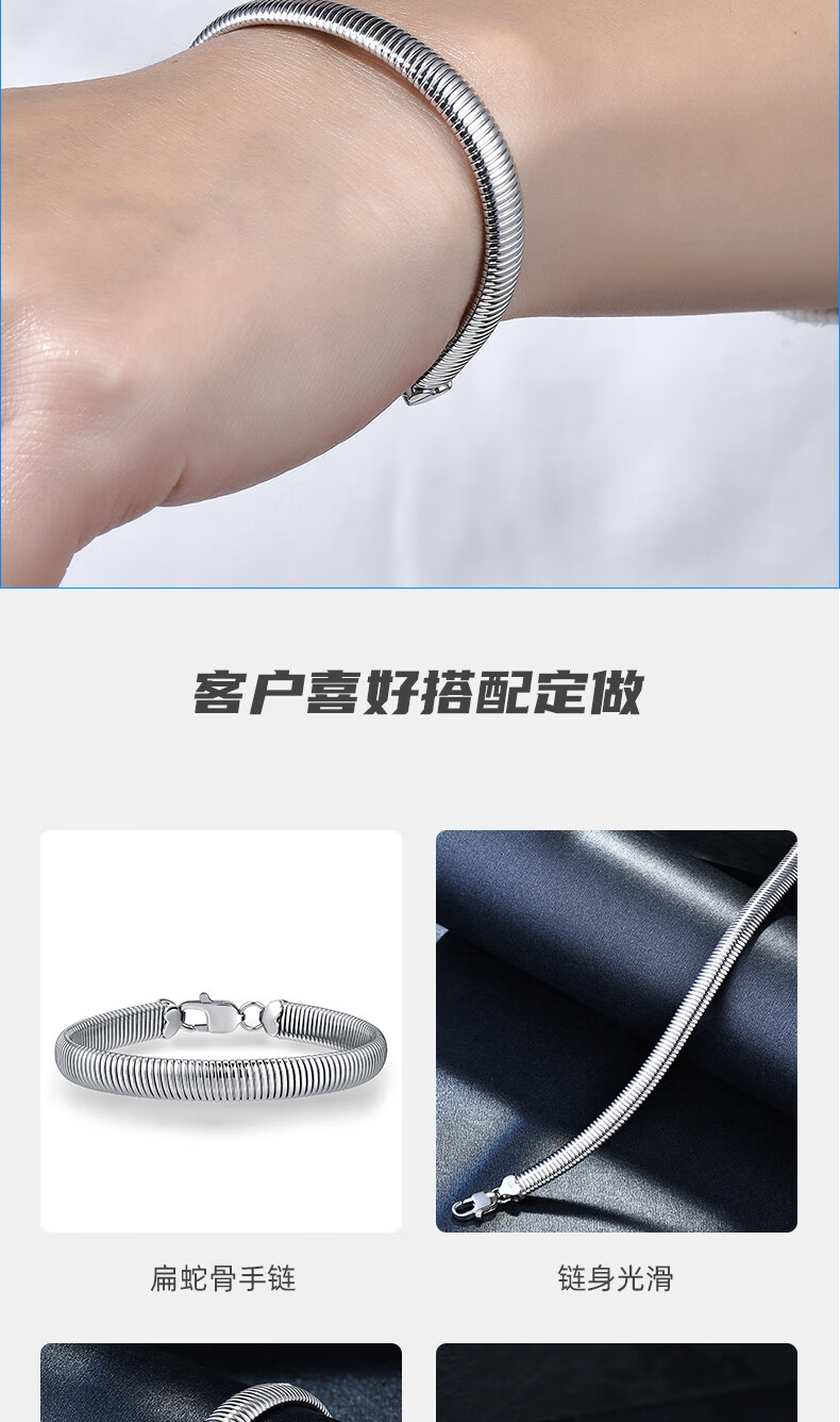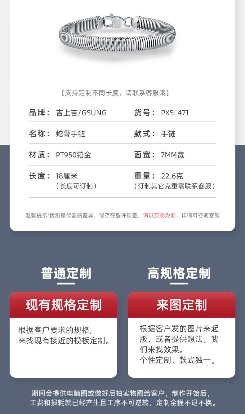 GsunG platinum bracelet PT950 men's pure platinum snake bone chain, personalized retro domineering hollow flat snake chain, can be customized and supports customization of different lengths and weights.