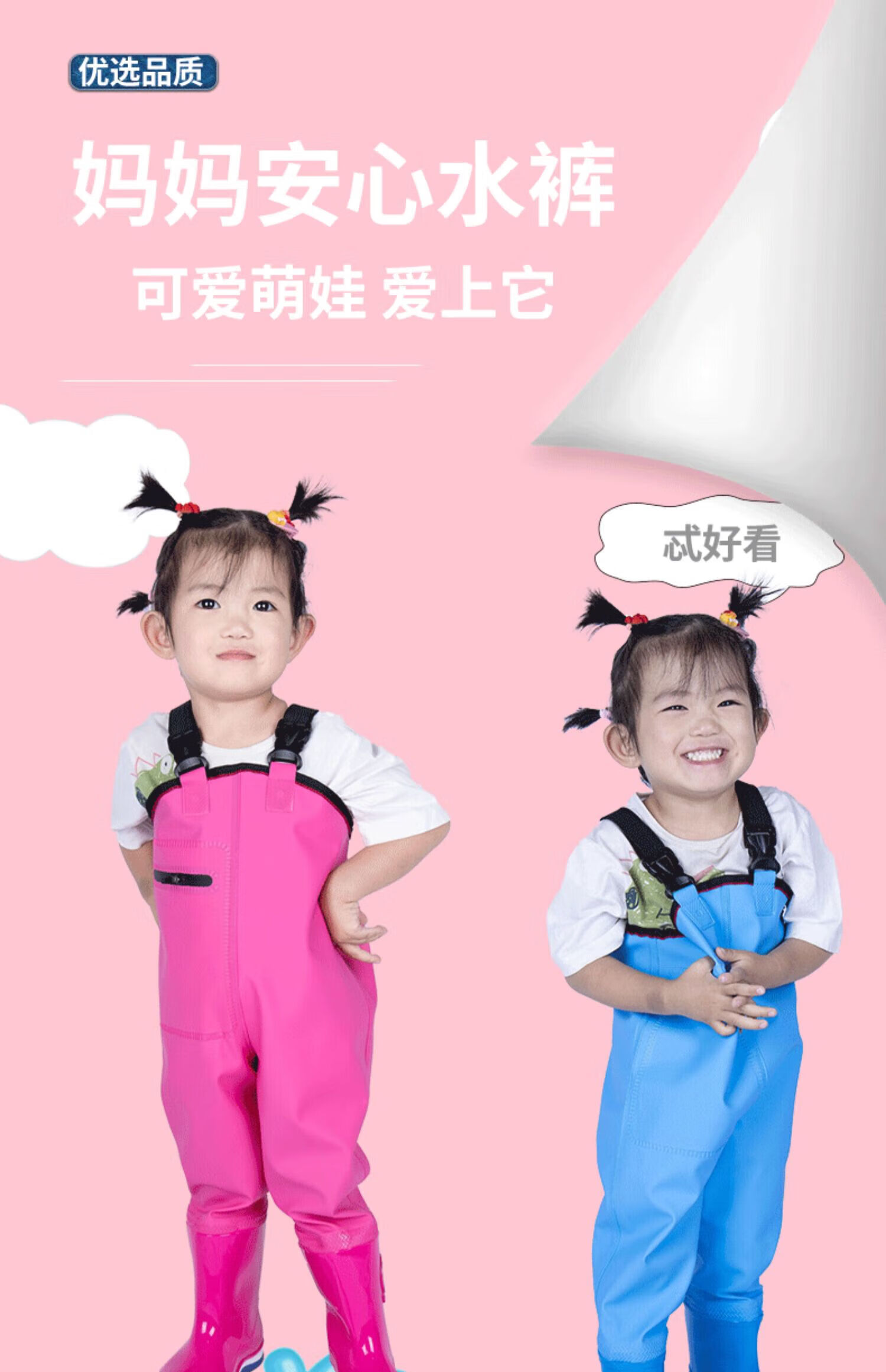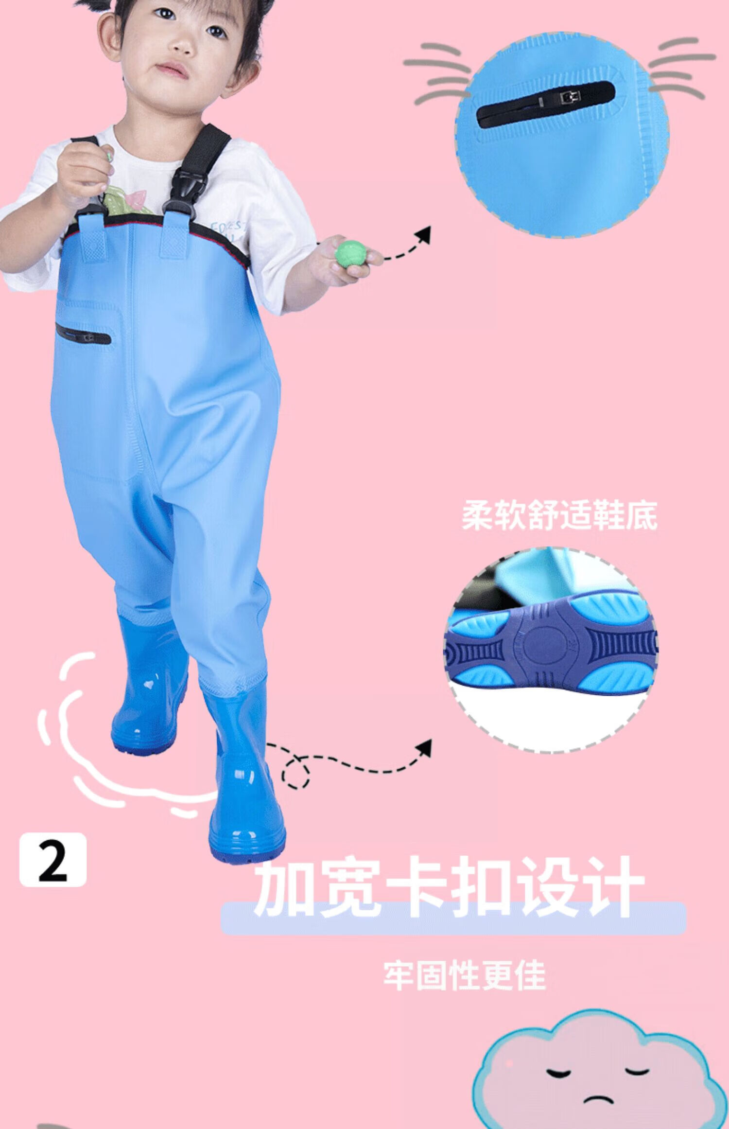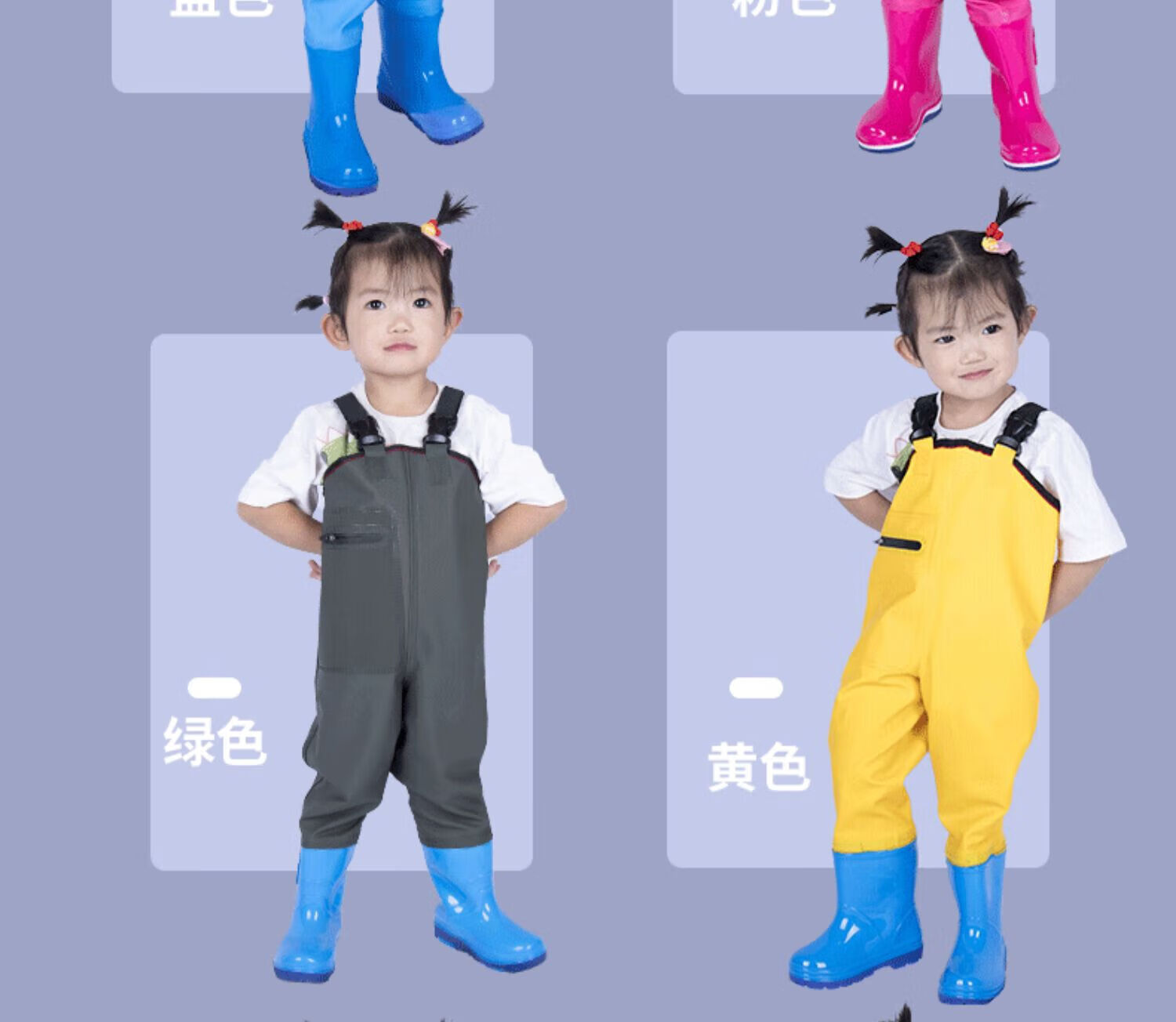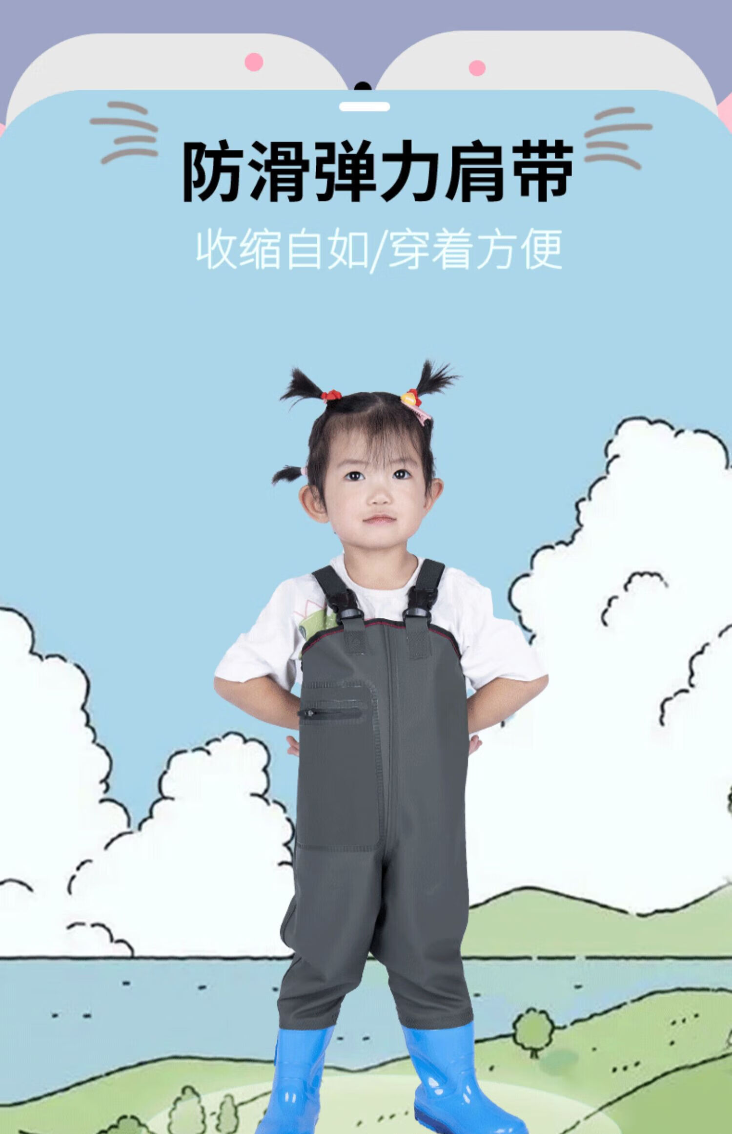 Ayub children's waders, play in the water, one-piece clothes, rain boots, kindergarten, water, sea, children, men and women, fishing beach rain pants, children, dark green overalls 32 (shoe inner length 20cm)