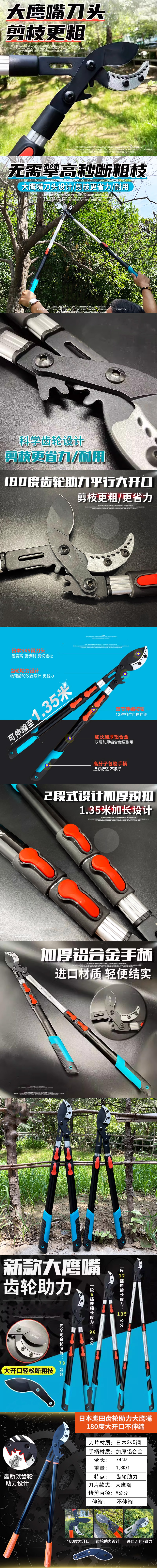 Yunpo Tijeras para ramas gruesas Tijeras telescópicas potentes para ramas altas de árboles frutales de jardín y ramas fuertes y gruesas Tijeras especiales D Tijeras telescópicas de tiburón extra gruesas de cuarta generación 8 cm
