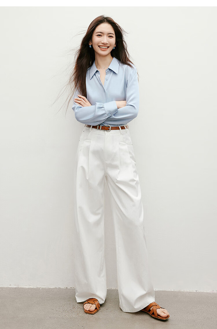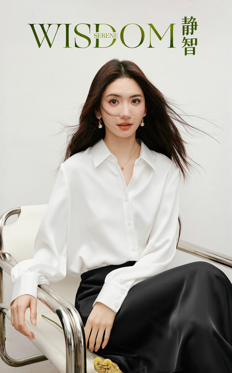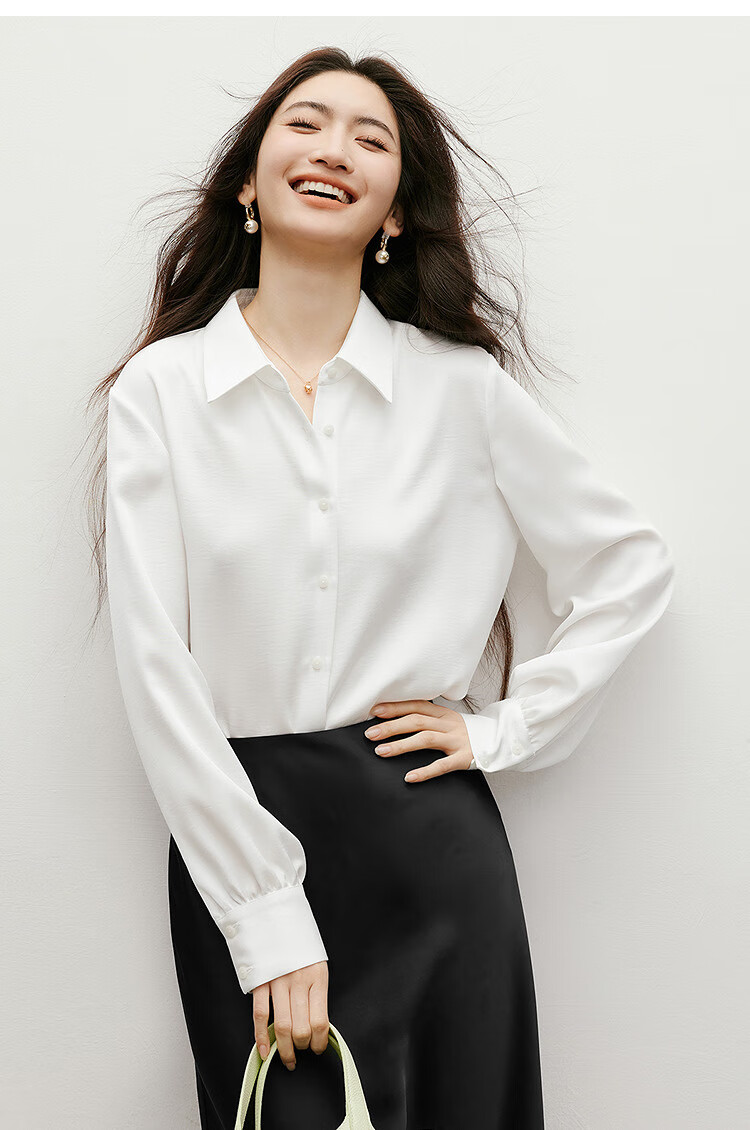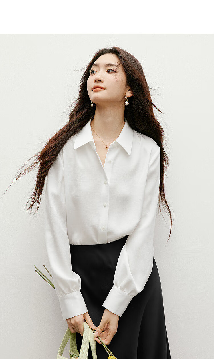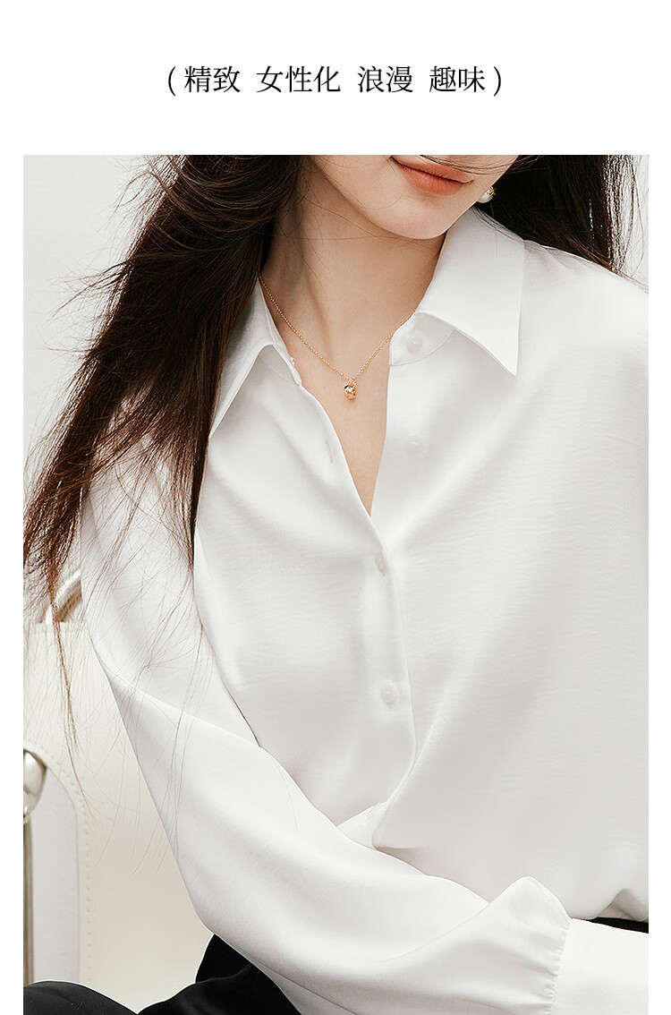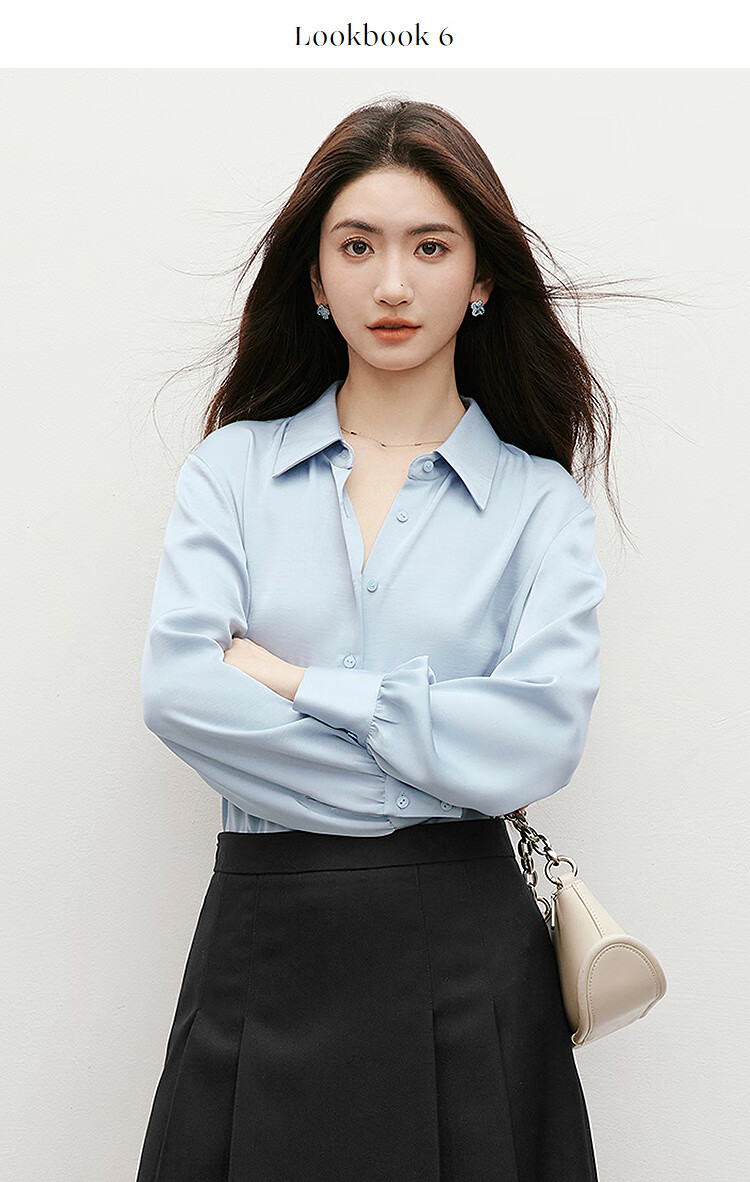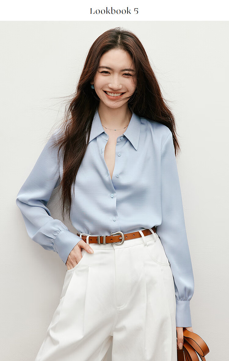 红袖高级感轻奢减龄洋气衬衫春秋季新款女装通勤光泽感H型翻领上衣 灰蓝415 M