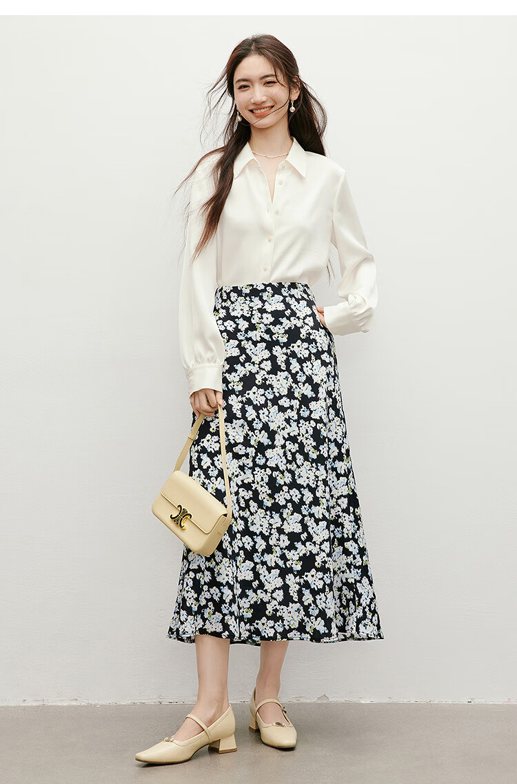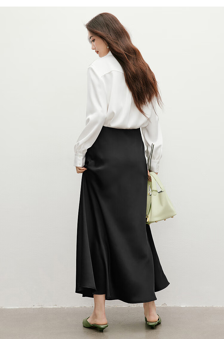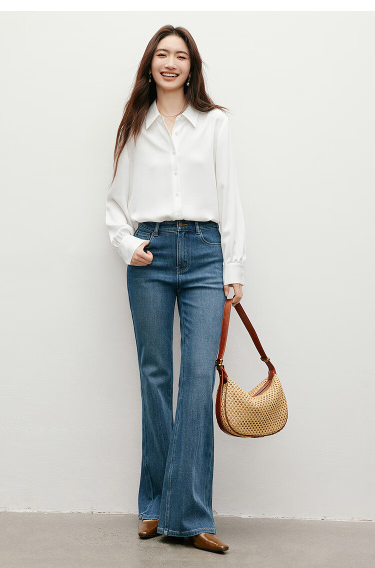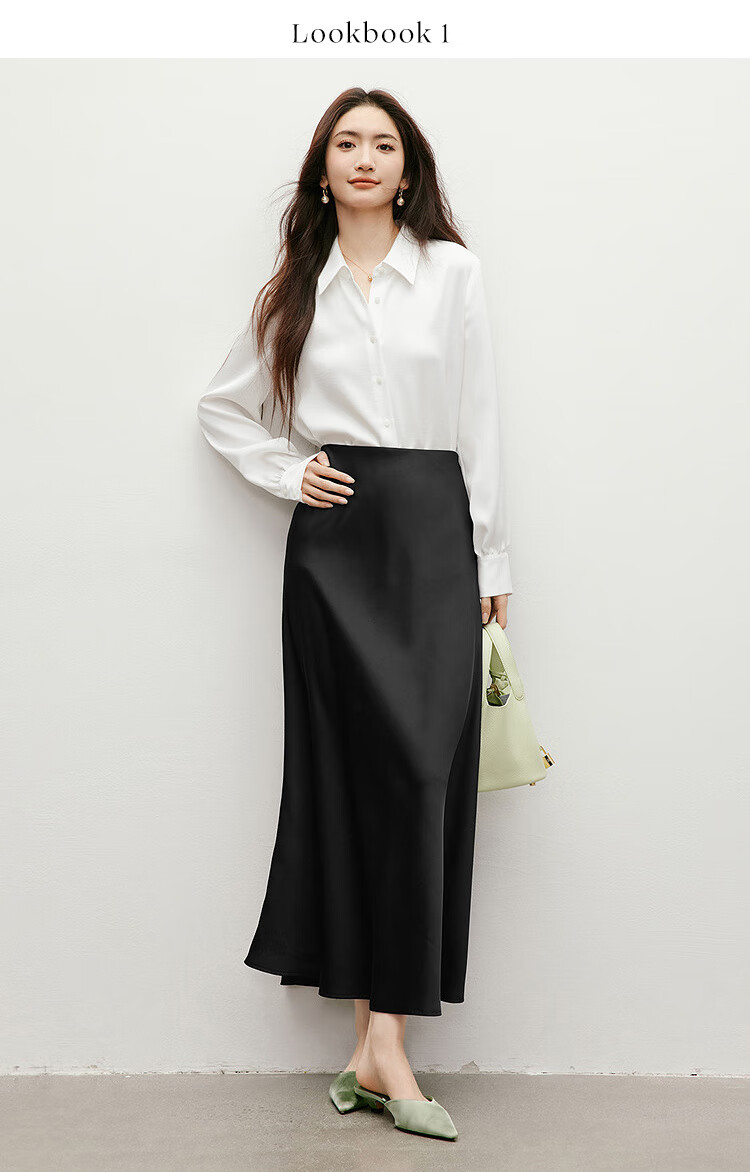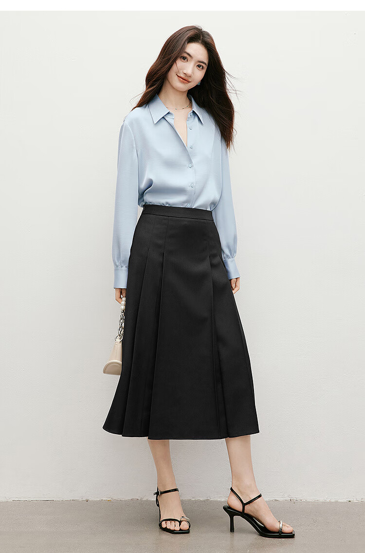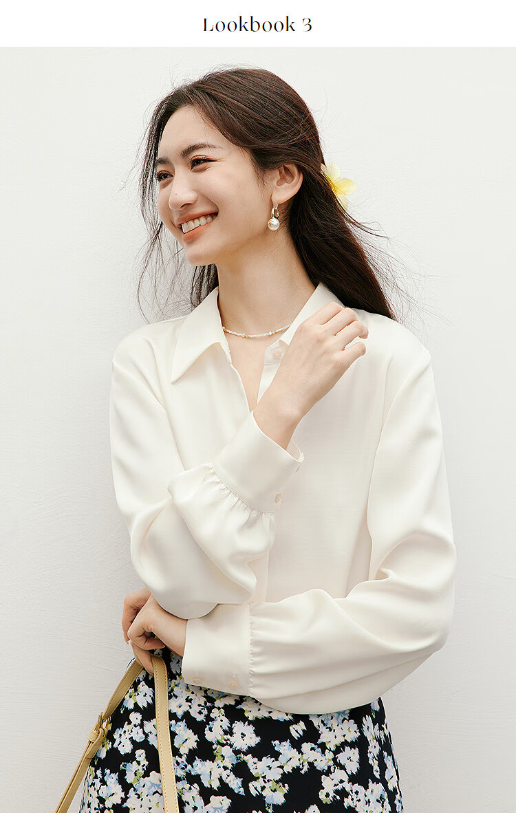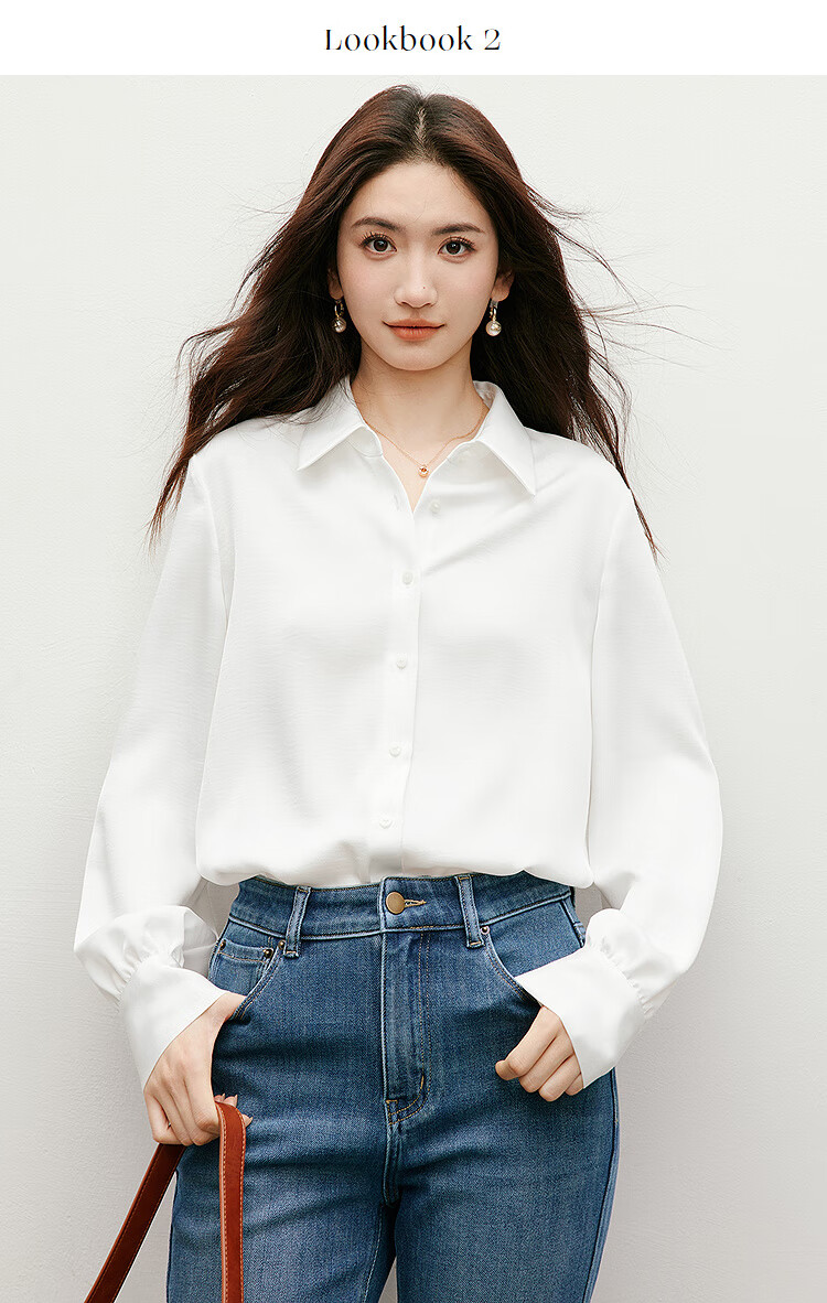 红袖高级感轻奢减龄洋气衬衫春秋季新款女装通勤光泽感H型翻领上衣 灰蓝415 M