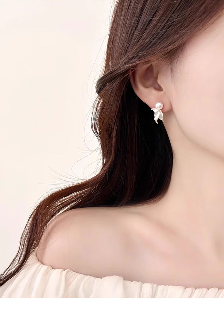 Miao Yijia Pearl Earrings Sterling Silver Earrings for Women 2025 New Silver Earrings Girls Birthday Gifts Temperament High-end Niche Pair of Pearl Fishtail Earrings