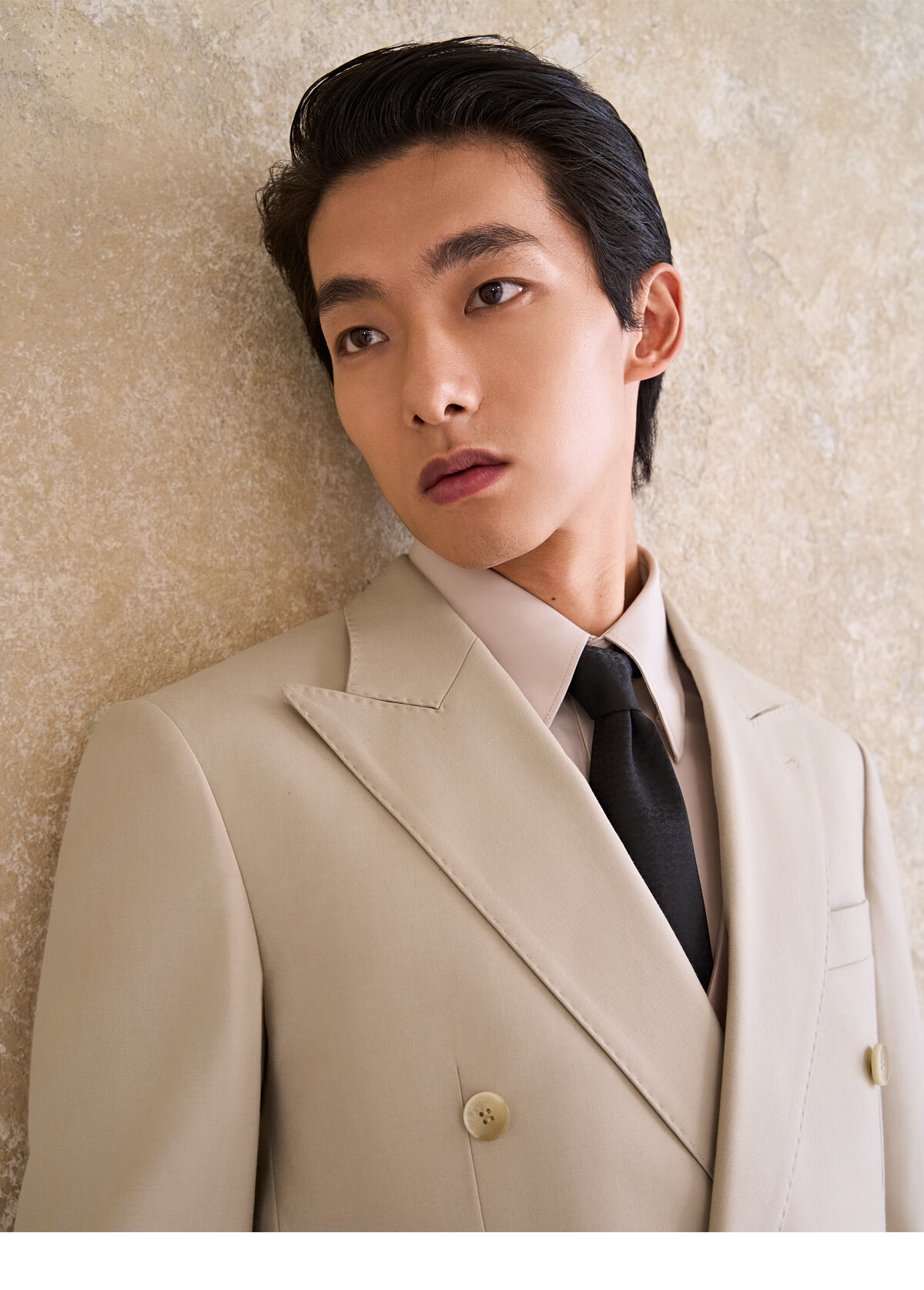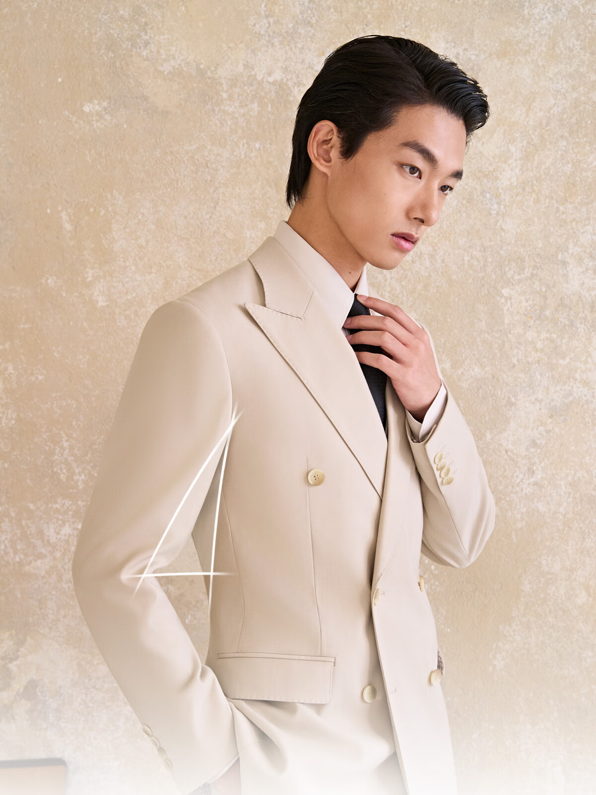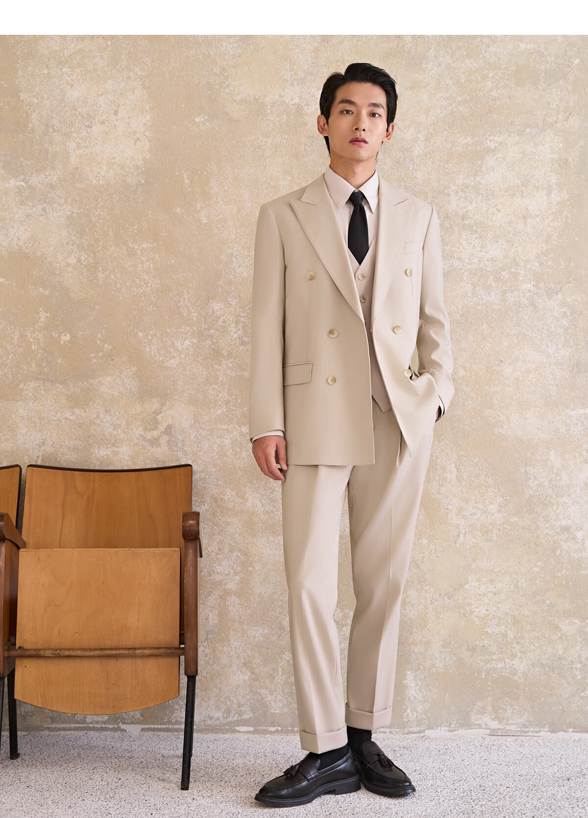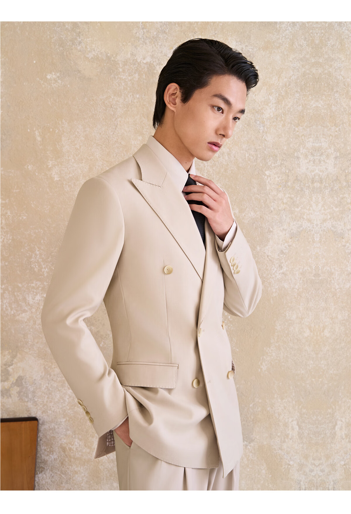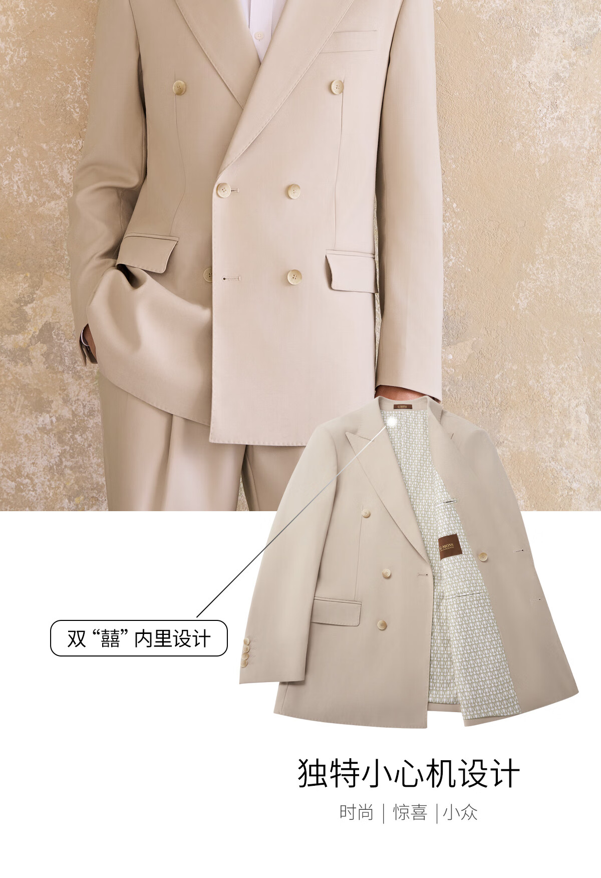Guillomont double-breasted suit men's suit champagne color high-end suit business formal wear spring groom wedding dress suit top + pants champagne color 46