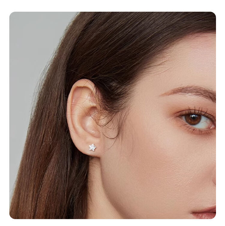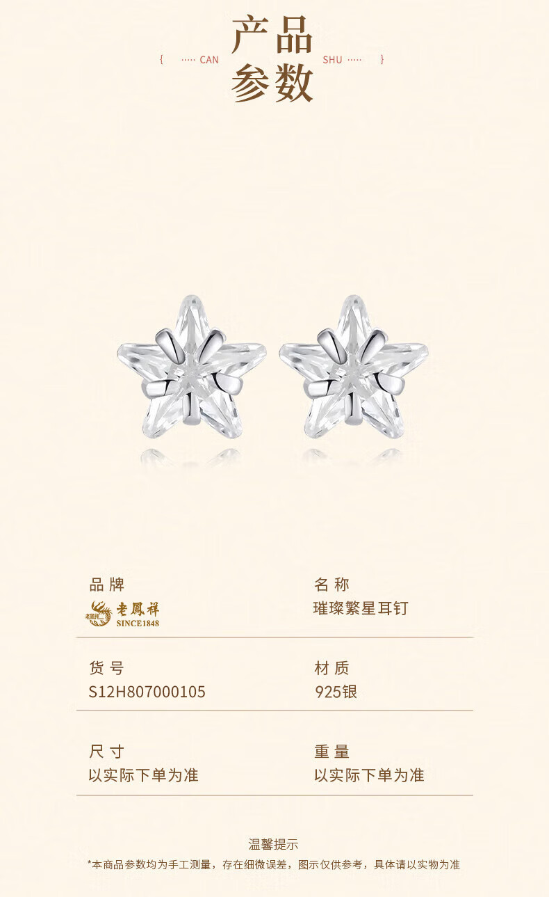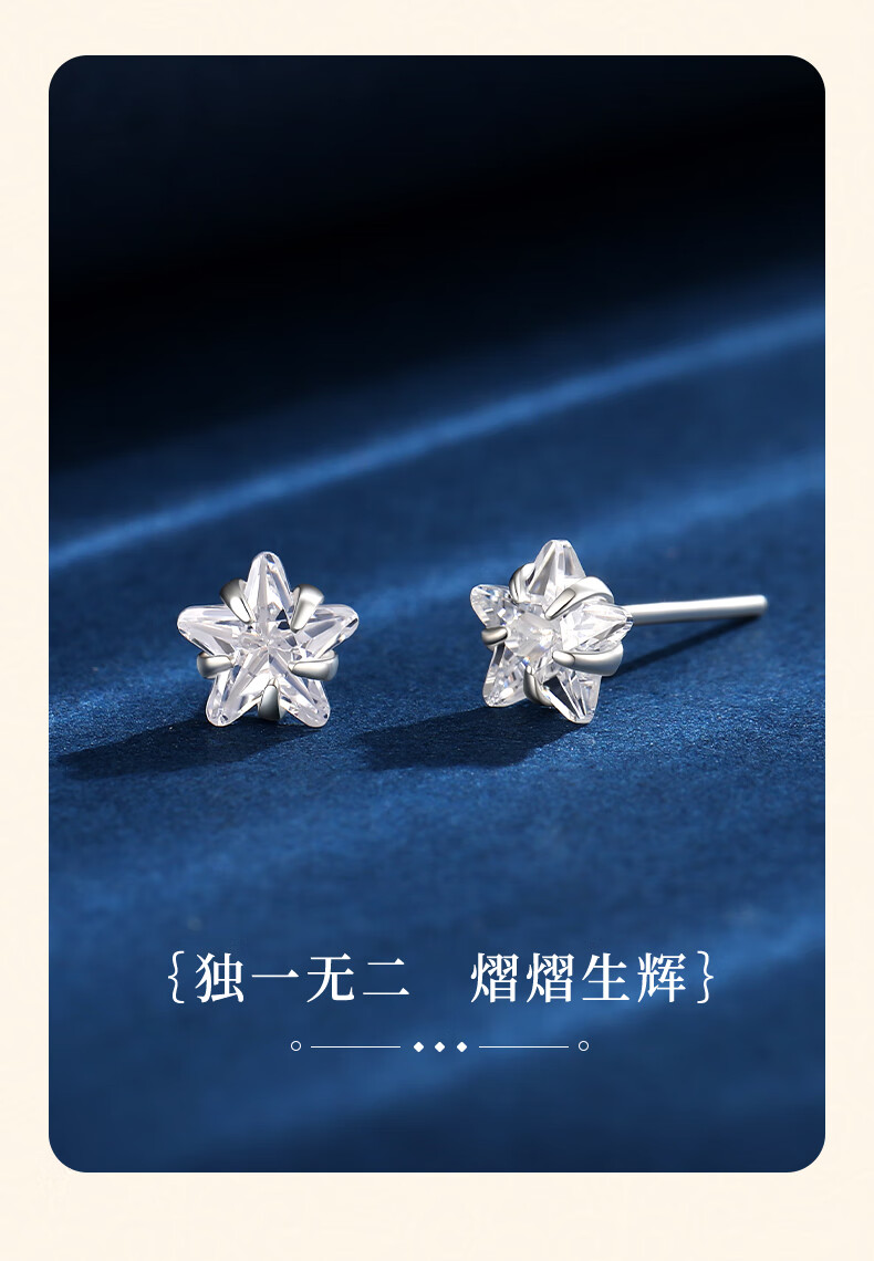 Lao Fengxiang Bright Star Earrings Women's Sterling Silver Ear Needle Earrings Niche Birthday Winter Christmas Gift for Girl Friends Today/Next Day Delivery Earrings* Bakura Speedy Delivery